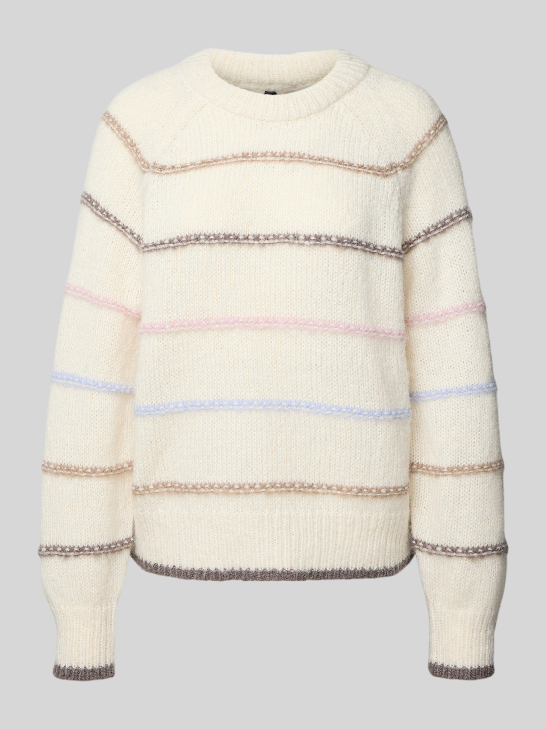 Sweter z dzianiny o kroju regular fit z raglanowymi rękawami model ‘NELIA’ - złamany biały