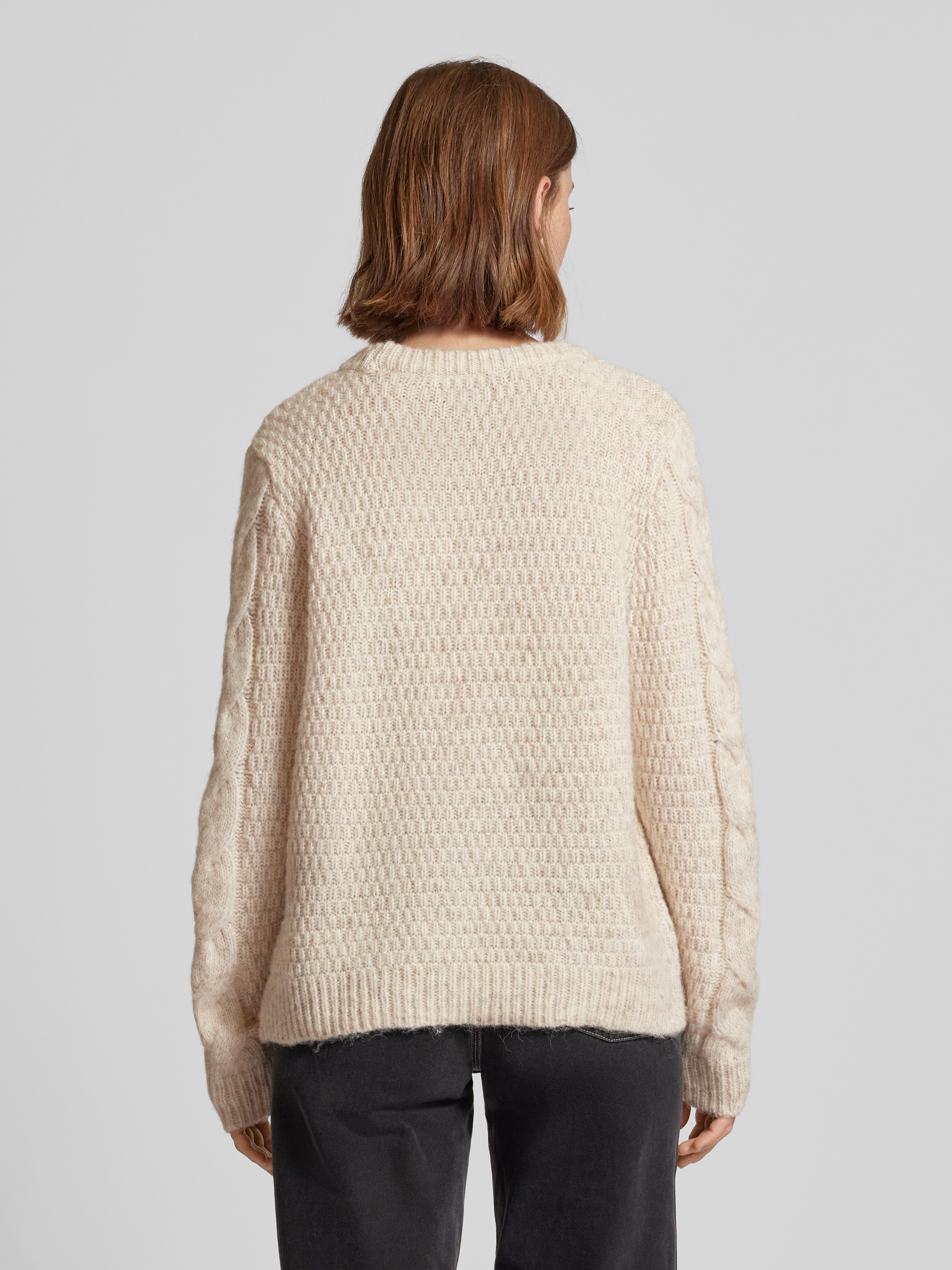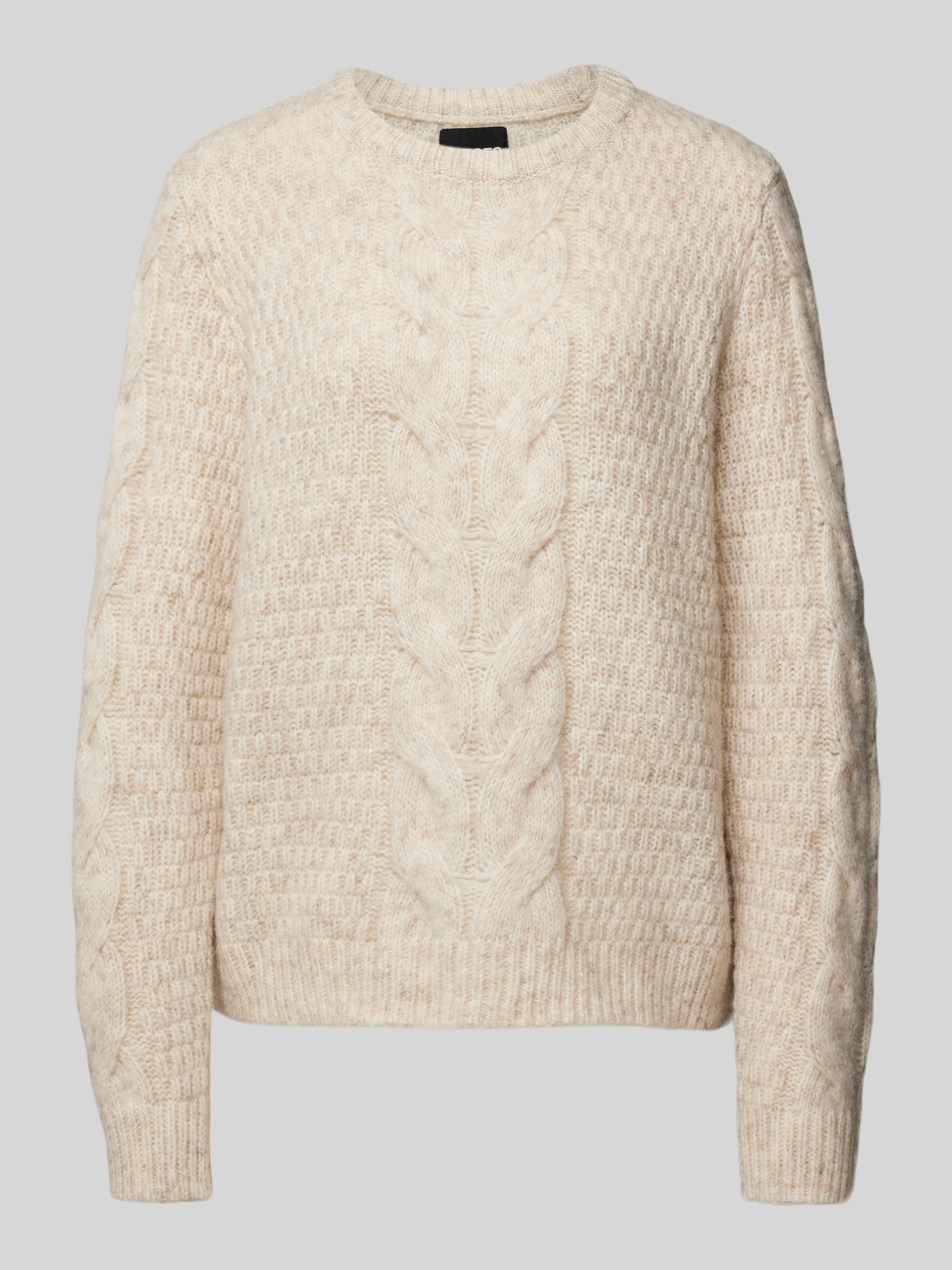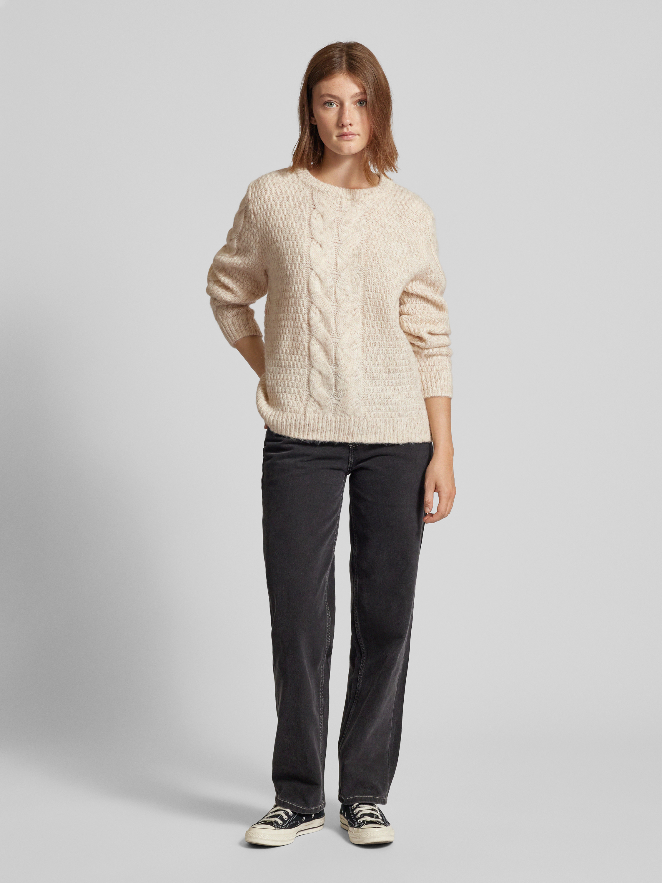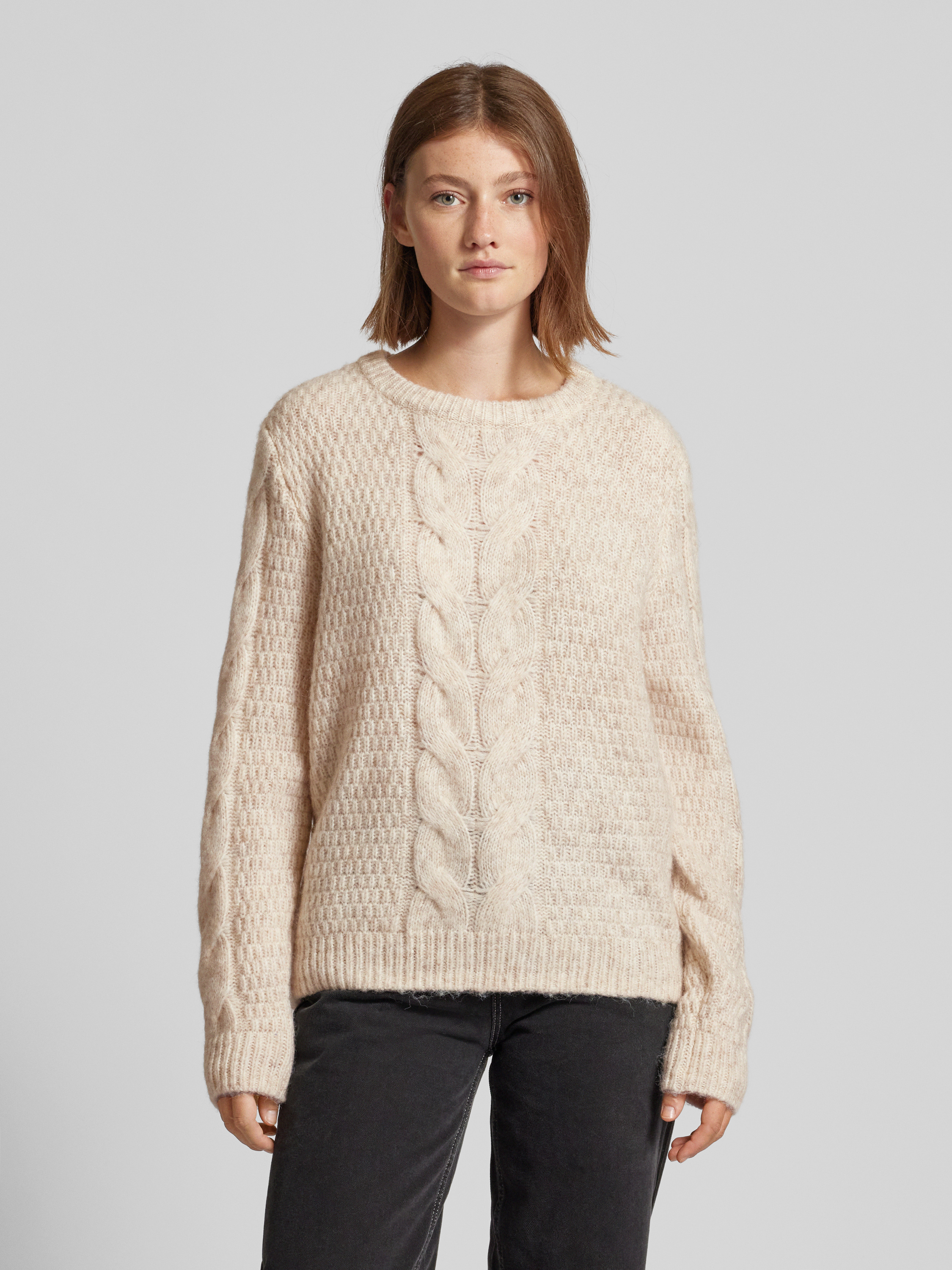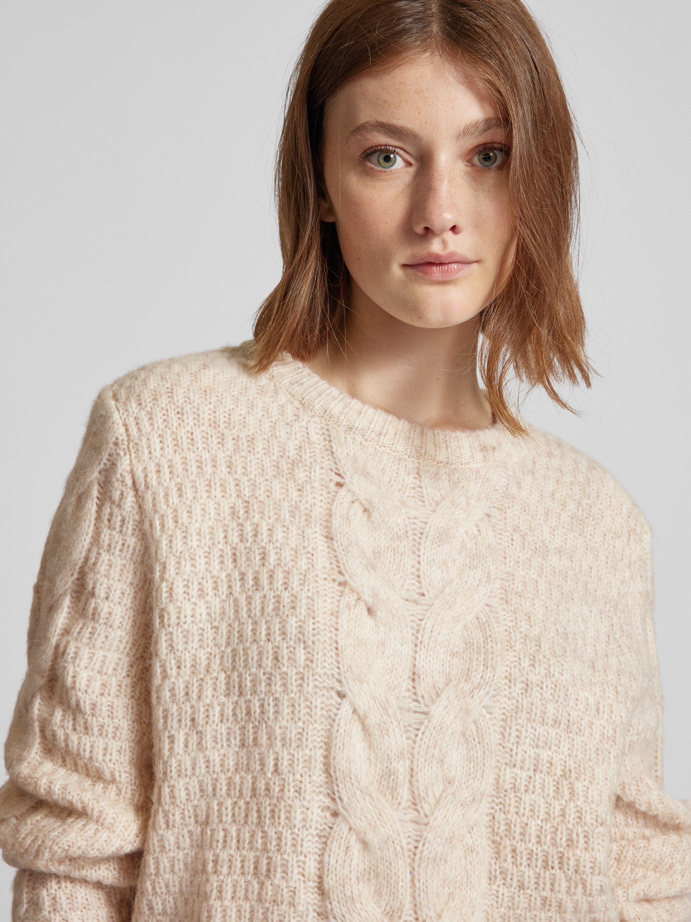 Sweter z dzianiny ze ściegiem warkoczowym model ‘NINA’ - złamany biały