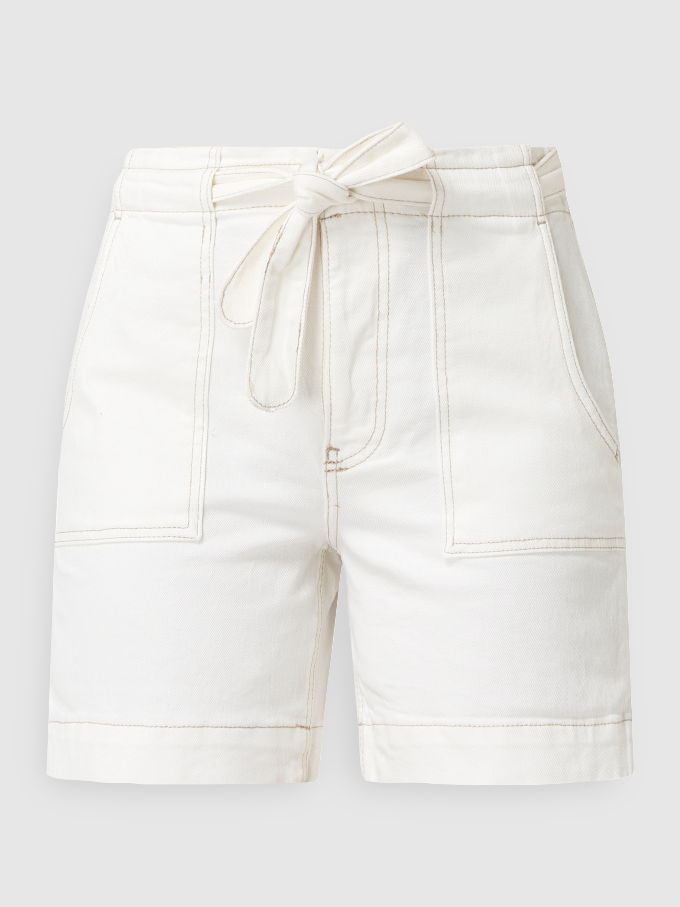 Szorty jeansowe z wysokim stanem i paskiem w talii model ‘Vinna’ - biały