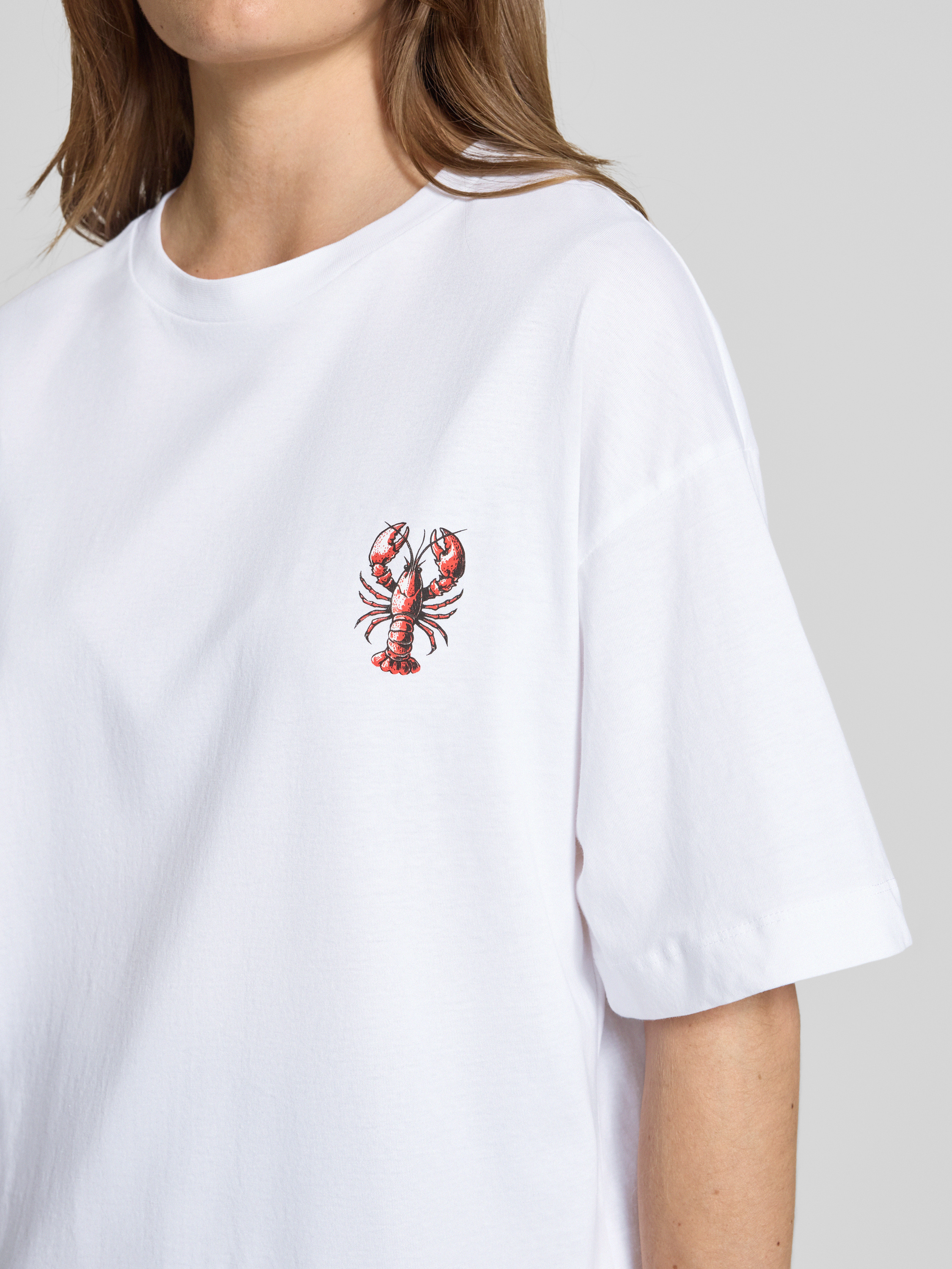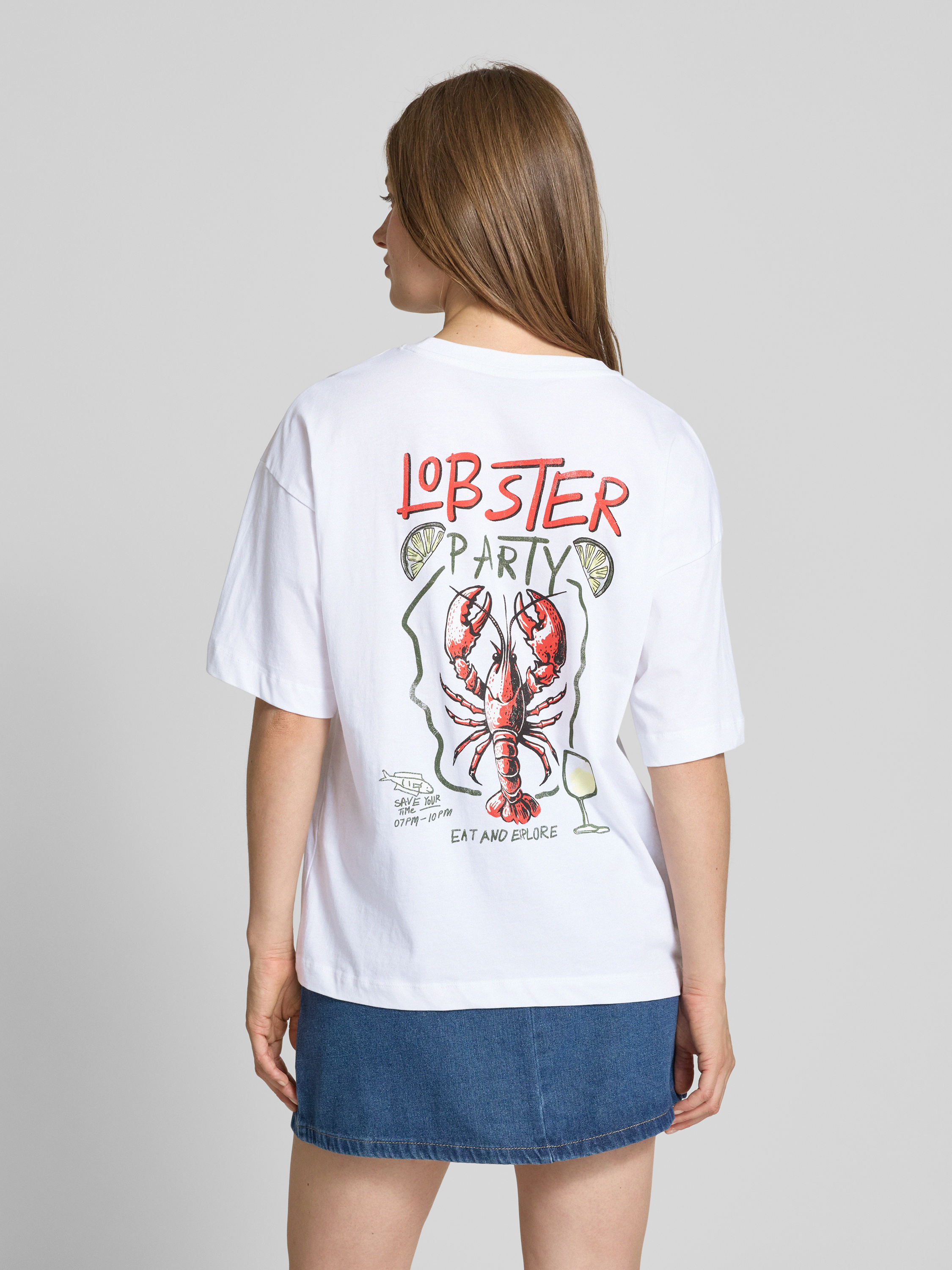 T-shirt o luźnym kroju z czystej bawełny model ‘TOBSTER’ - biały