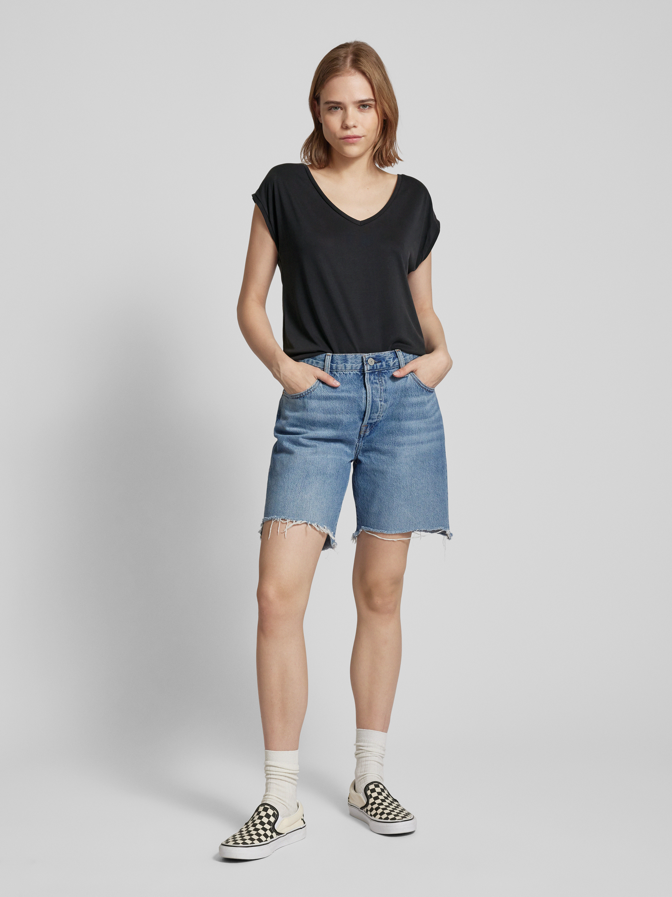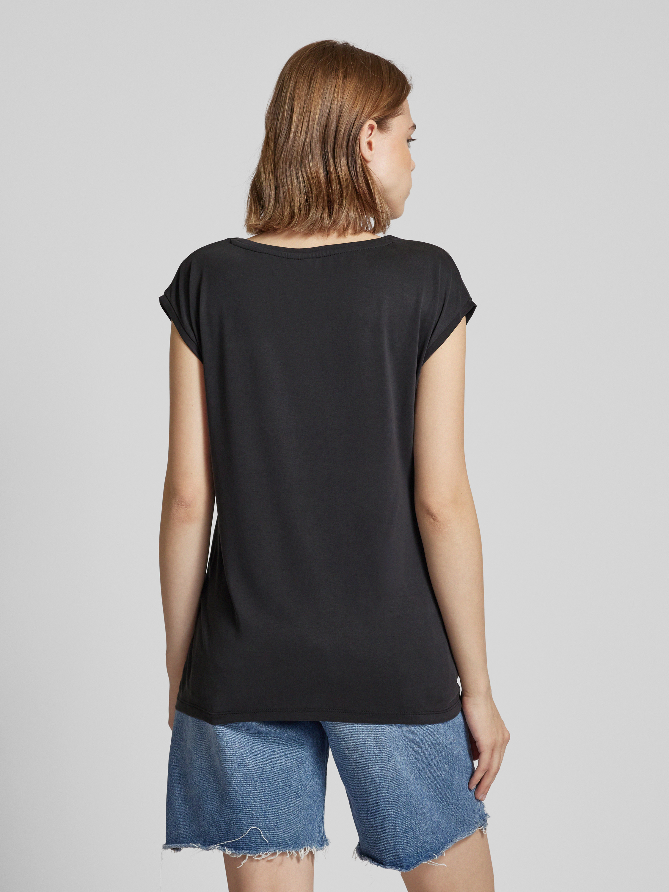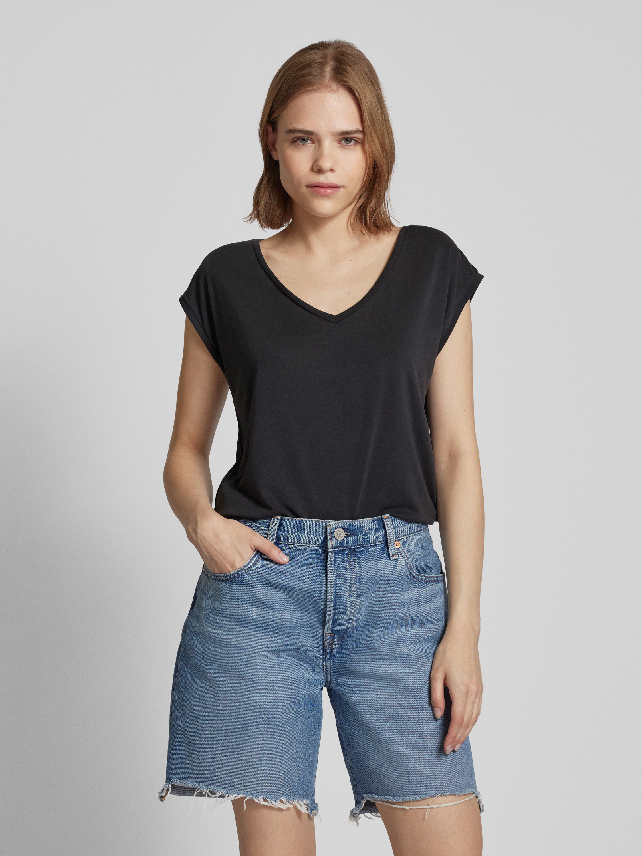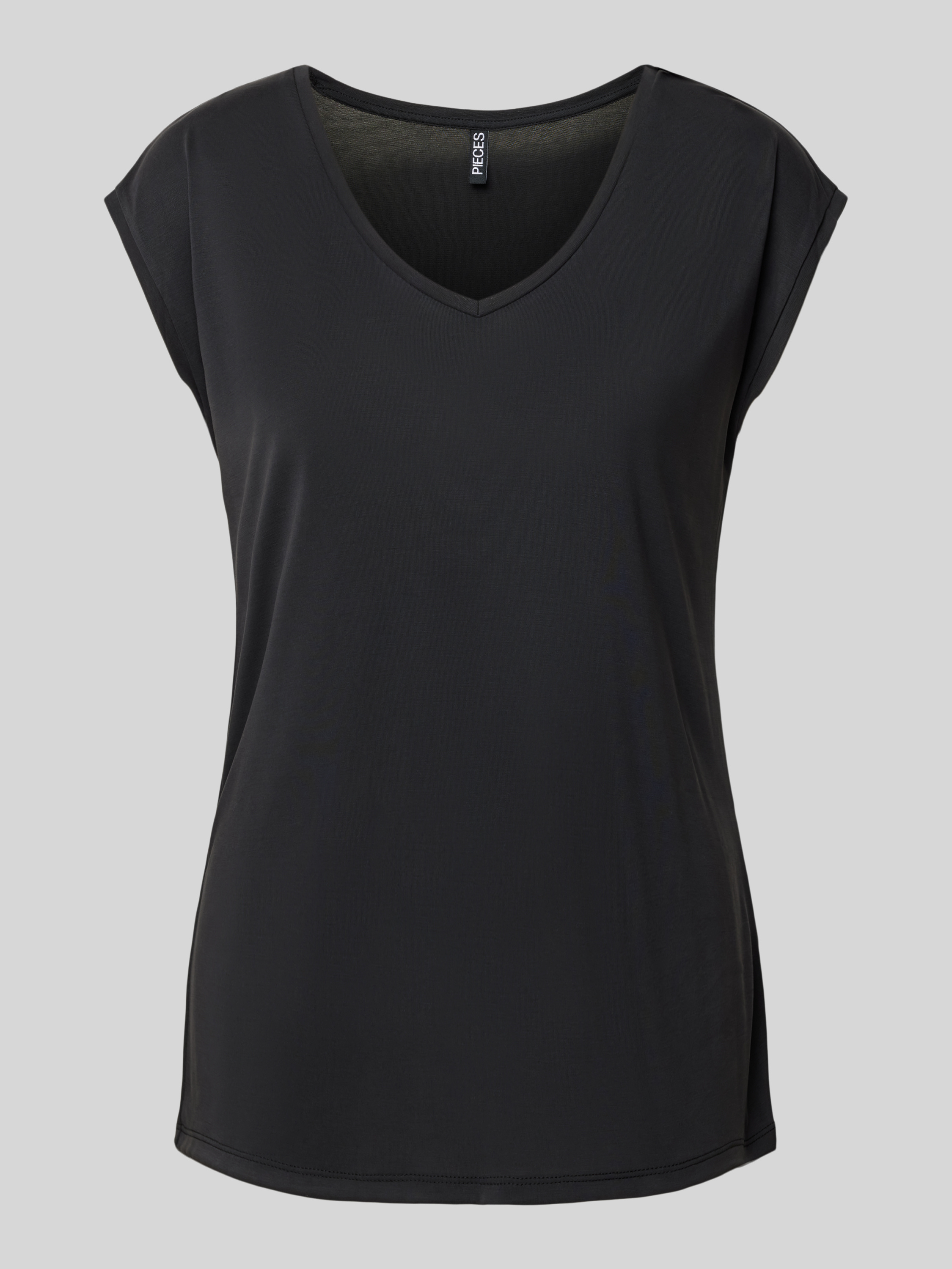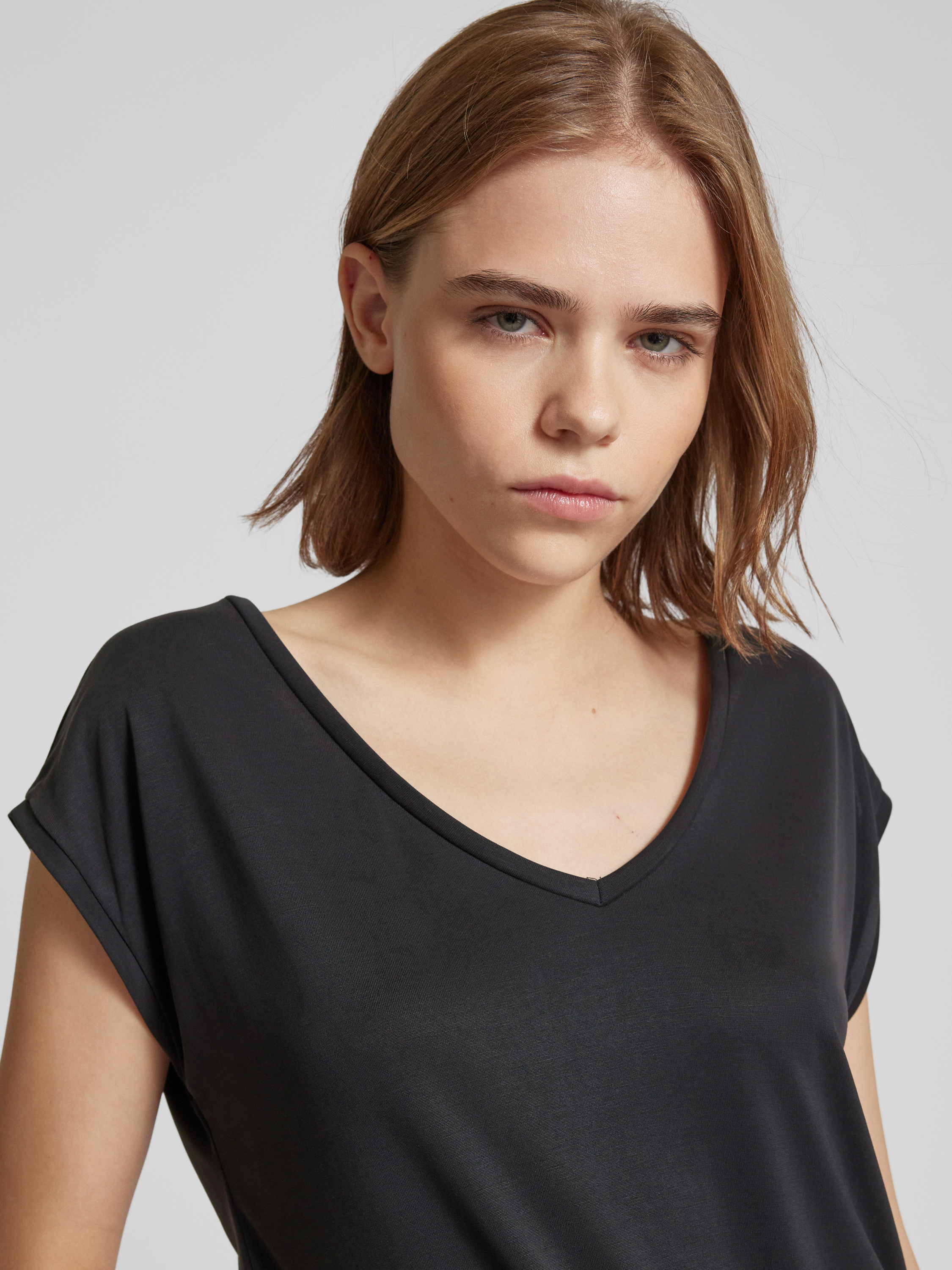 T-shirt z dekoltem w serek model ‘KAMALA’ - czarny