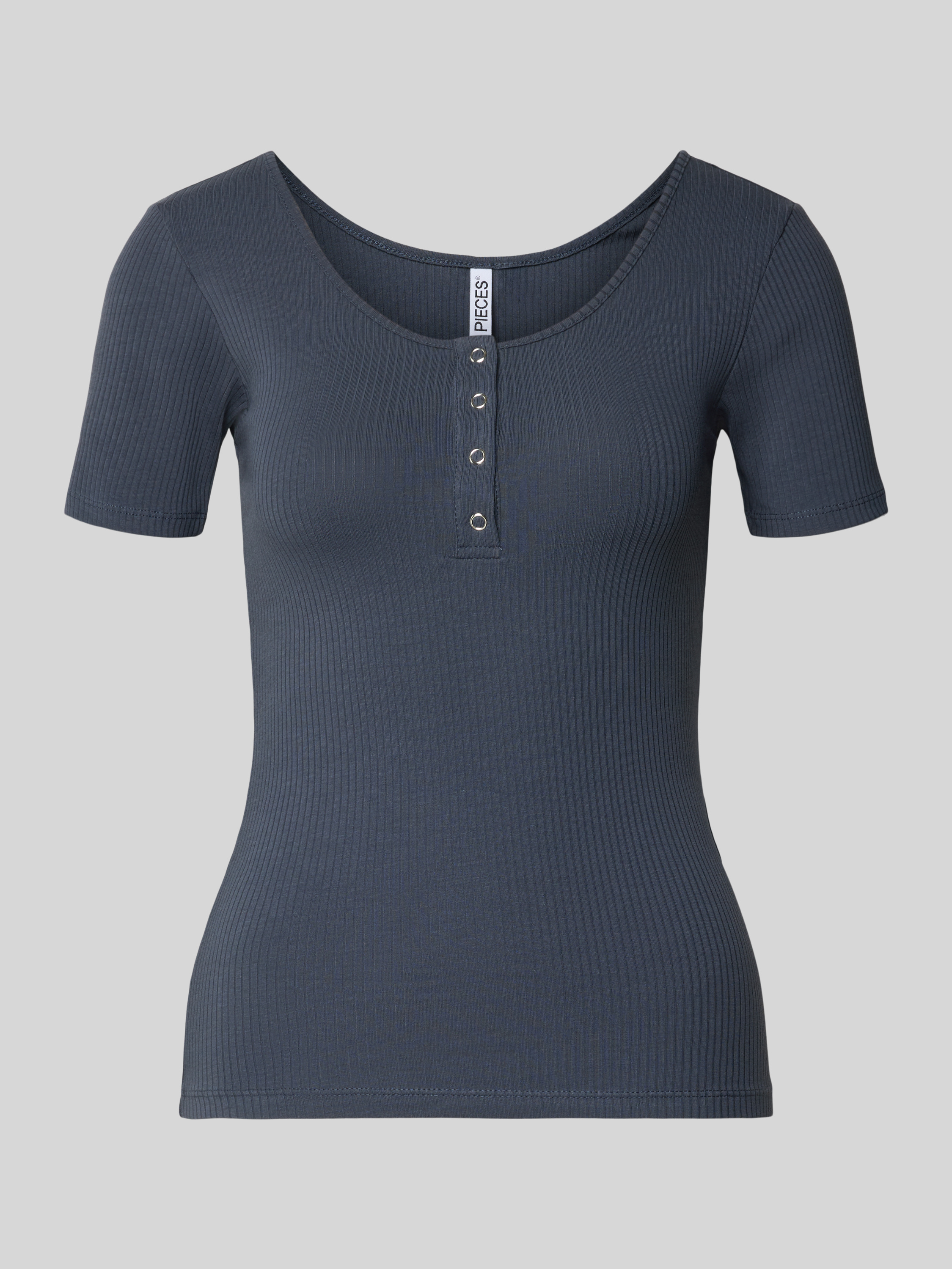 T-shirt z prążkowaną fakturą model ‘Kitte’ - ciemnoniebieski