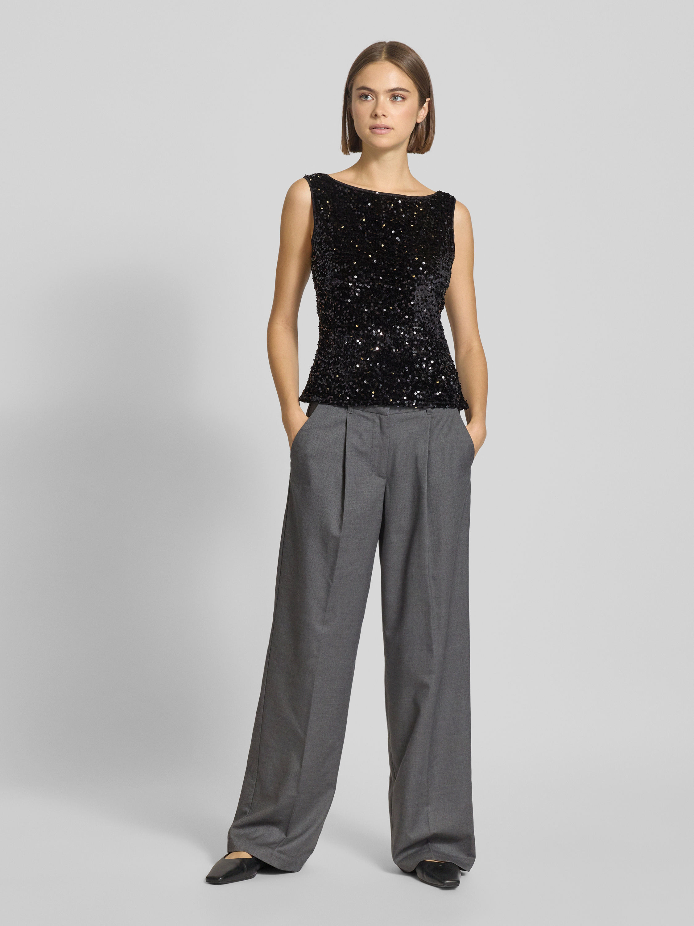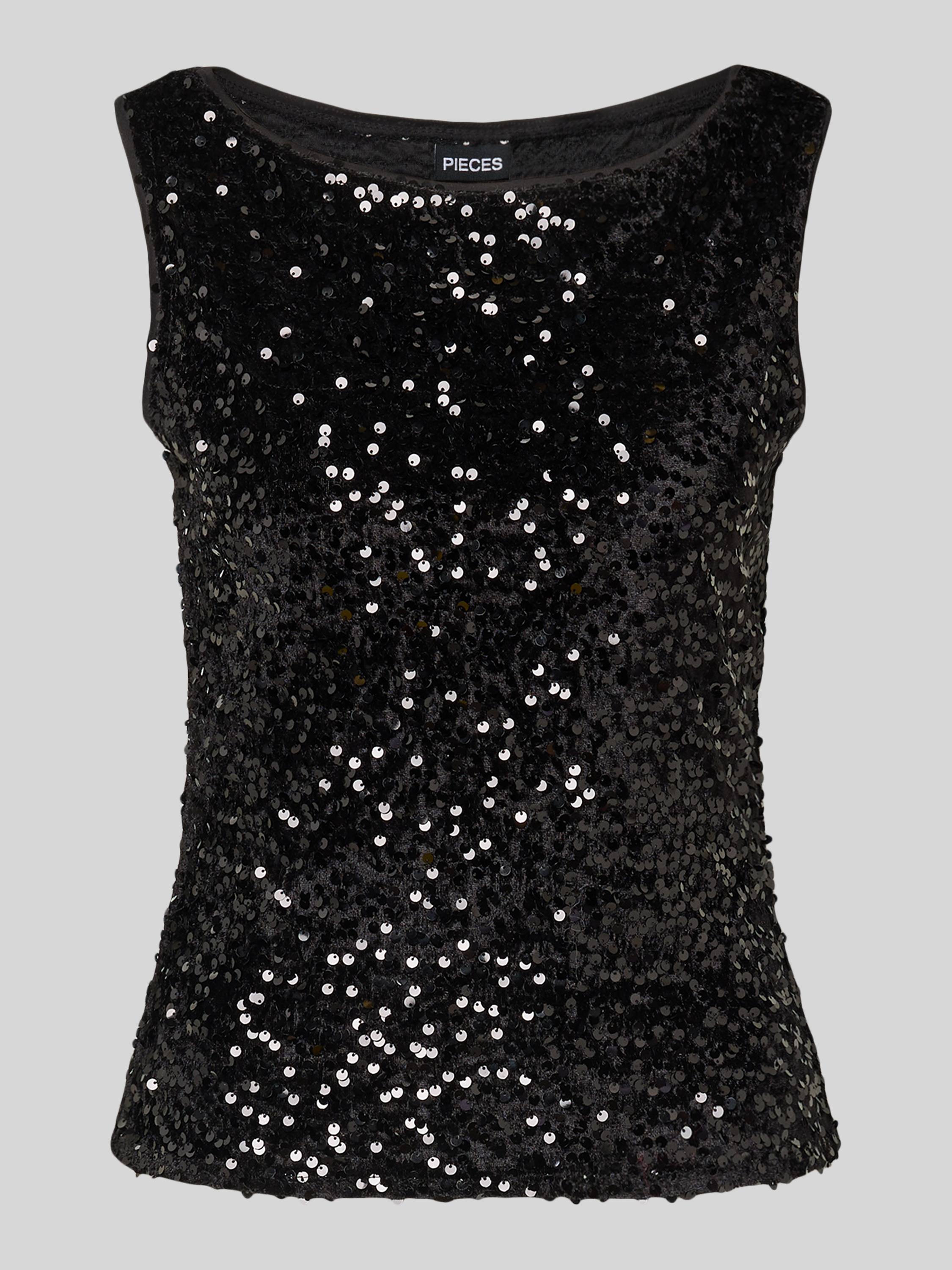 Top cekinowy o kroju regular fit z aksamitu model ‘KAM’ - czarny