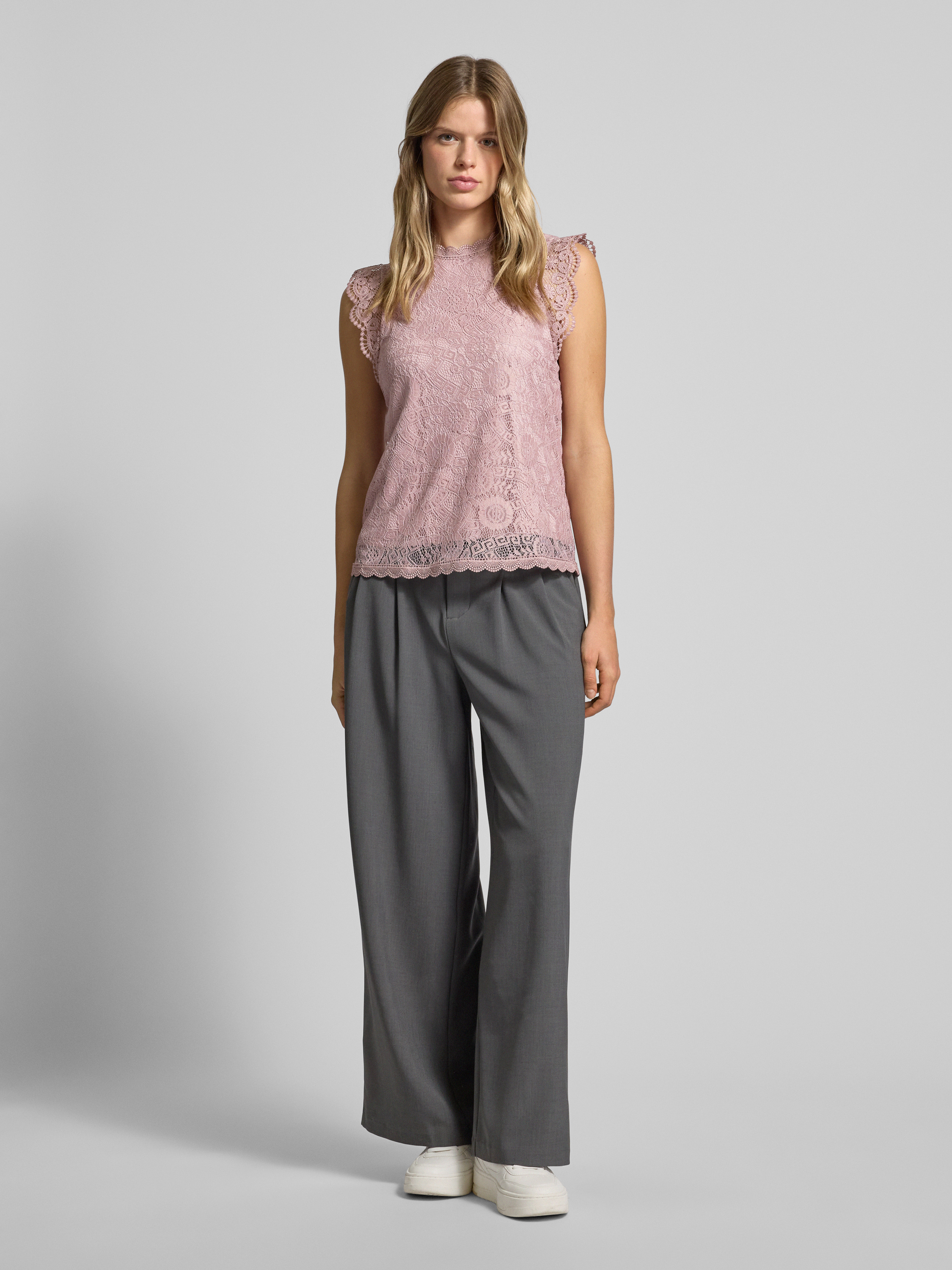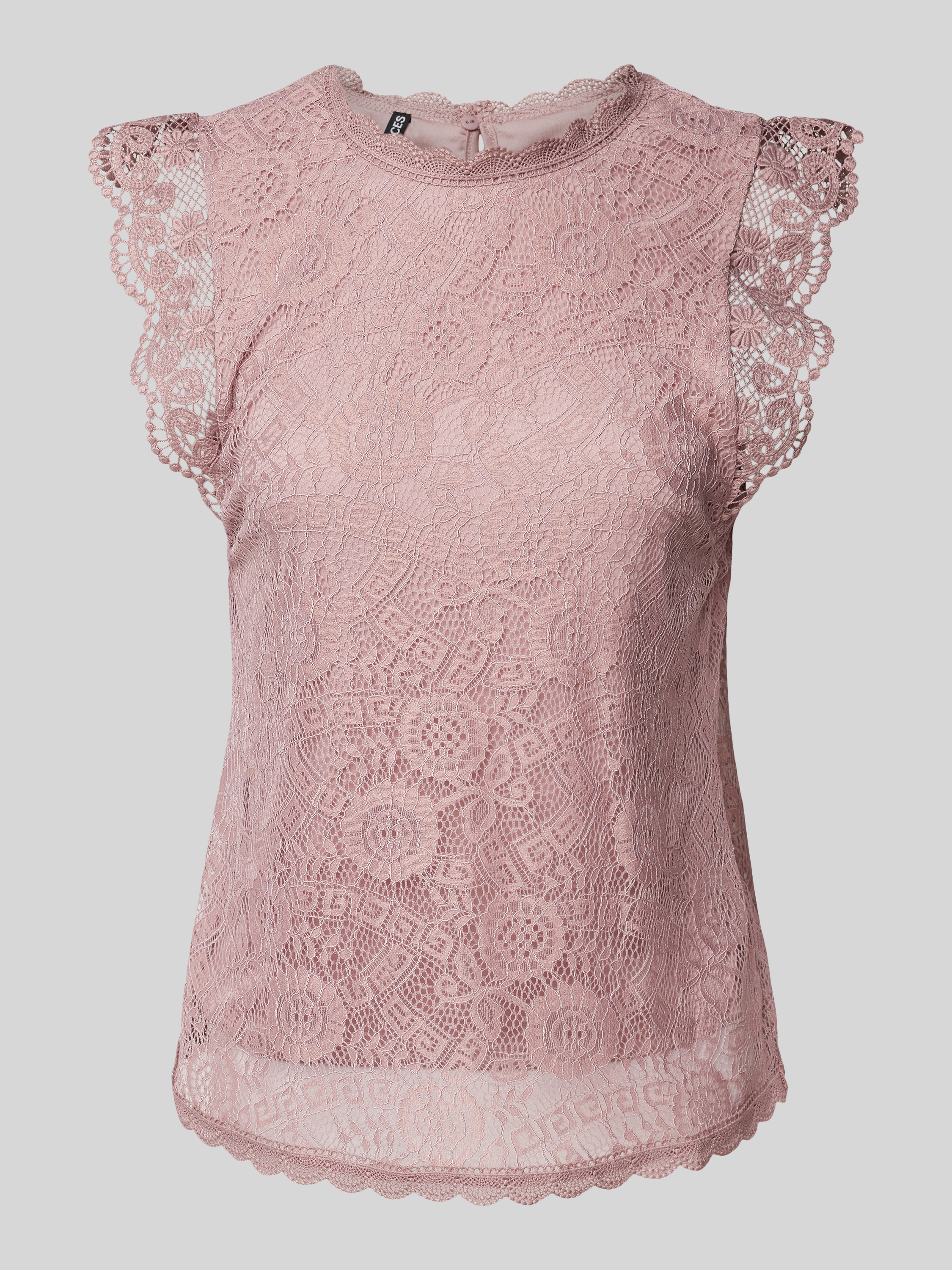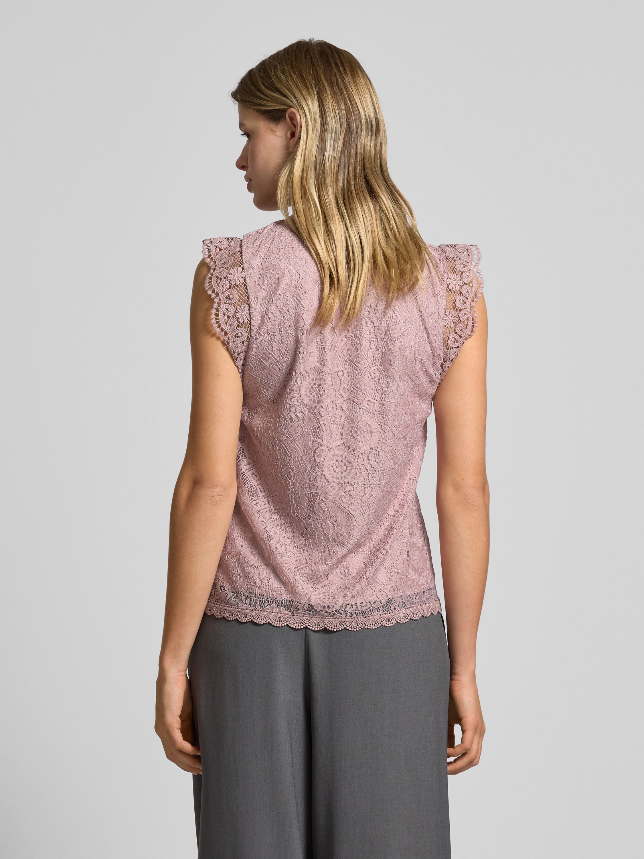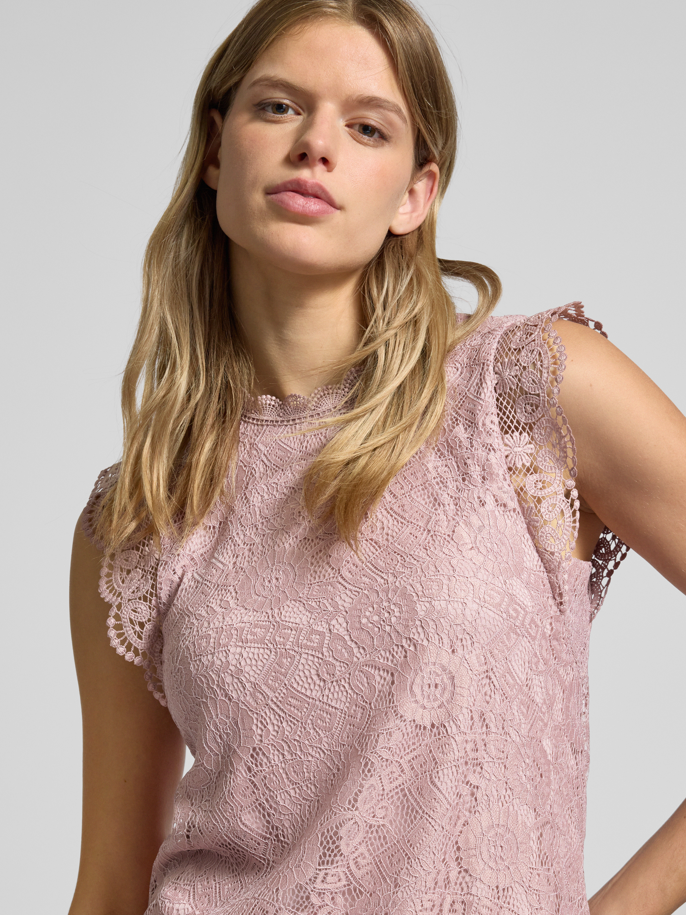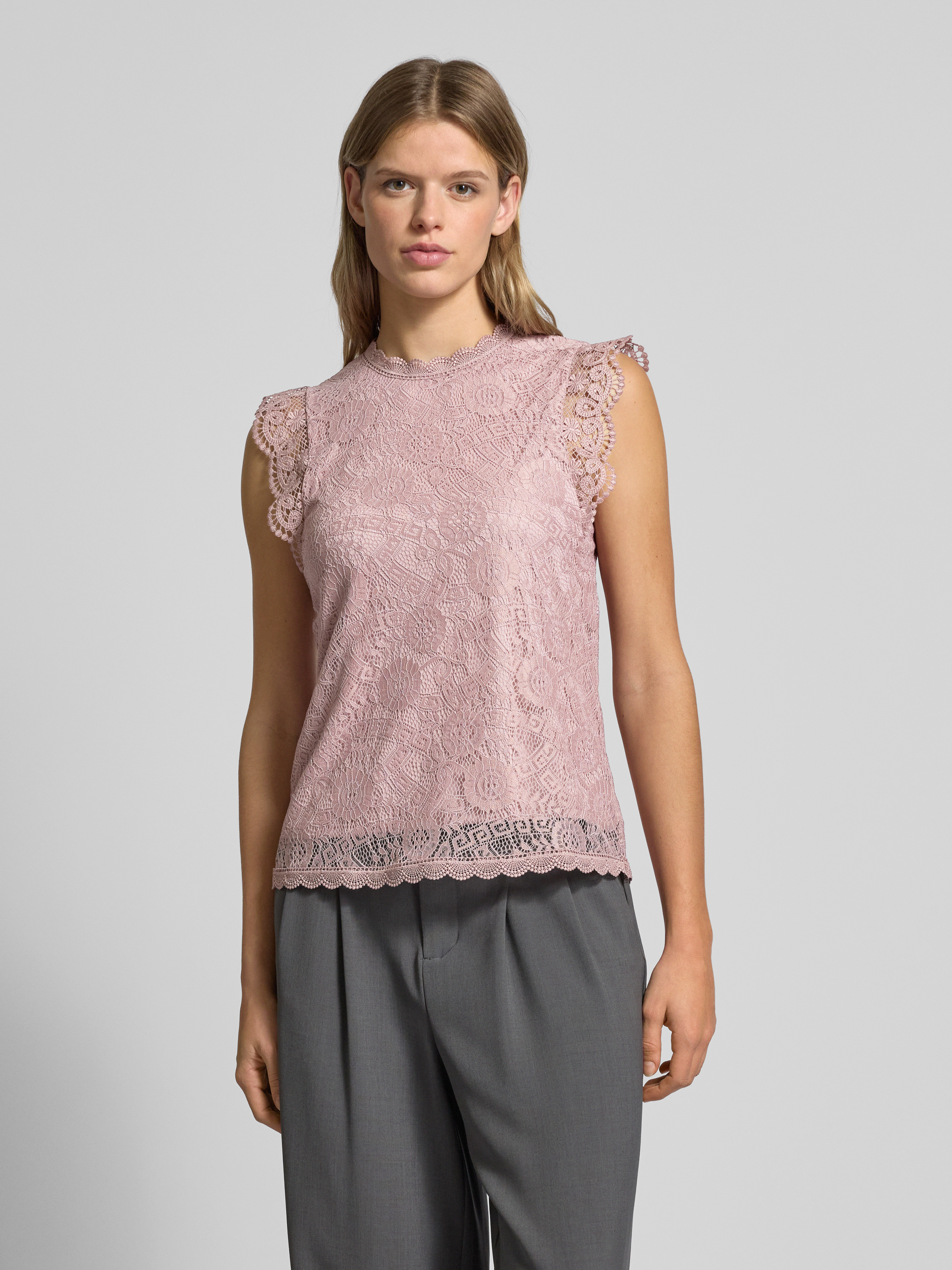 Top o kroju regular fit z koronkowym obszyciem model ‘COLLINE’ - brudnoróżowy