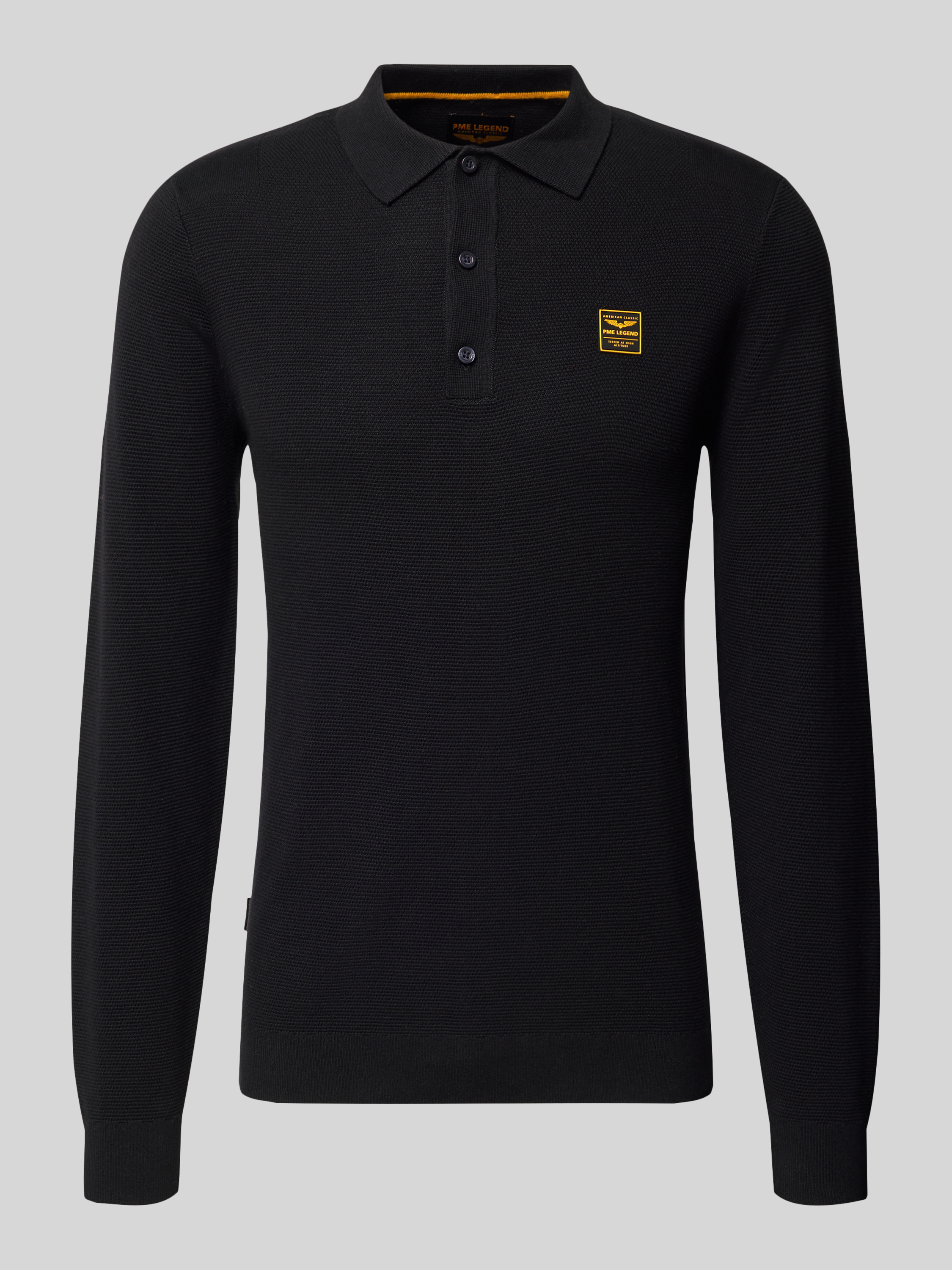 Sweter z dzianiny z kołnierzykiem polo - czarny