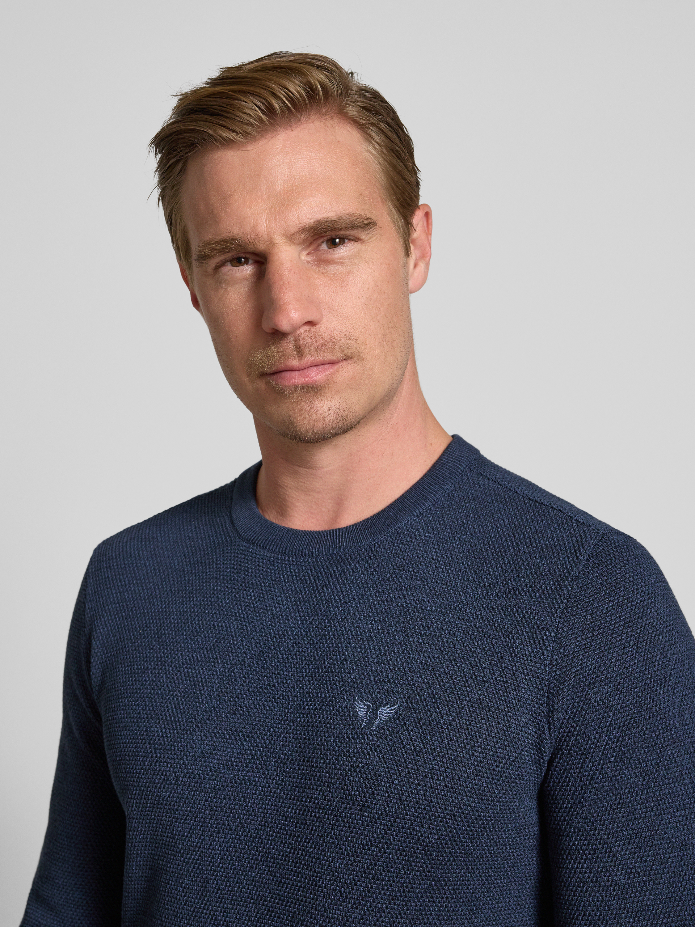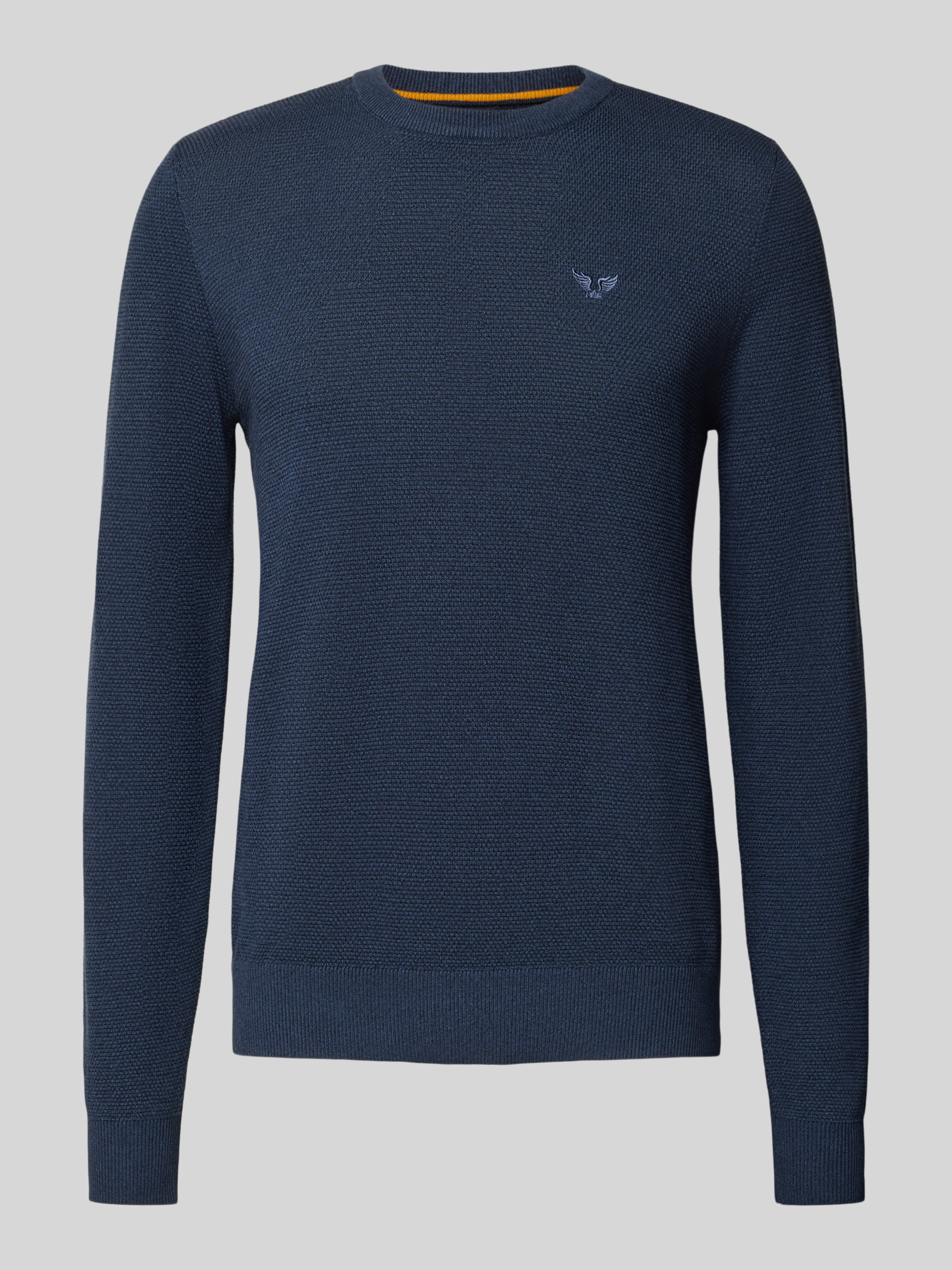 Sweter z dzianiny z wyhaftowanym logo model ‘Ricecorn’ - granatowy