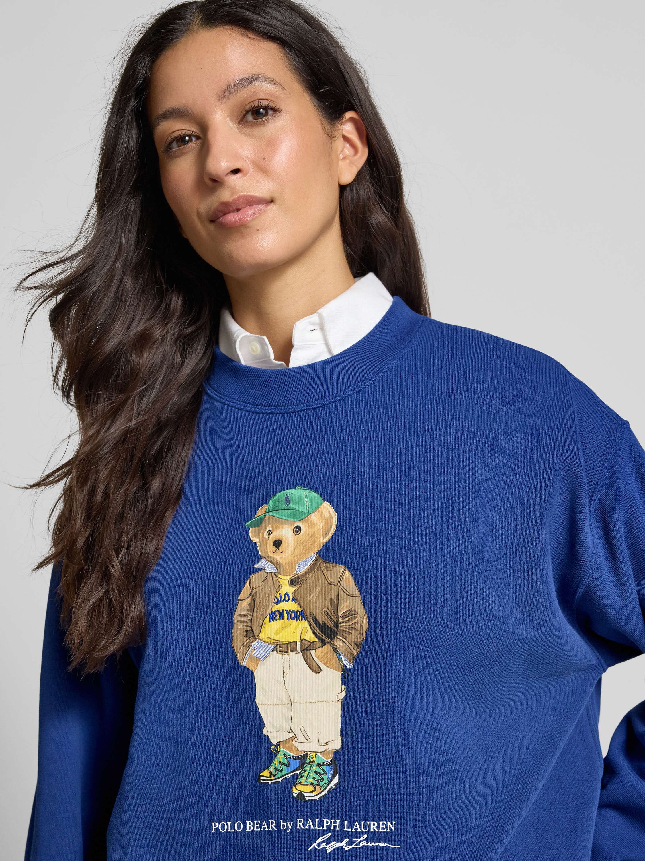 Bluza z nadrukiem z logo i okrągłym dekoltem - niebieski