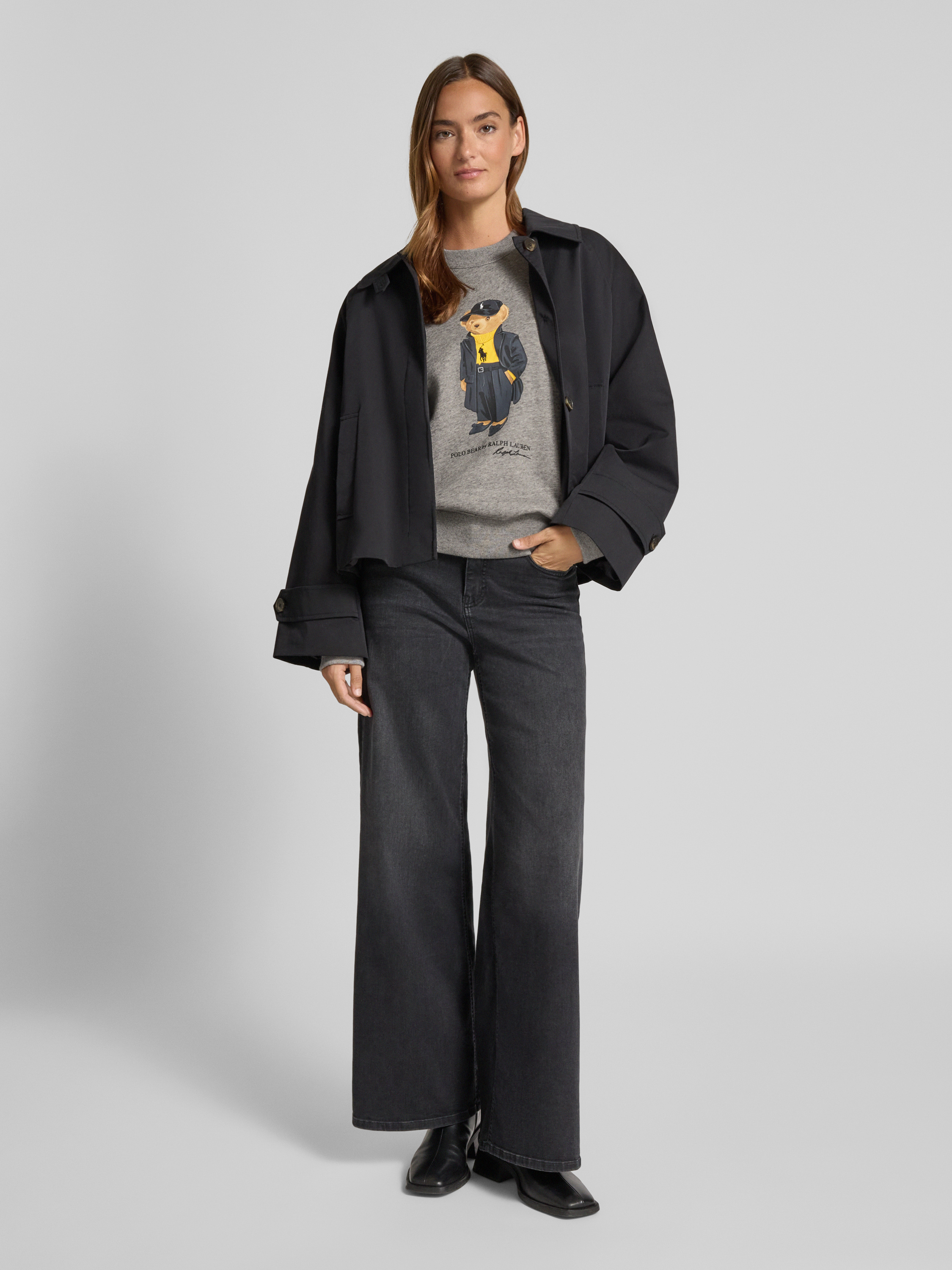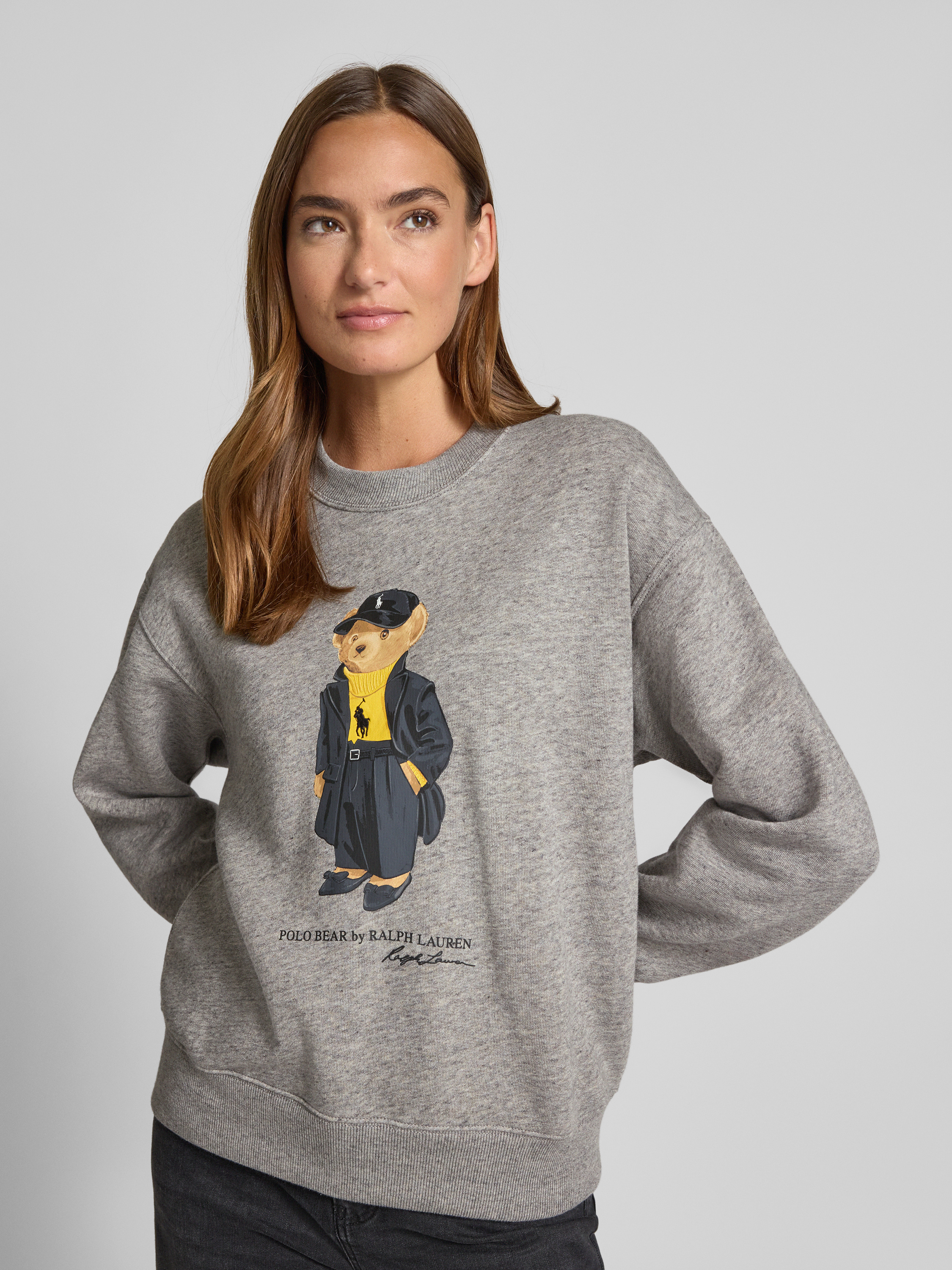 Bluza z nadrukiem z motywem i okrągłym dekoltem - ciemnoszary melanż