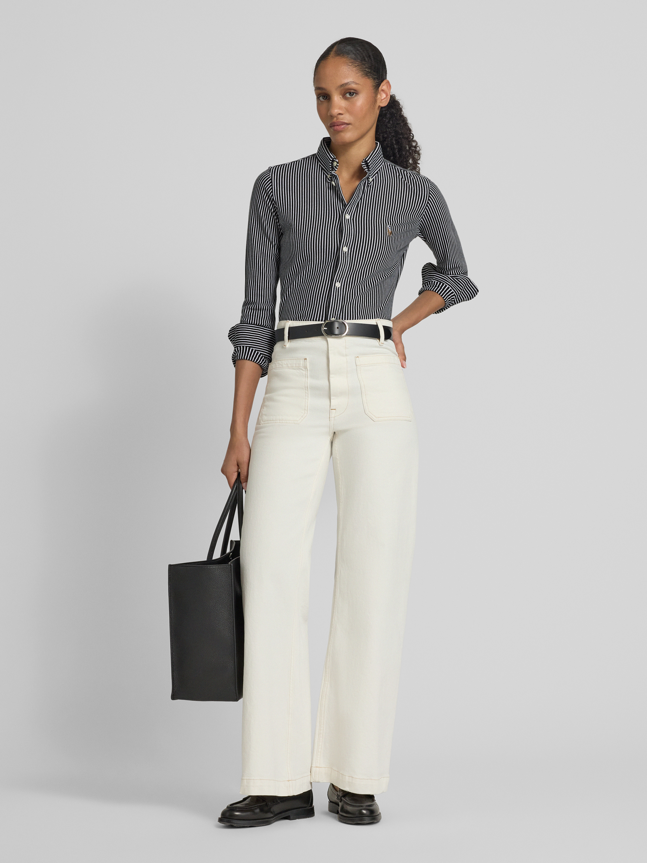 Jeansy o rozkloszowanym kroju z nakładanymi, wpuszczanymi kieszeniami