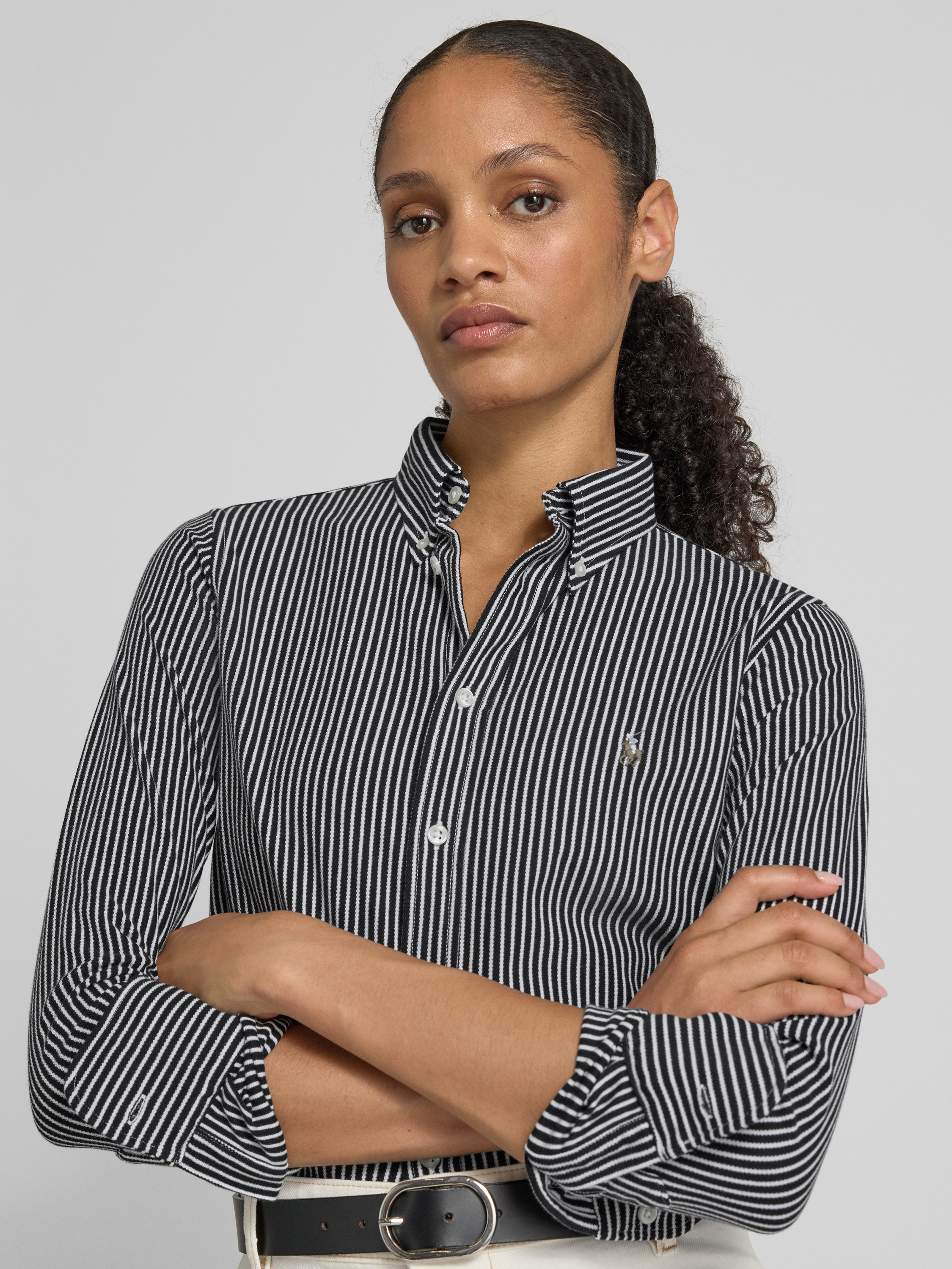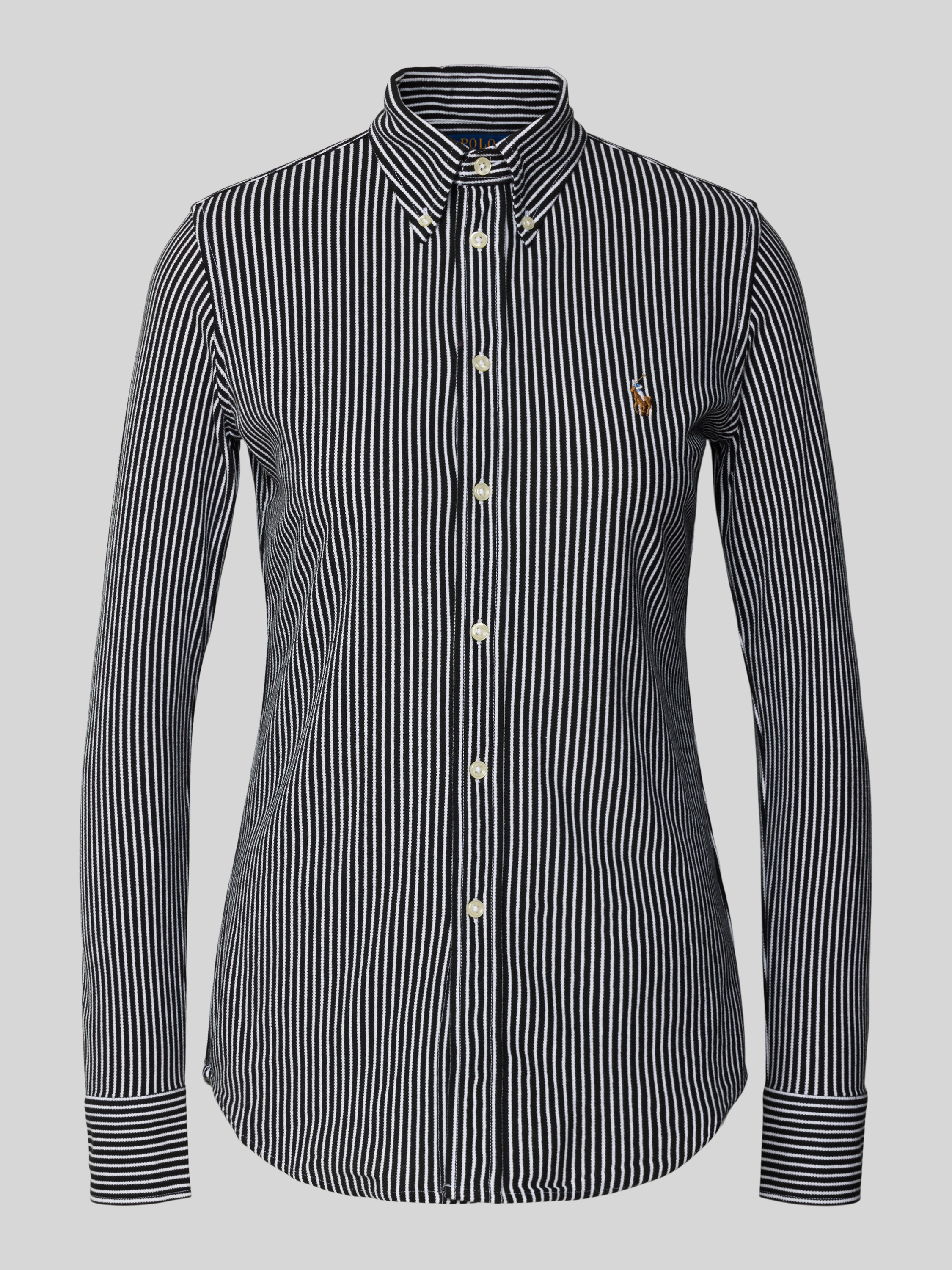Bluzka koszulowa o kroju slim fit z kołnierzykiem typu button down - czarny