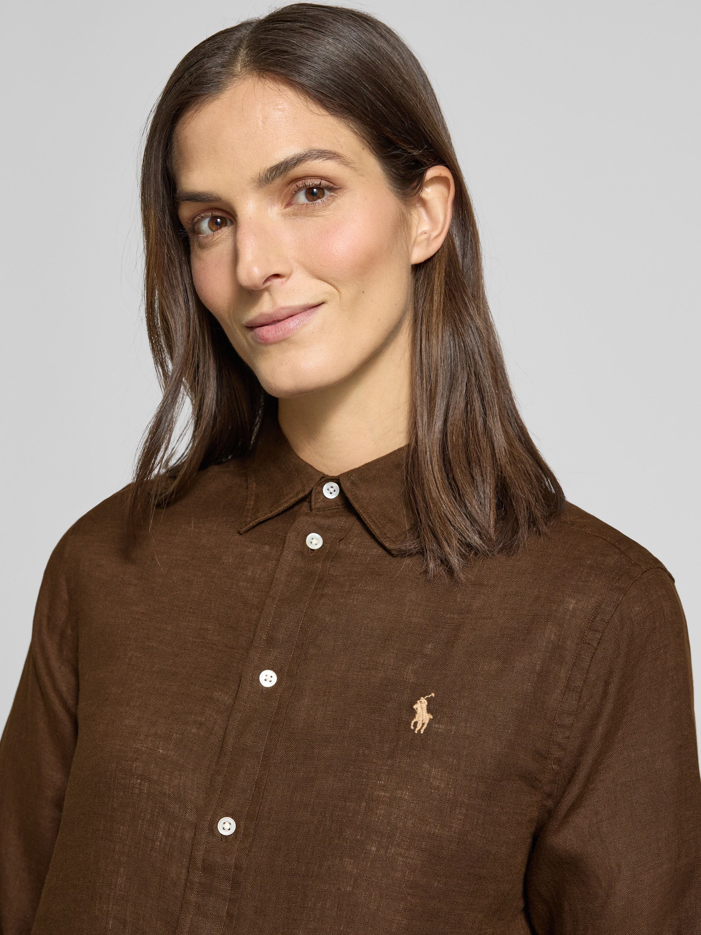 Bluzka koszulowa z listwą guzikową - ciemnobrązowy