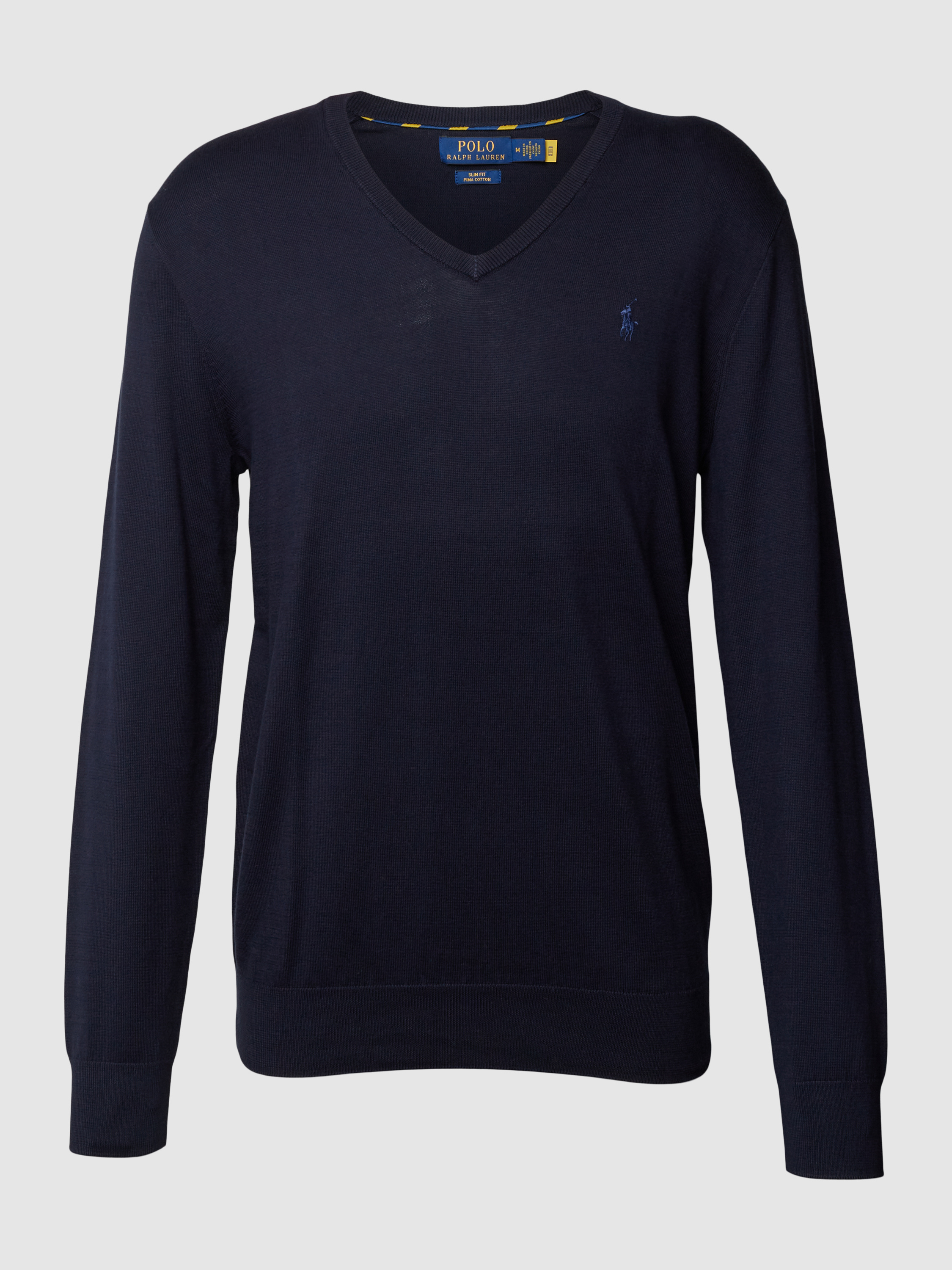 Bluzka z długim rękawem i wyhaftowanym logo - granatowy