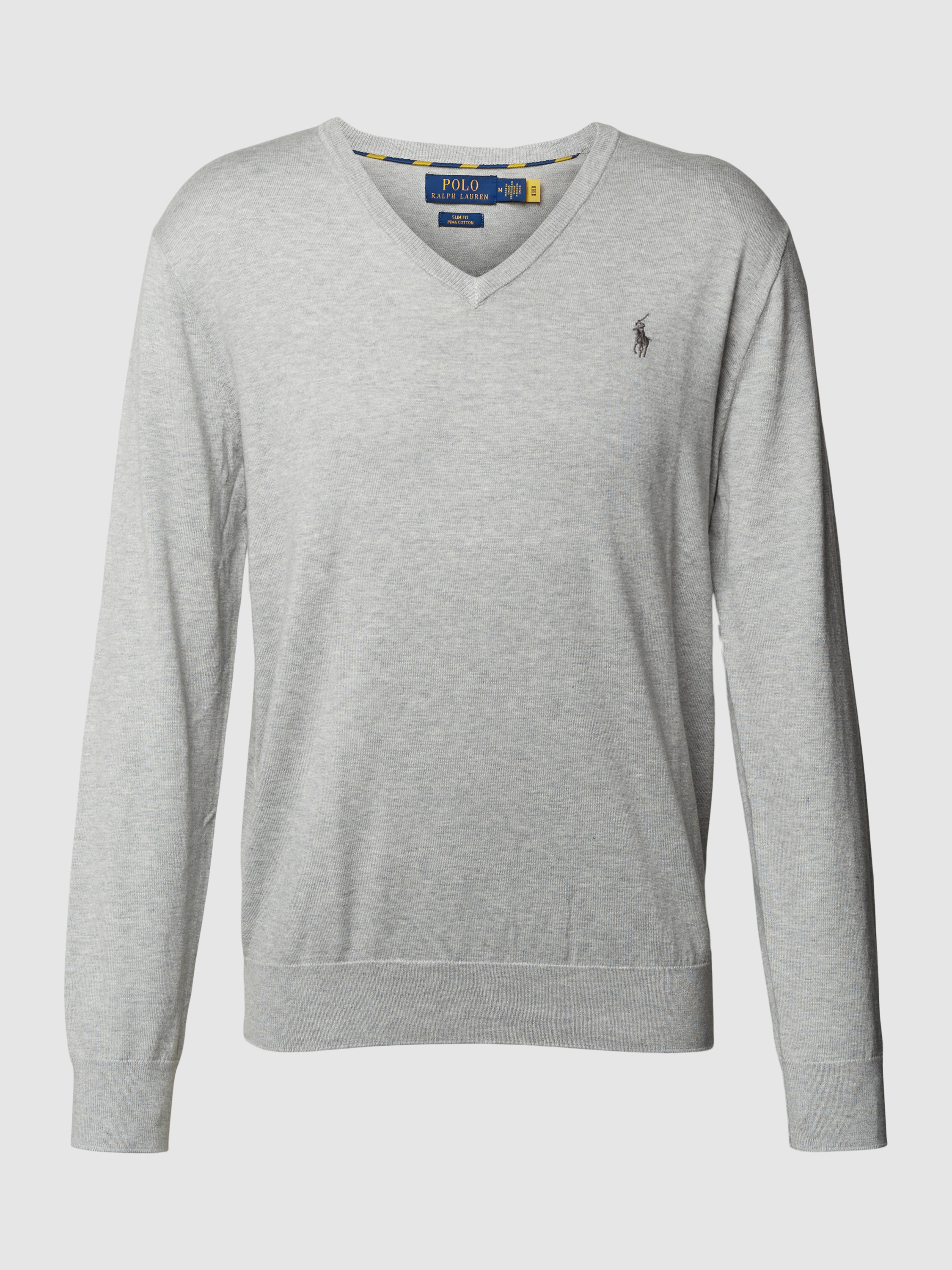 Bluzka z długim rękawem i wyhaftowanym logo - jasnoszary melanż