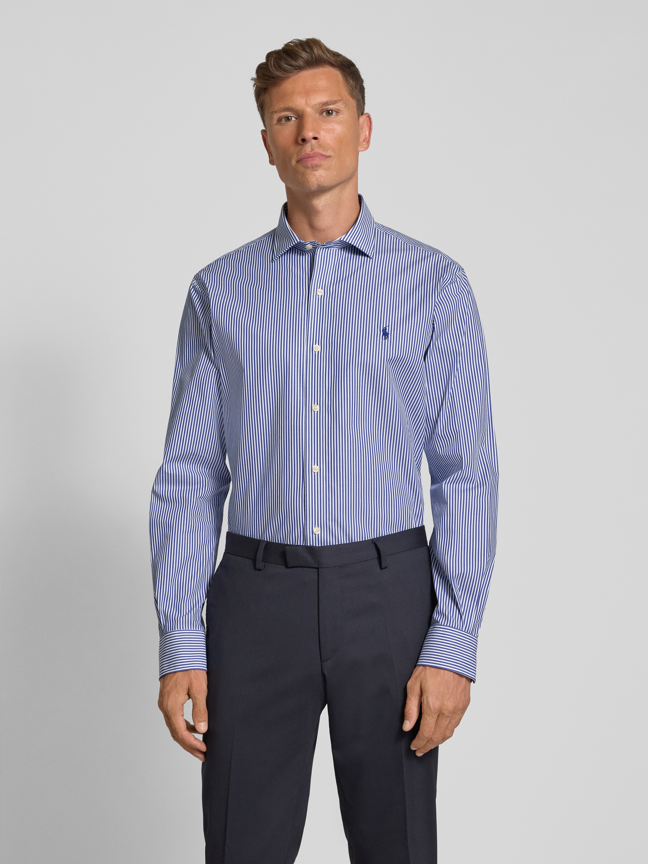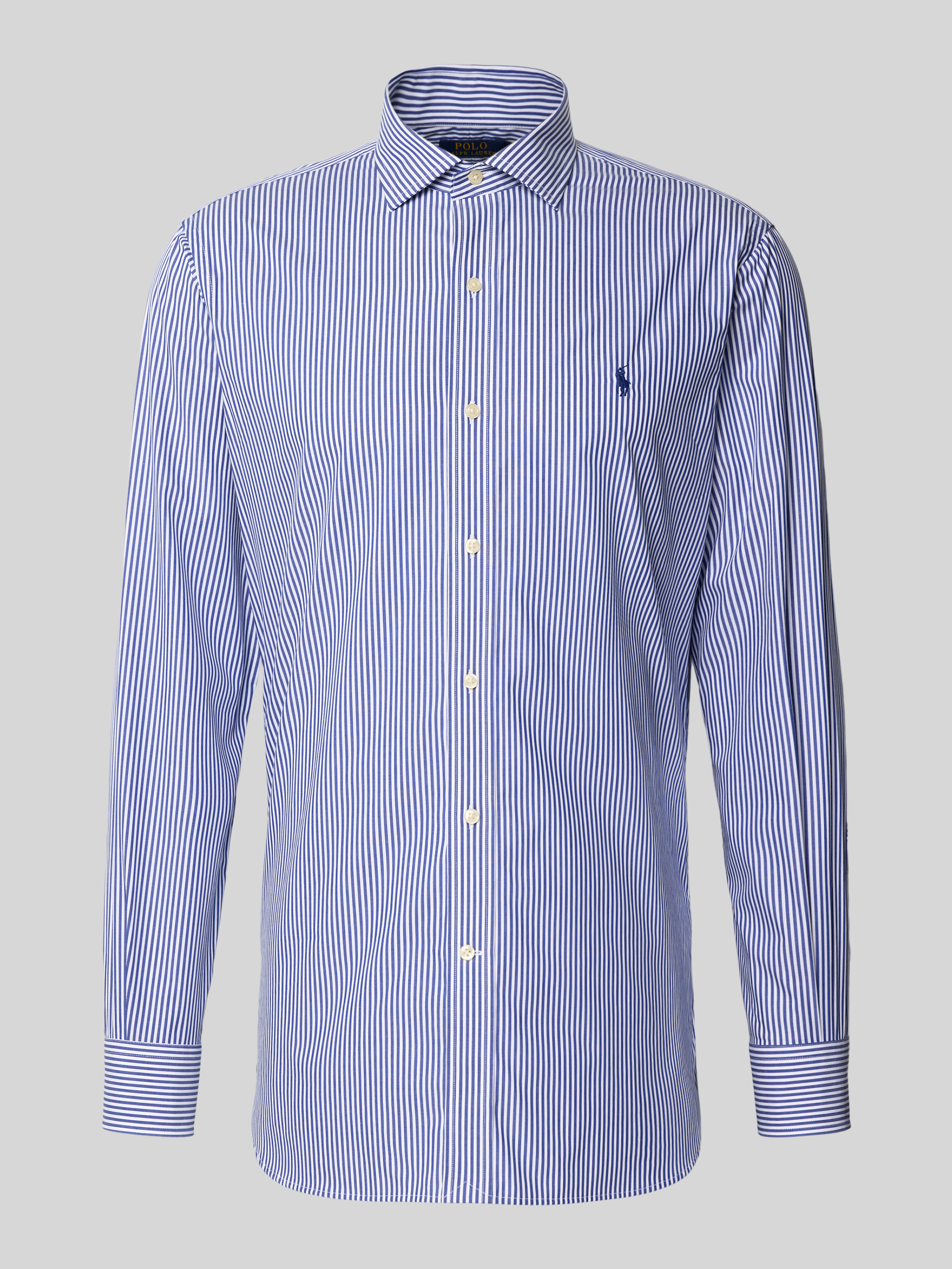 Koszula biznesowa o kroju regular fit z wyhaftowanym logo - królewski niebieski