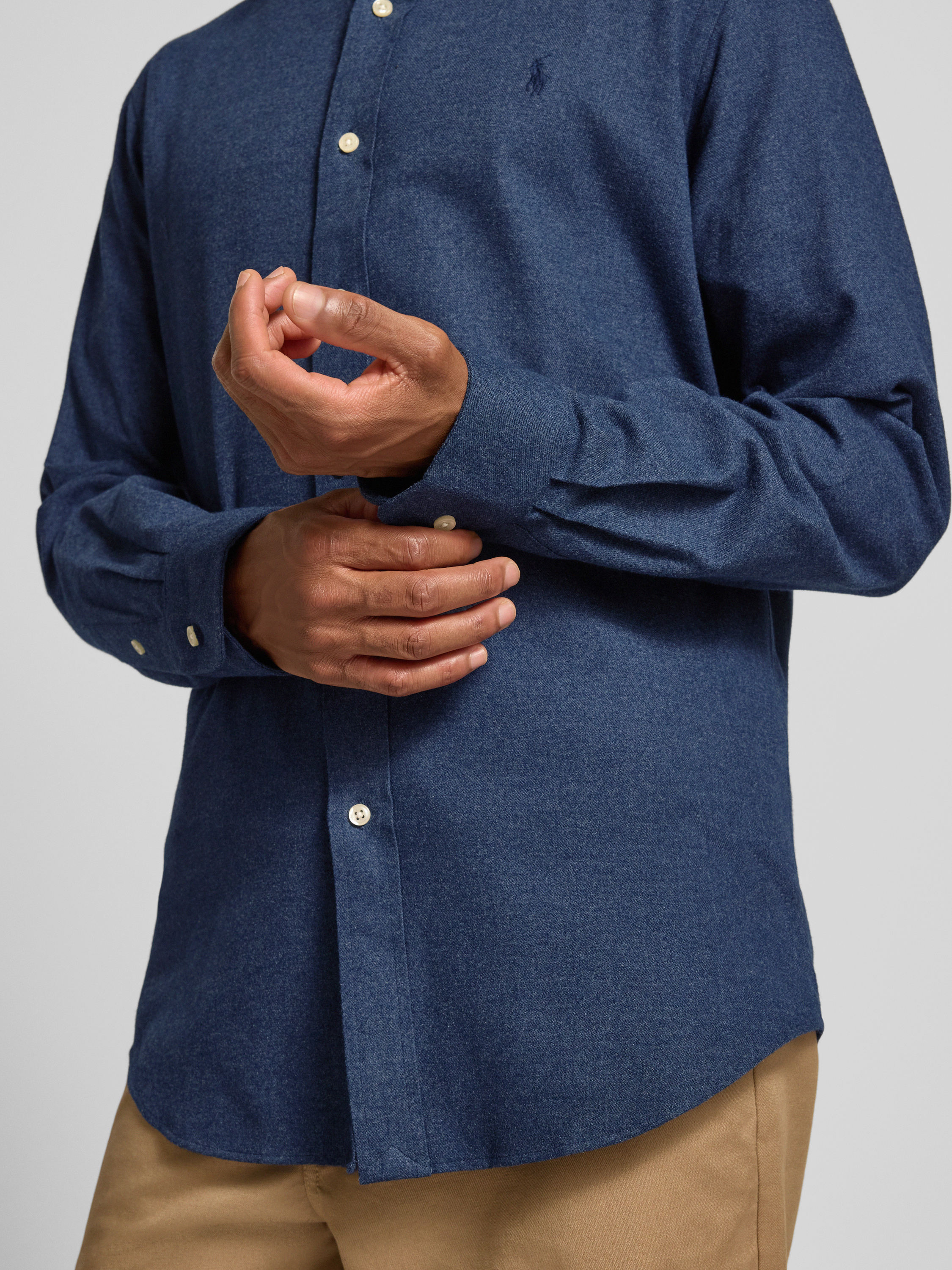 Koszula casualowa o kroju custom fit z wyhaftowanym logo - ciemnoniebieski