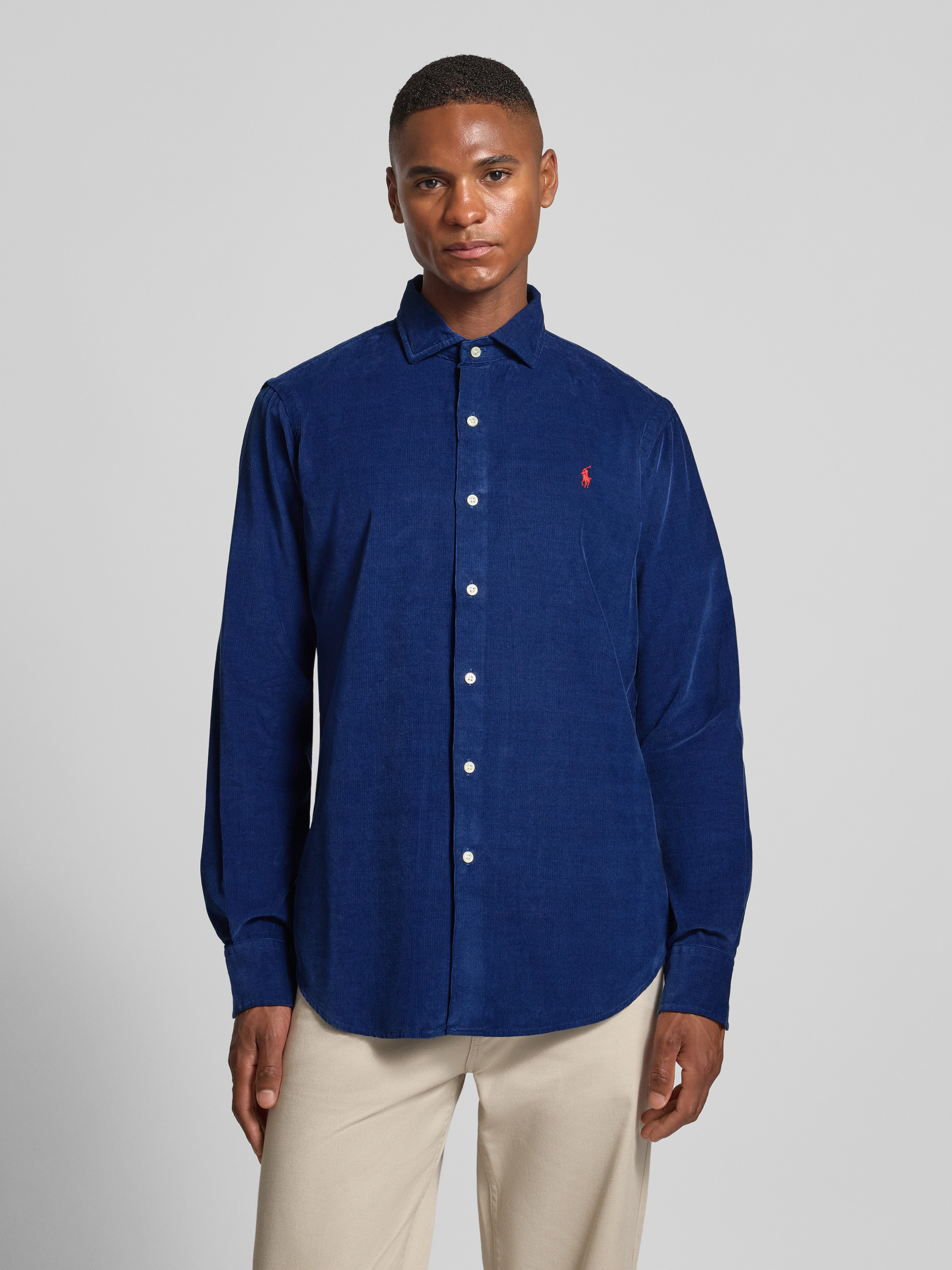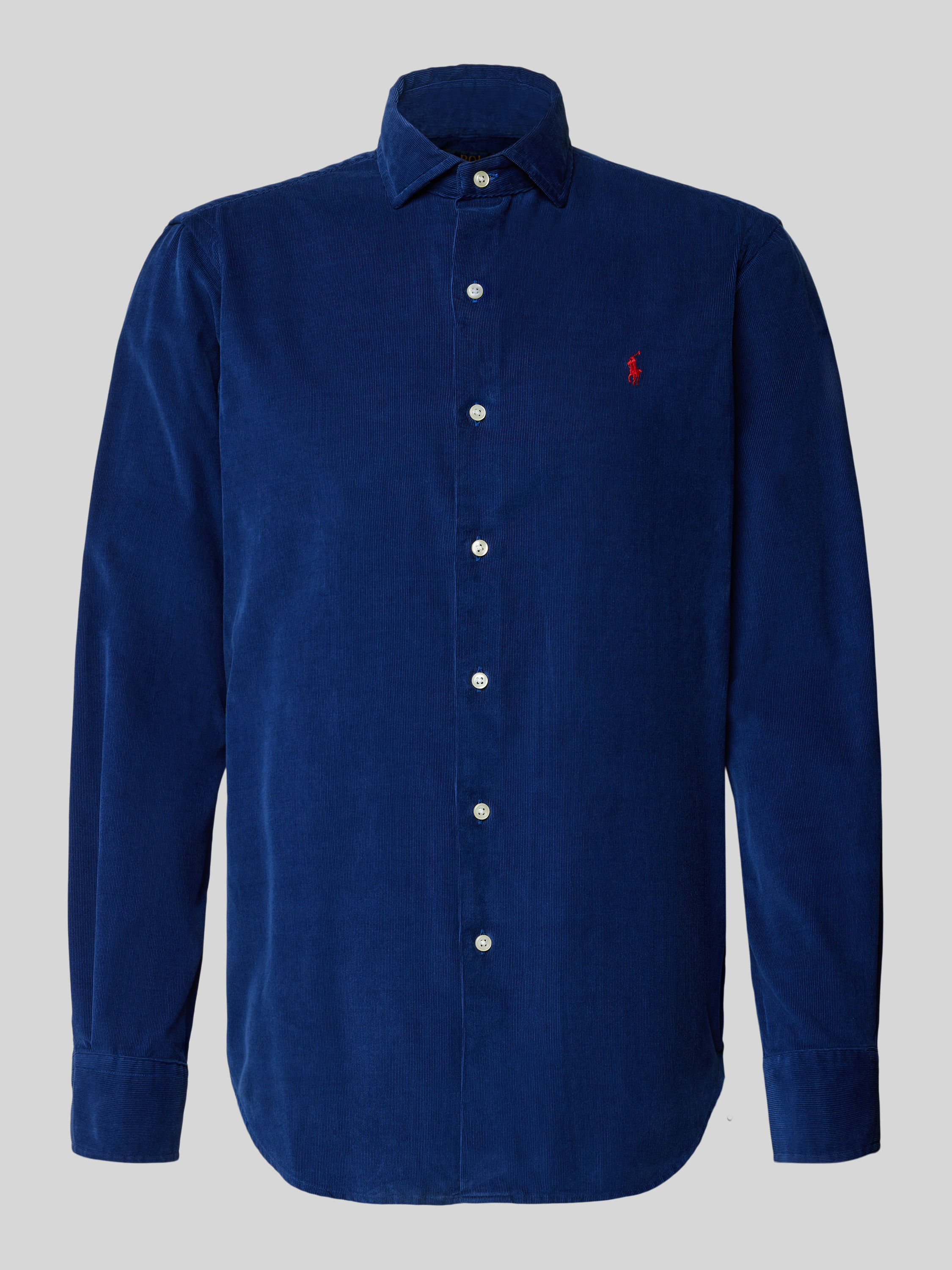 Koszula casualowa o kroju regular fit z wyhaftowanym logo model ‘CORDUROY’ - ciemnoniebieski