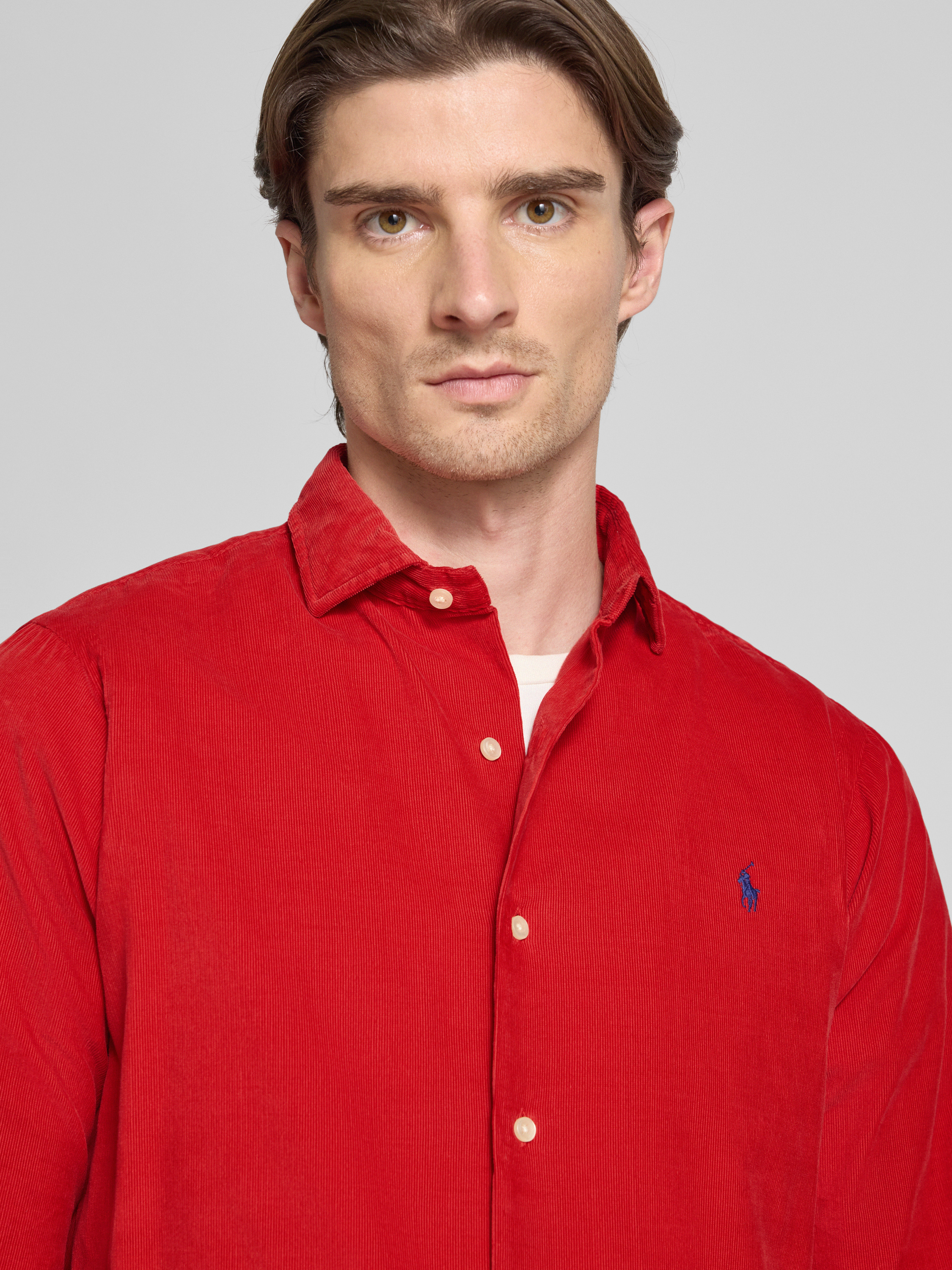 Koszula casualowa o kroju regular fit z wyhaftowanym logo model ‘CORDUROY’ - czerwony