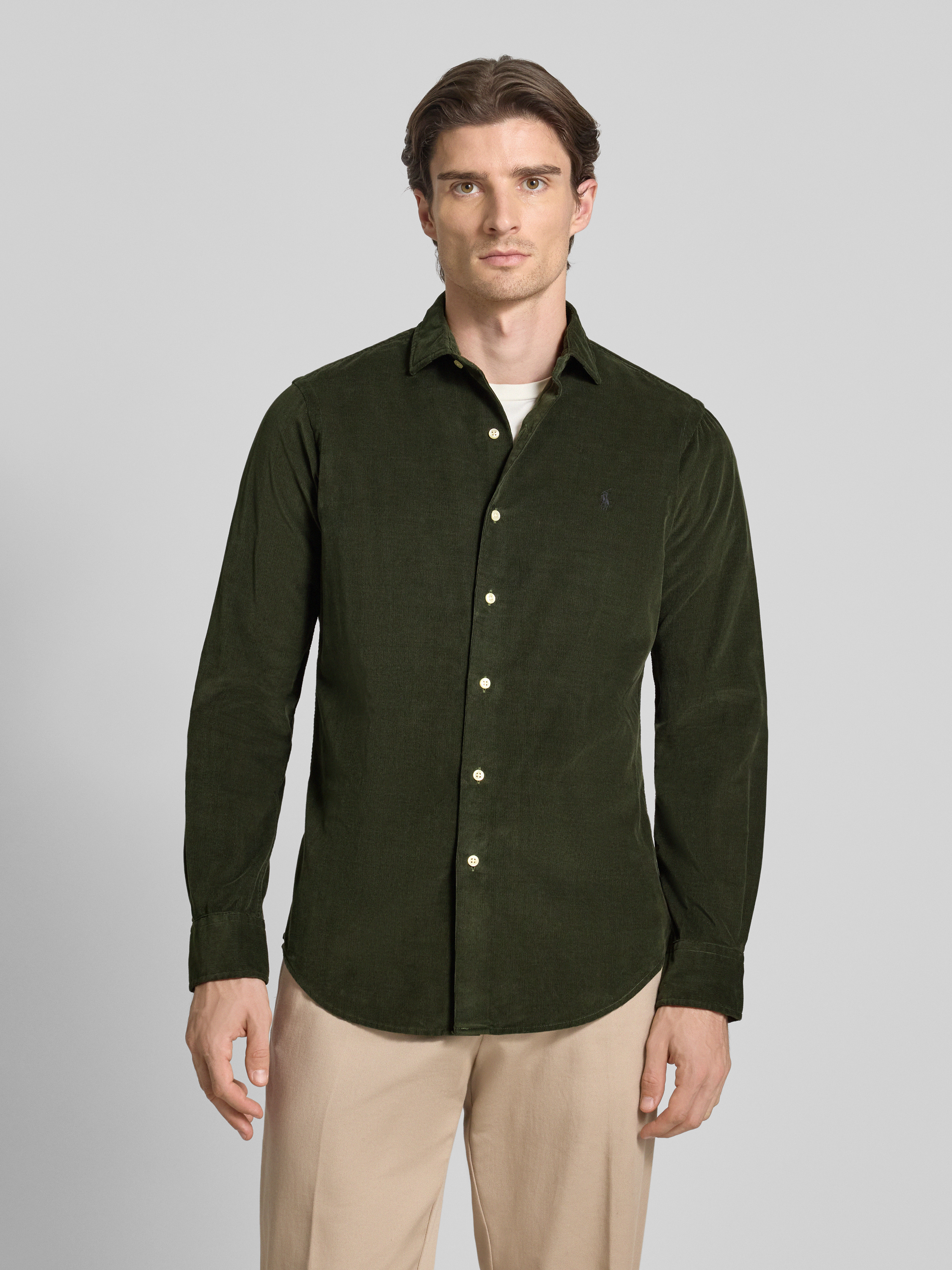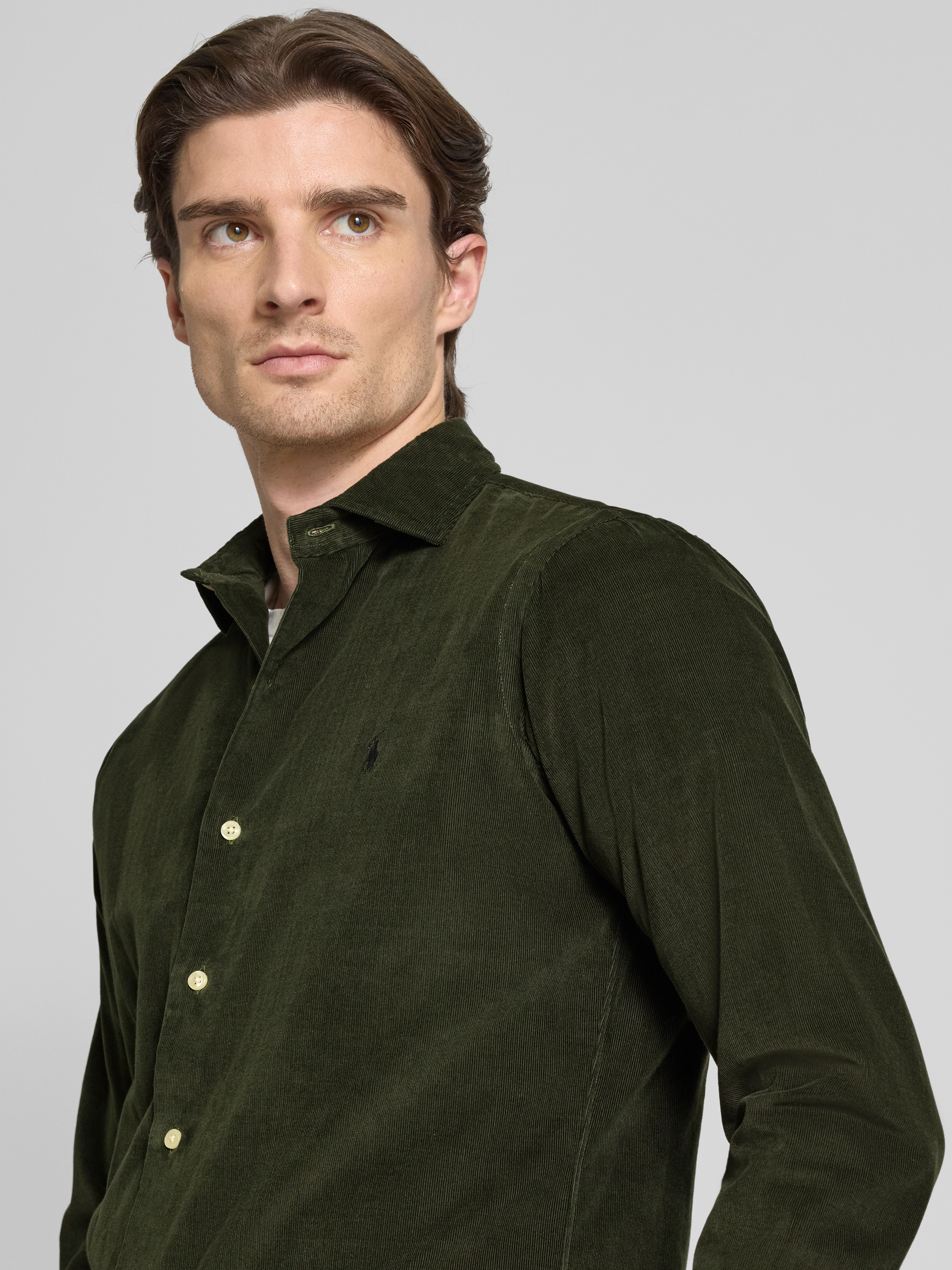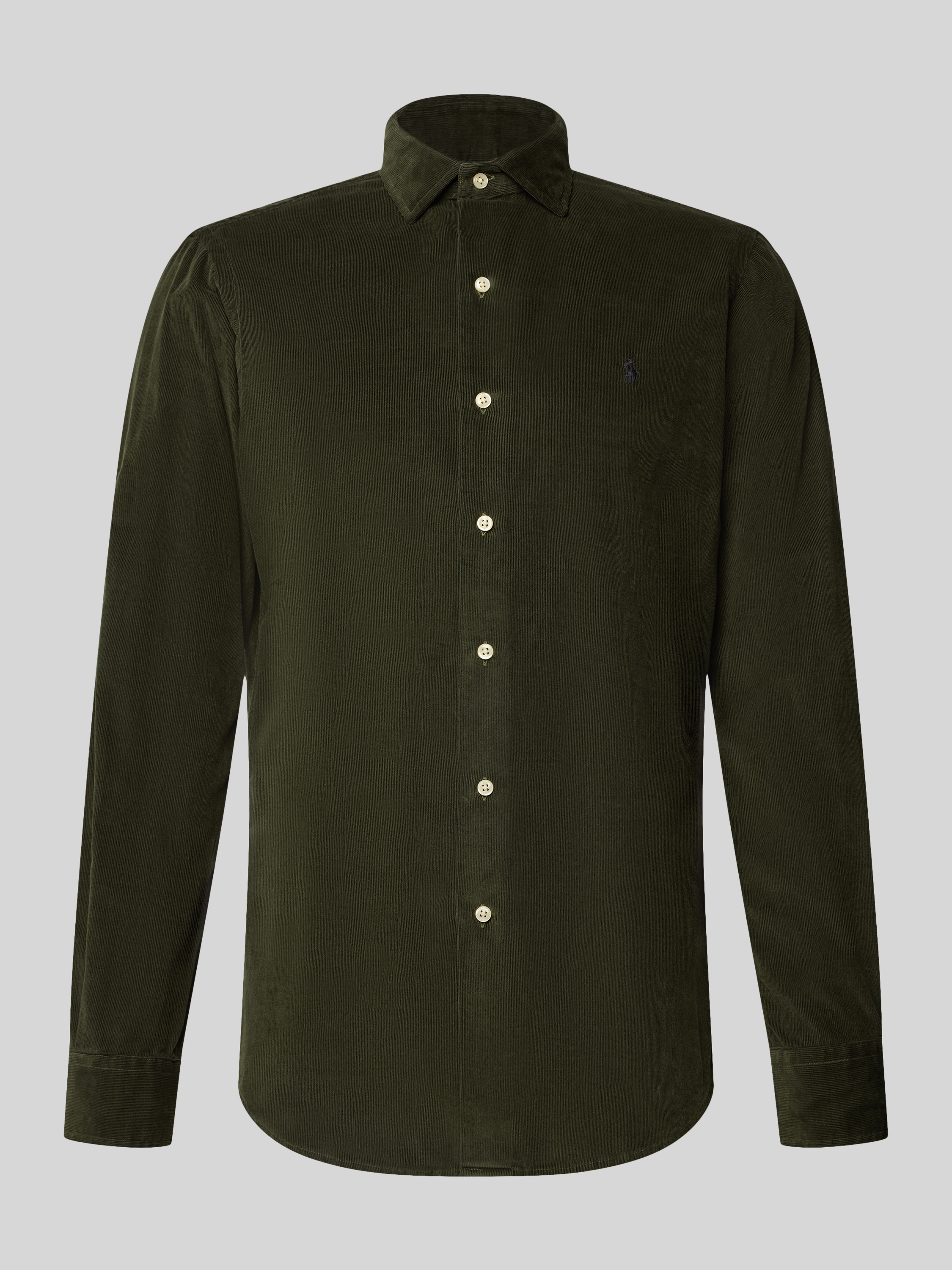 Koszula casualowa o kroju regular fit z wyhaftowanym logo model ‘CORDUROY’ - oliwkowy