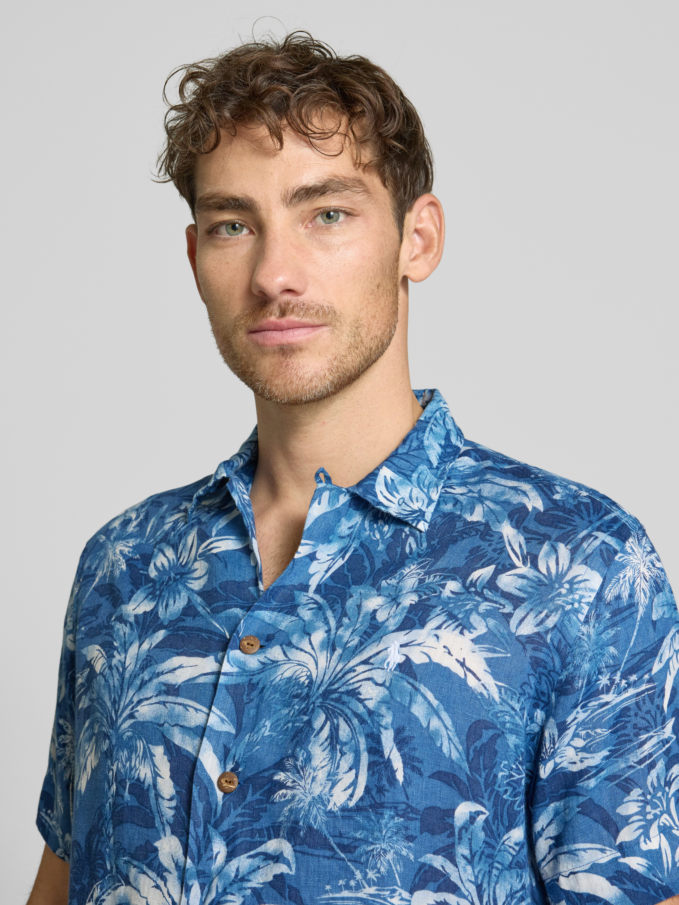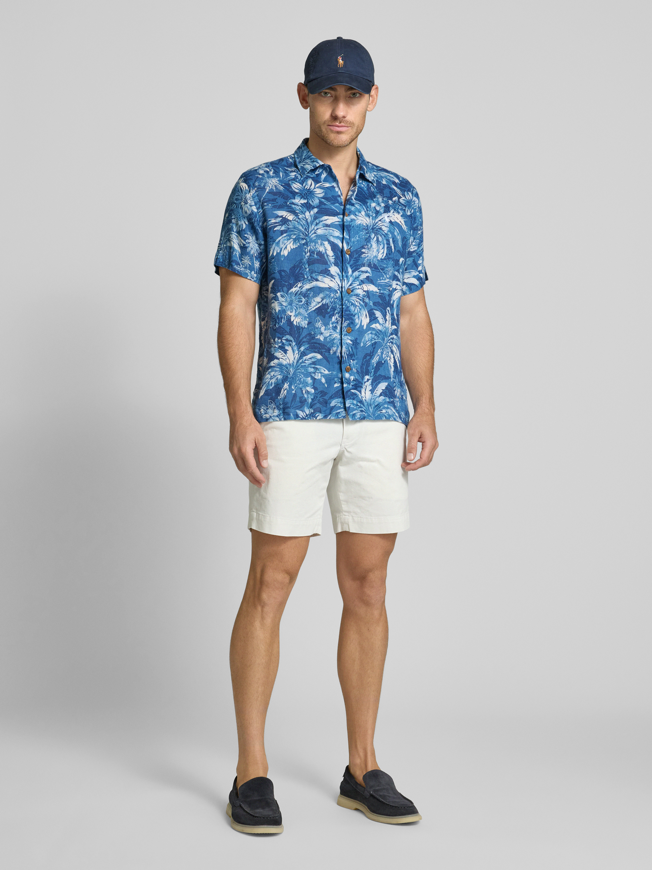Koszula lniana o kroju classic fit z rękawem o dł. 1/2 - królewski niebieski
