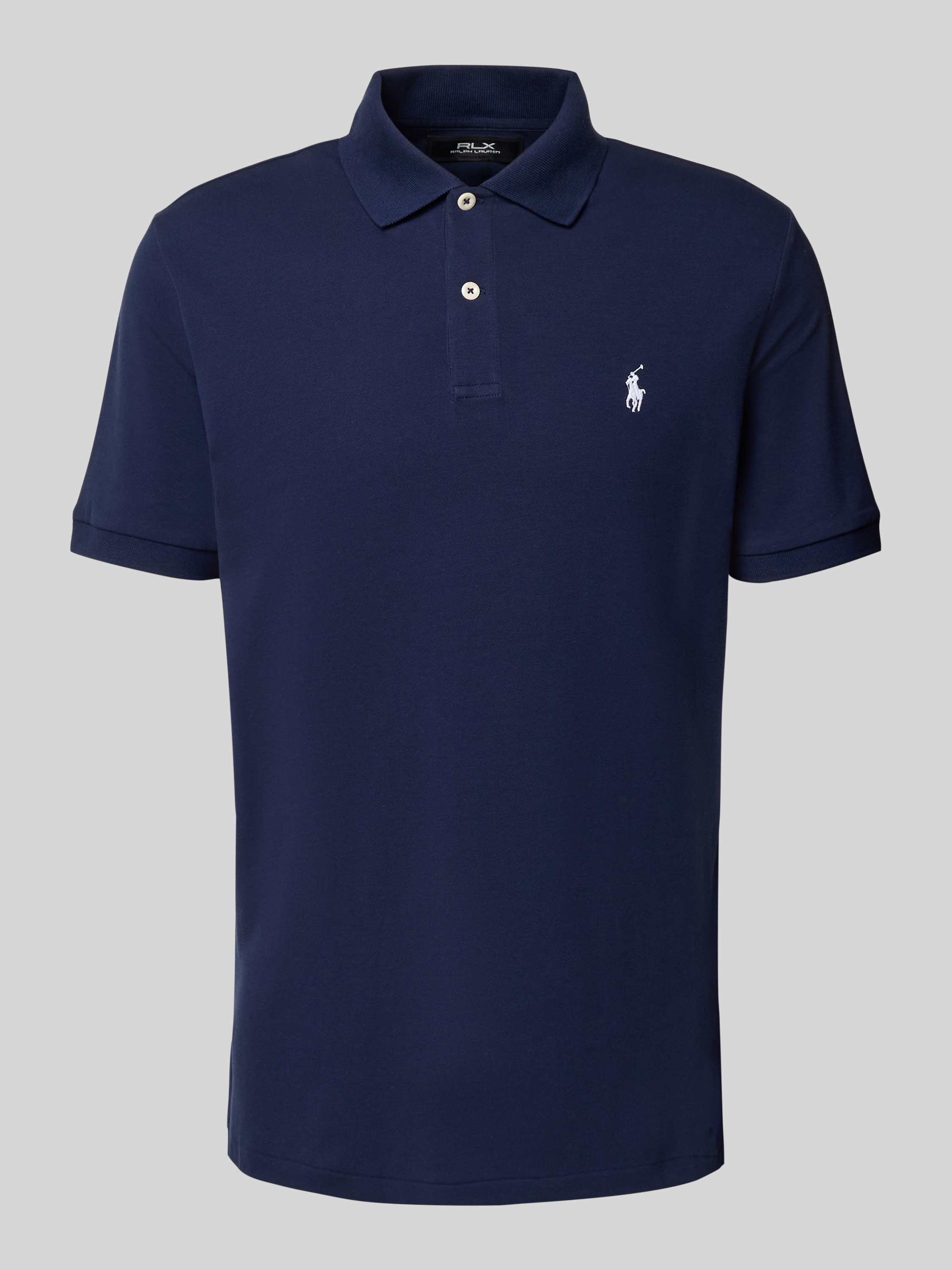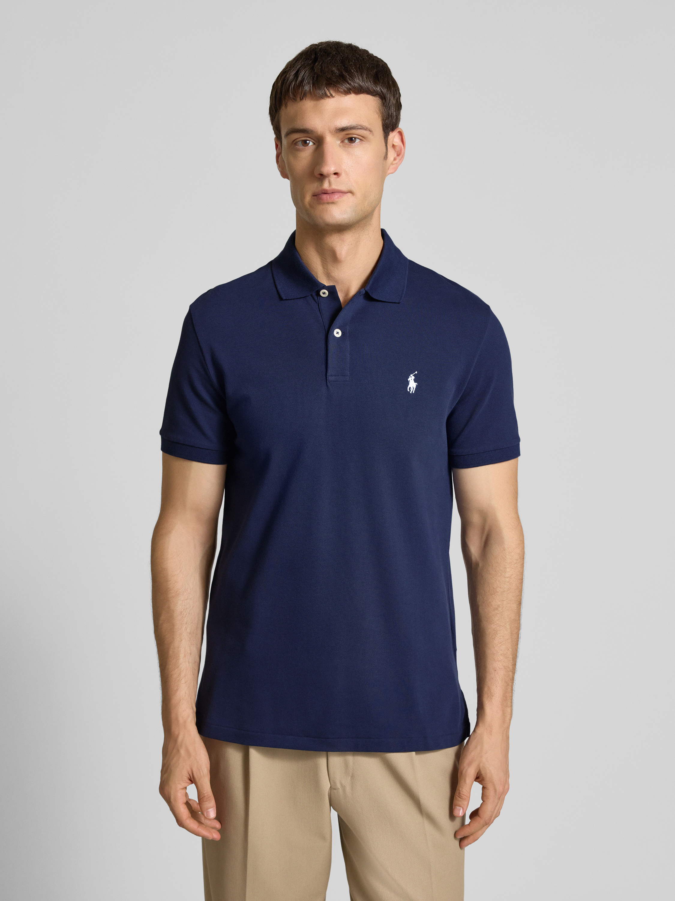 Koszulka polo o kroju slim fit z wyhaftowanym logo - ciemnoniebieski