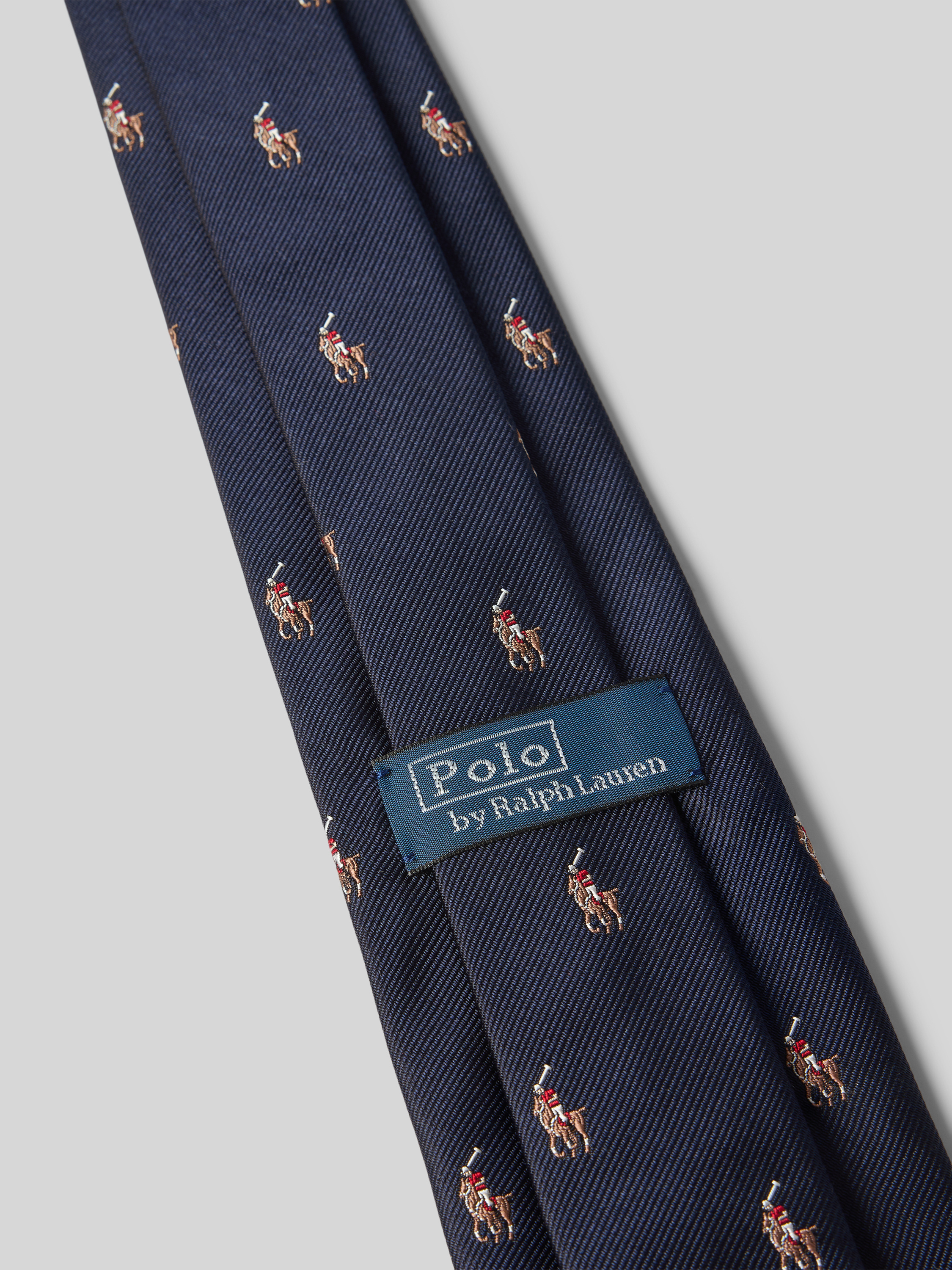 Krawat jedwabny z wyhaftowanym logo - granatowy