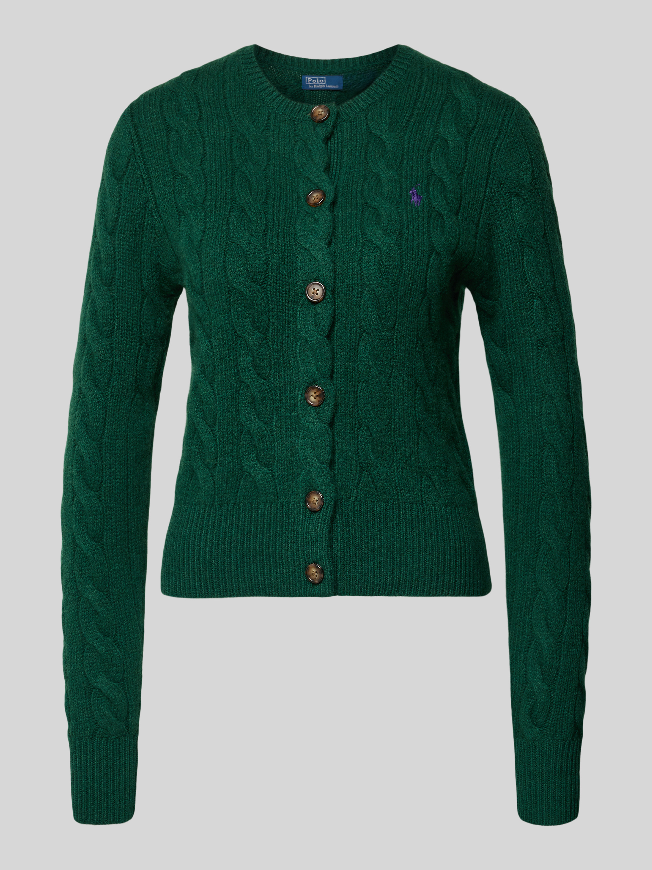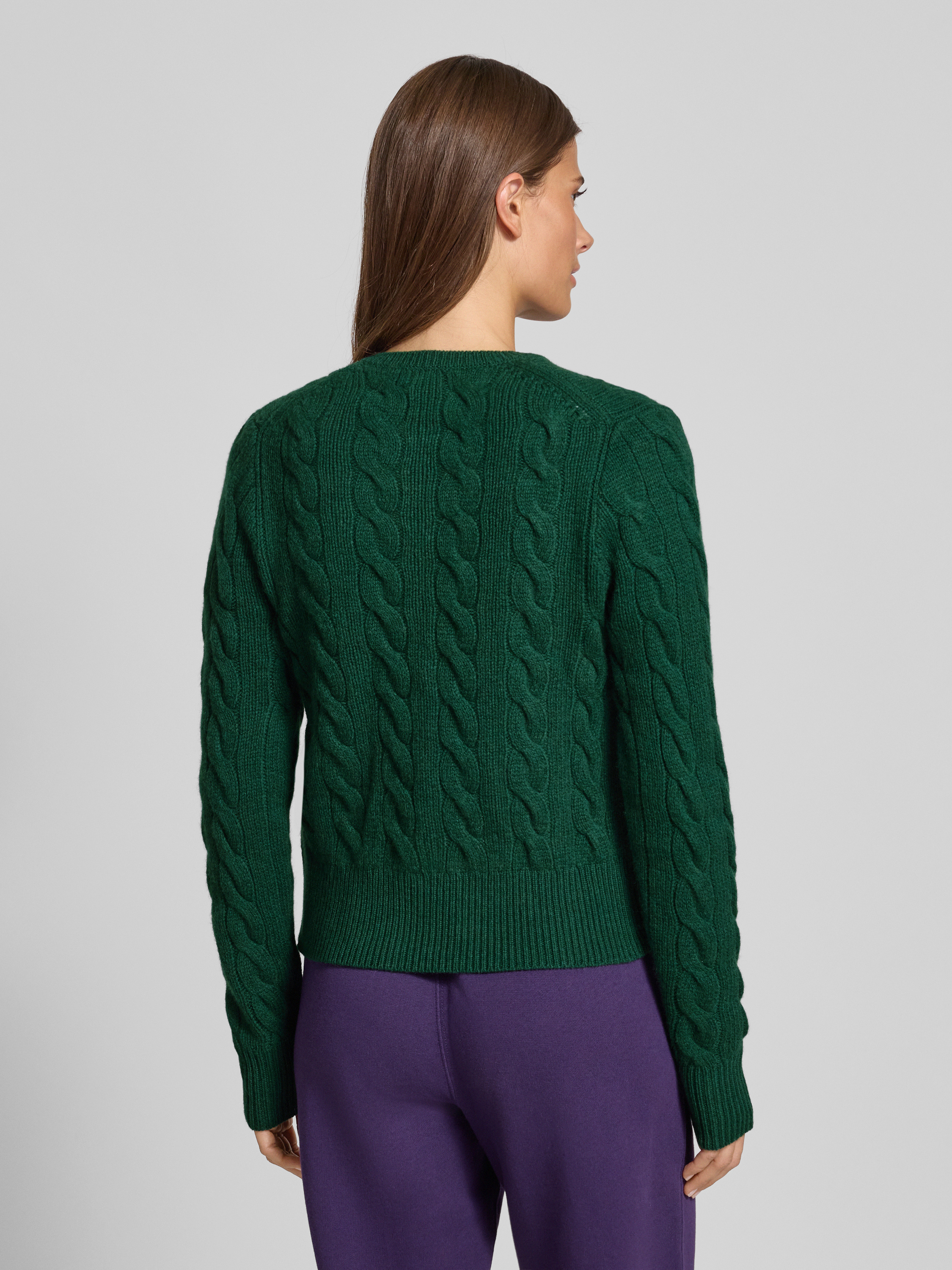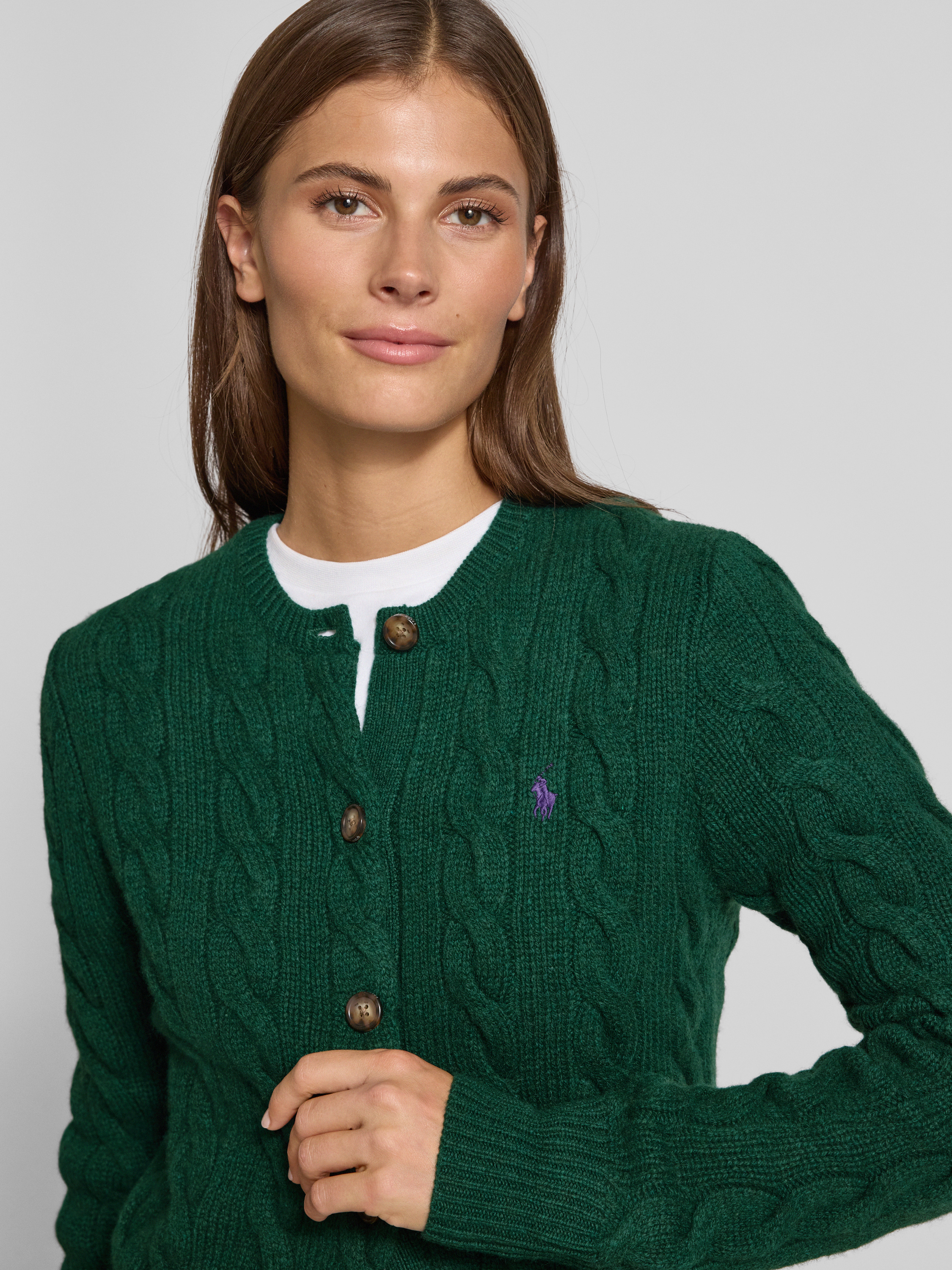 Kurtka z dzianiny z mieszanki wełny i kaszmiru ze ściegiem warkoczowym - ciemnozielony