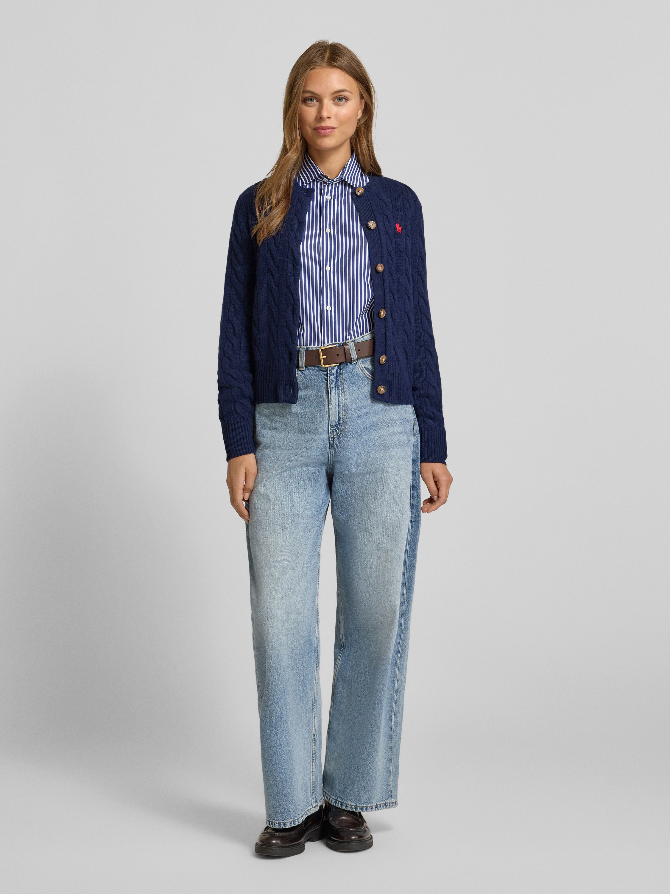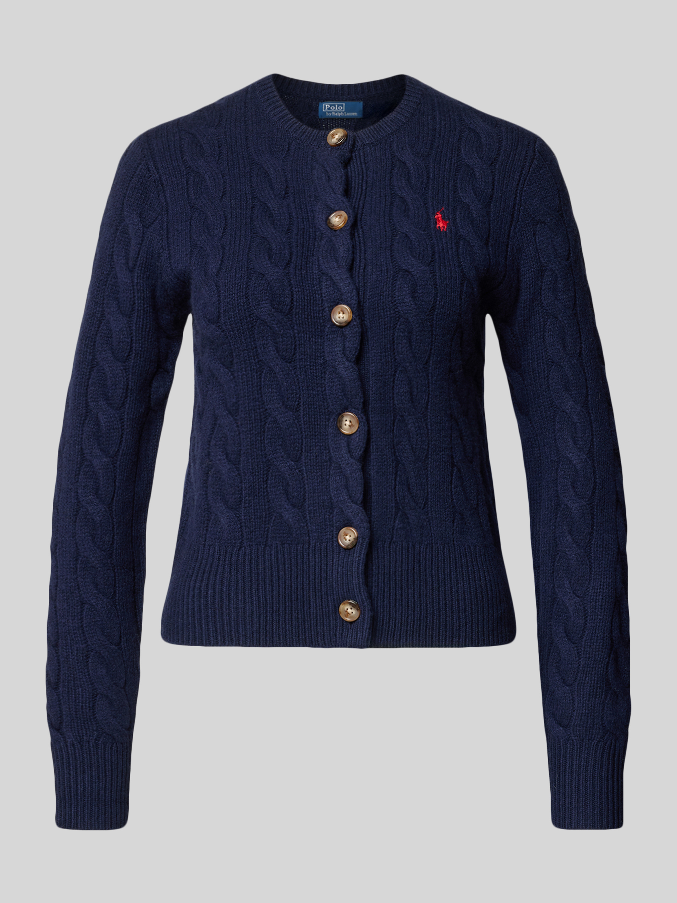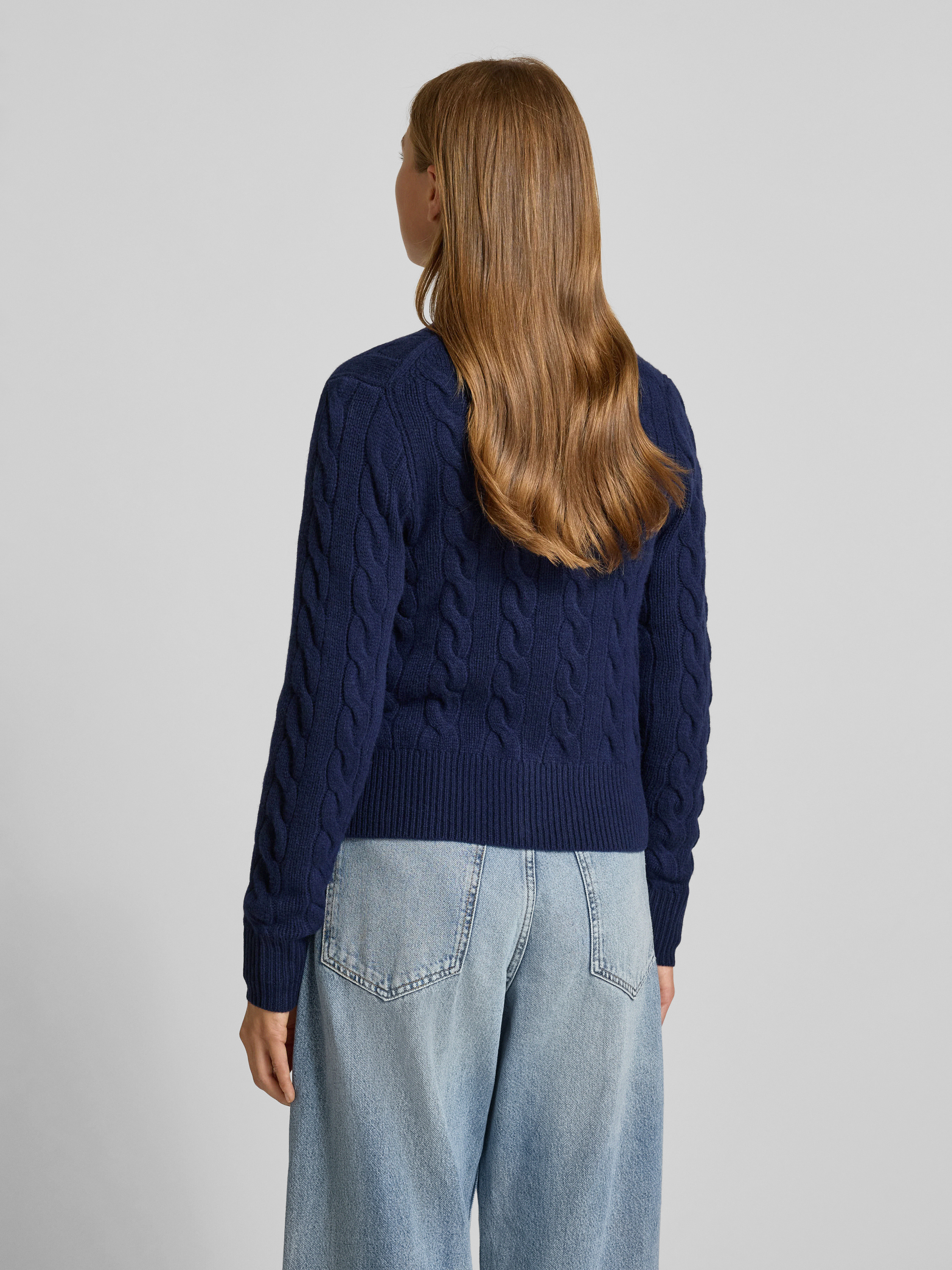 Kurtka z dzianiny z mieszanki wełny i kaszmiru ze ściegiem warkoczowym - granatowy