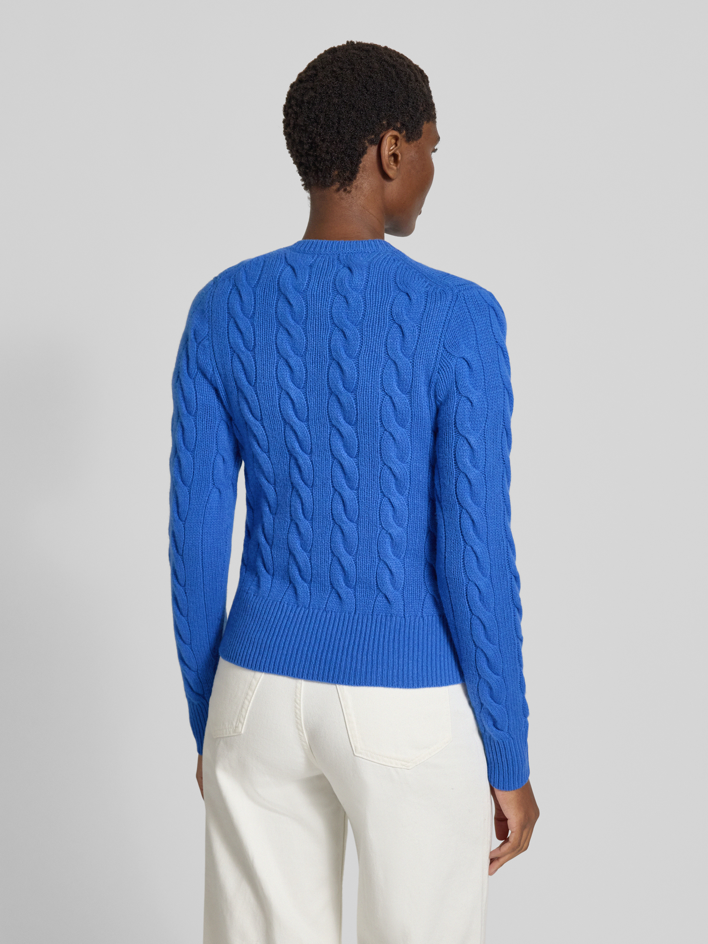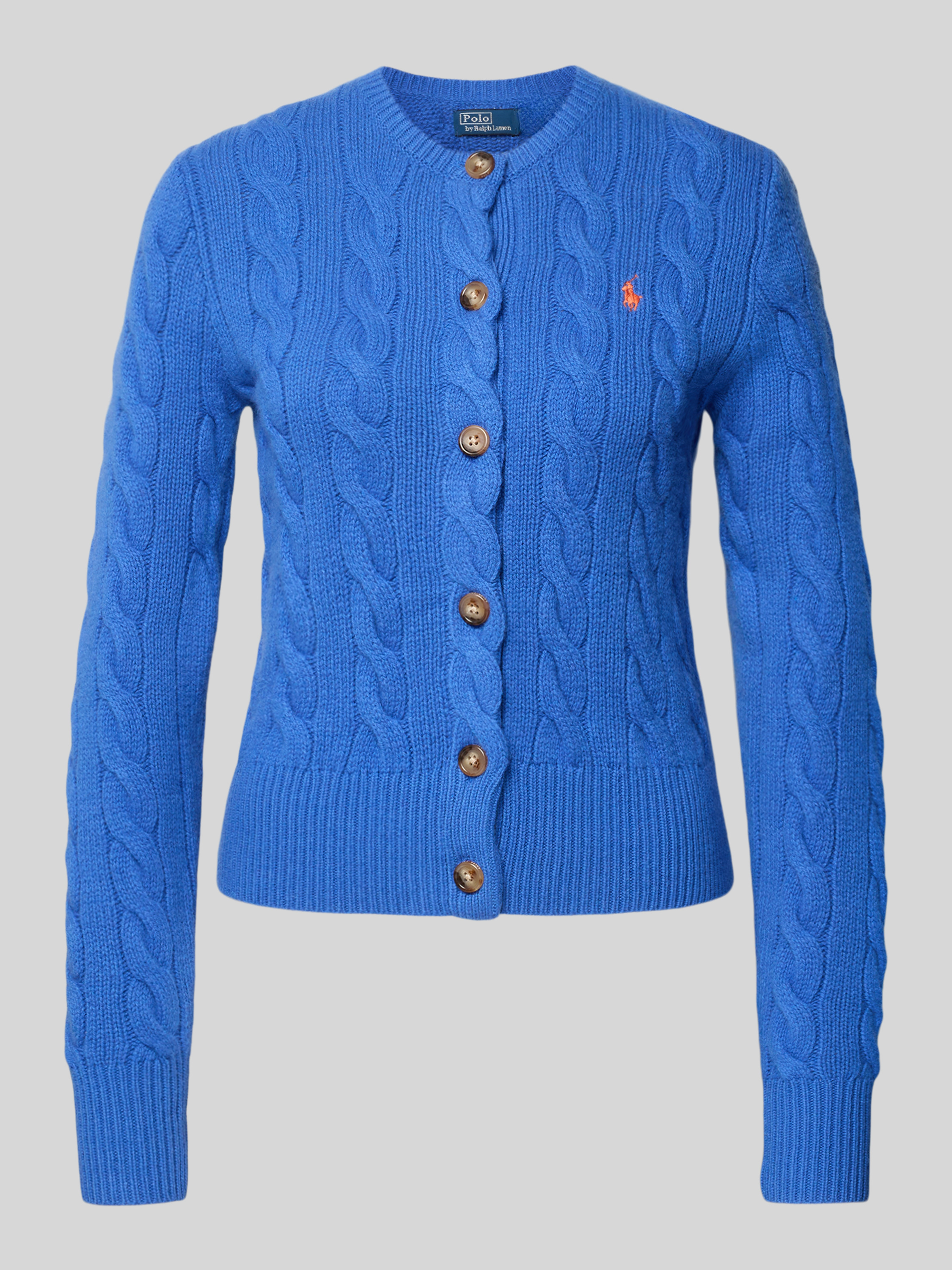 Kurtka z dzianiny z mieszanki wełny i kaszmiru ze ściegiem warkoczowym - jasnoniebieski