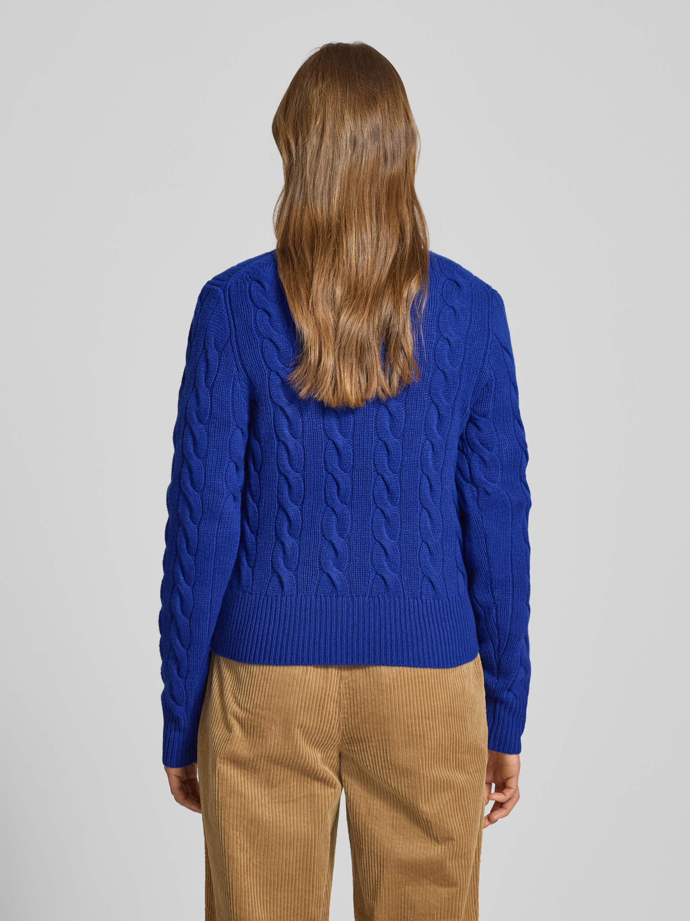Kurtka z dzianiny z mieszanki wełny i kaszmiru ze ściegiem warkoczowym - królewski niebieski