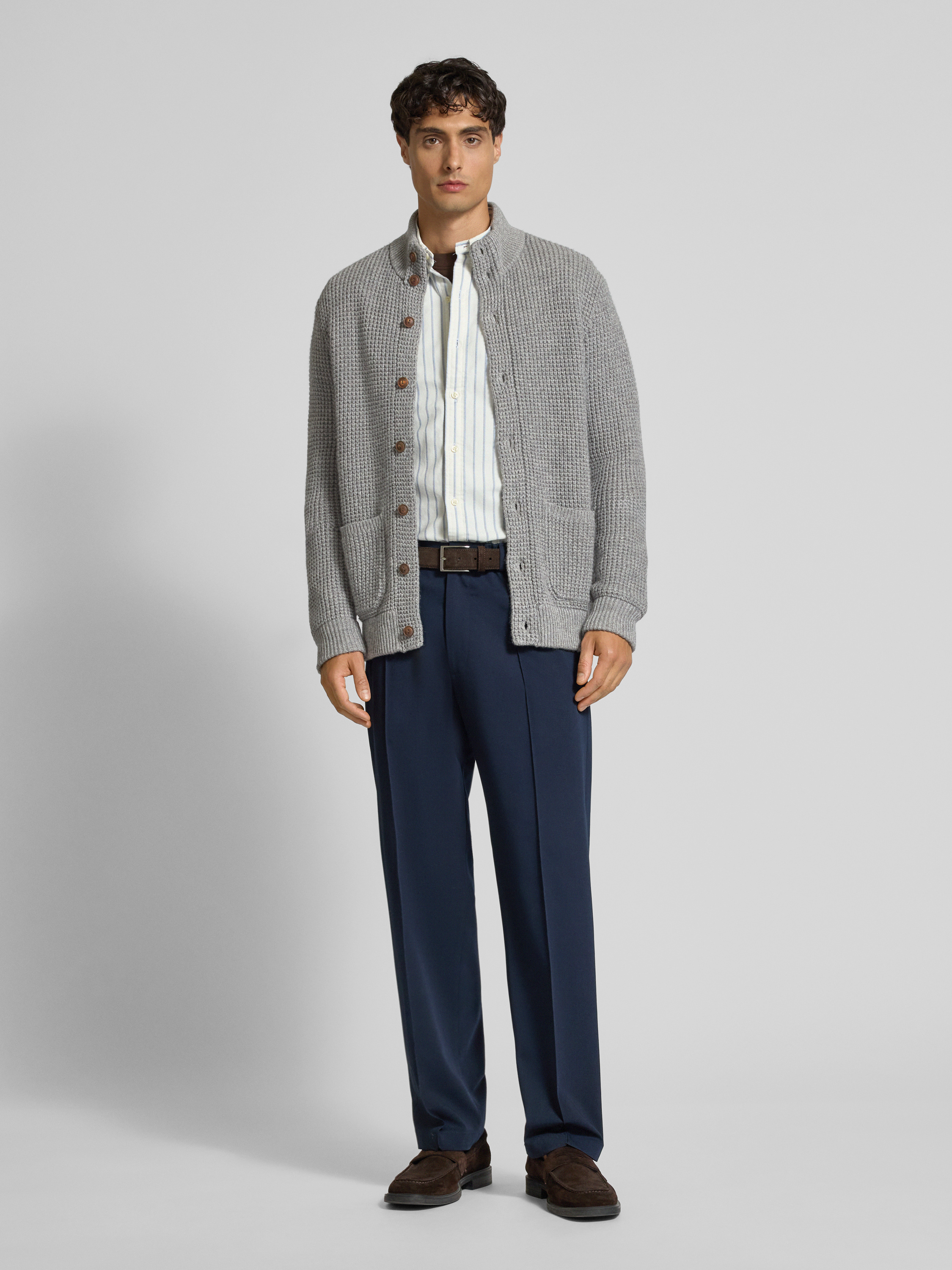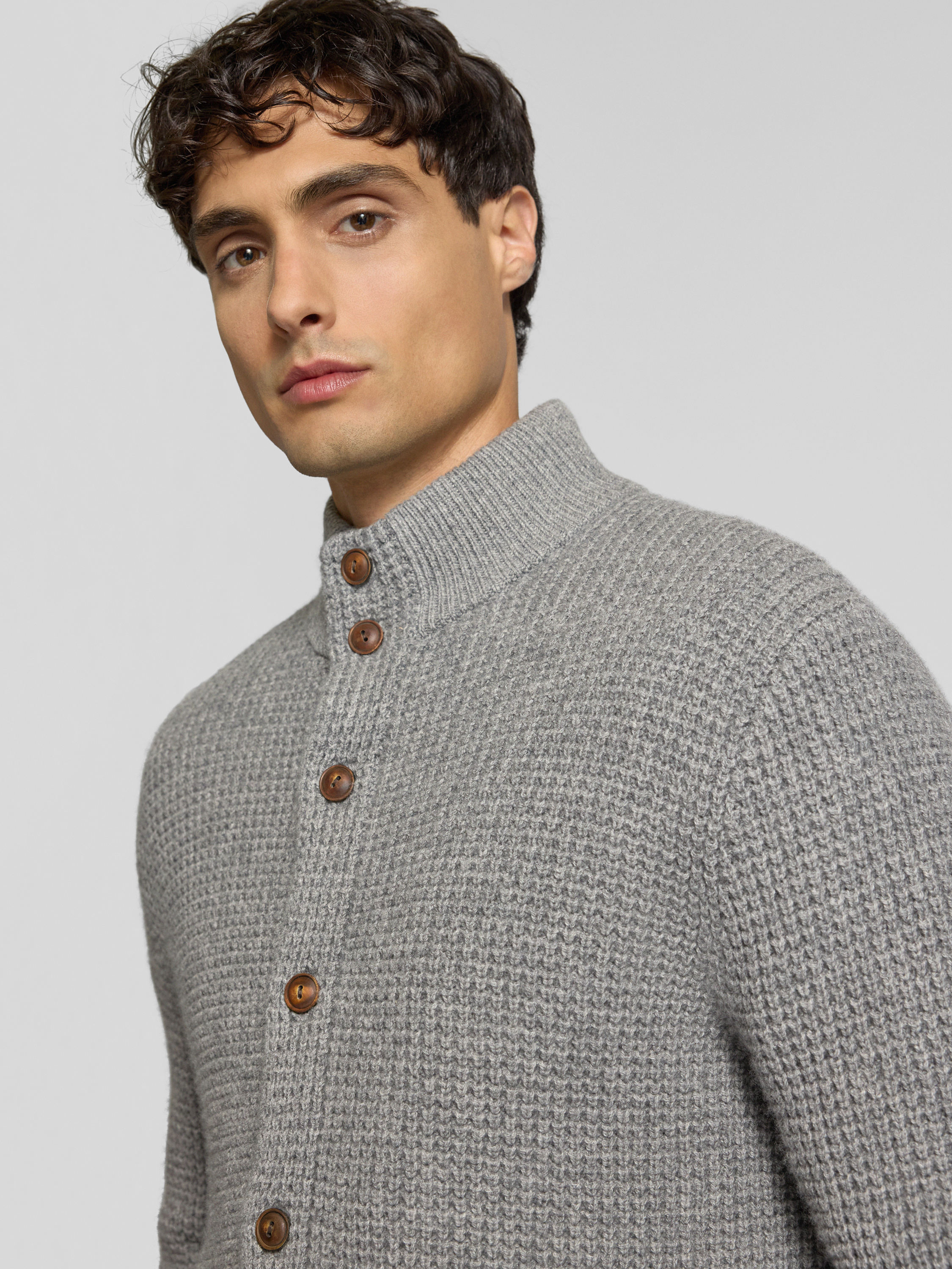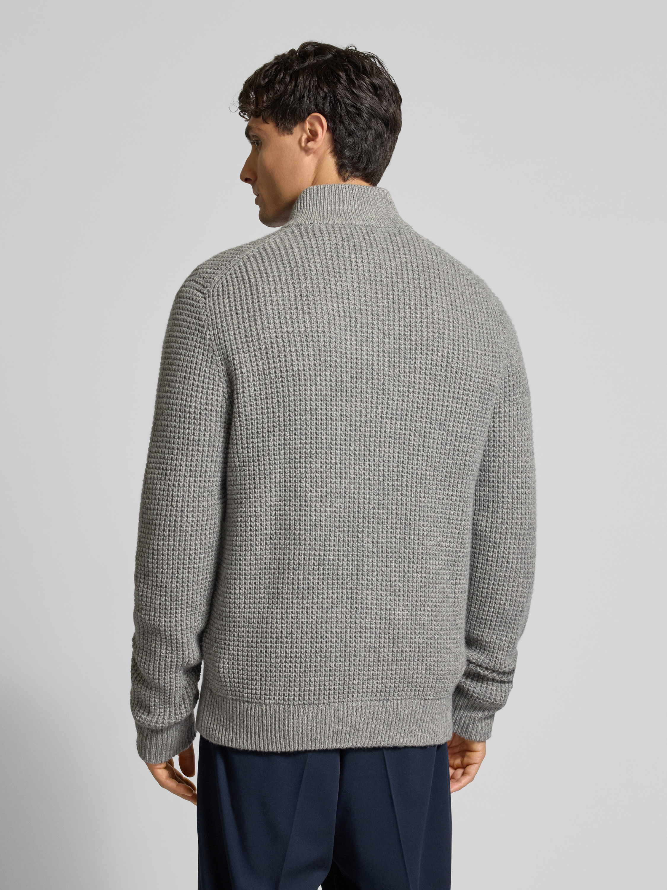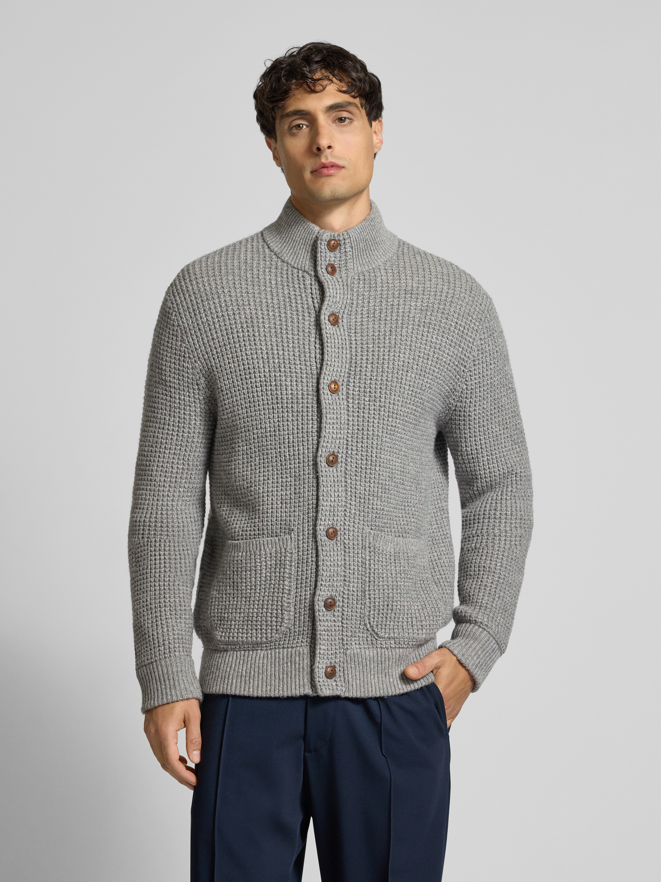 Kurtka z dzianiny z mieszanki wełny z nakładanymi kieszeniami - antracytowy melanż