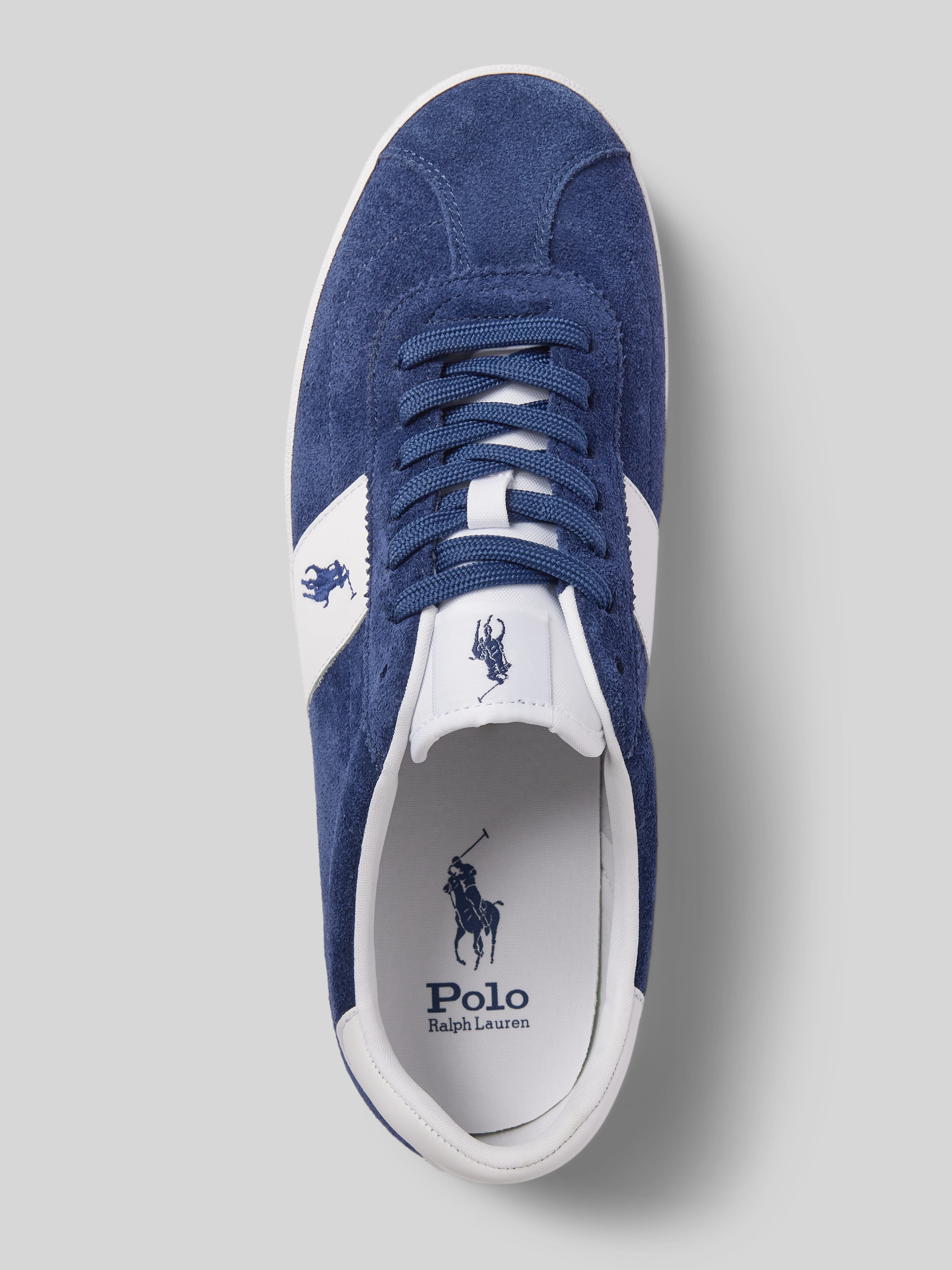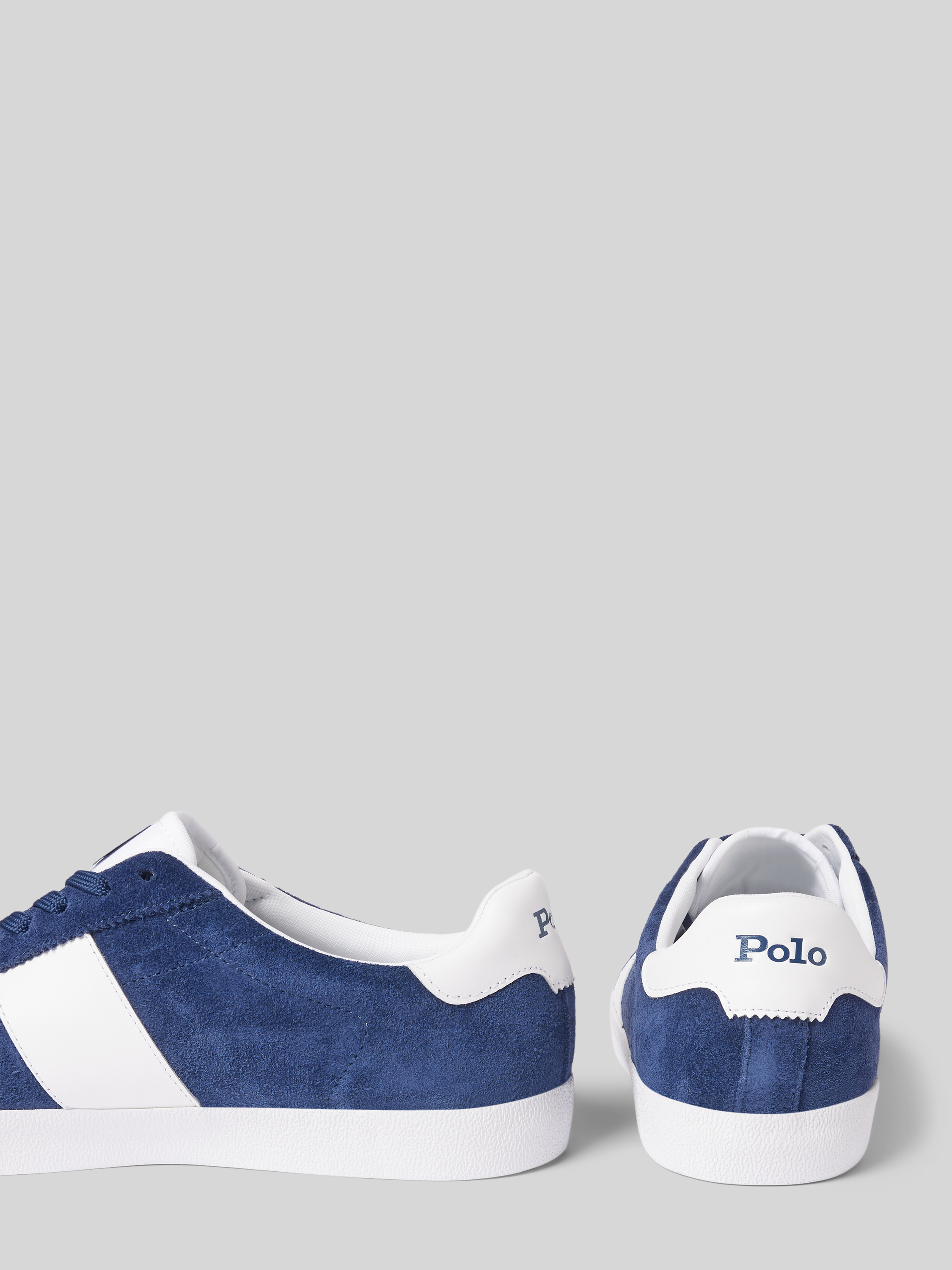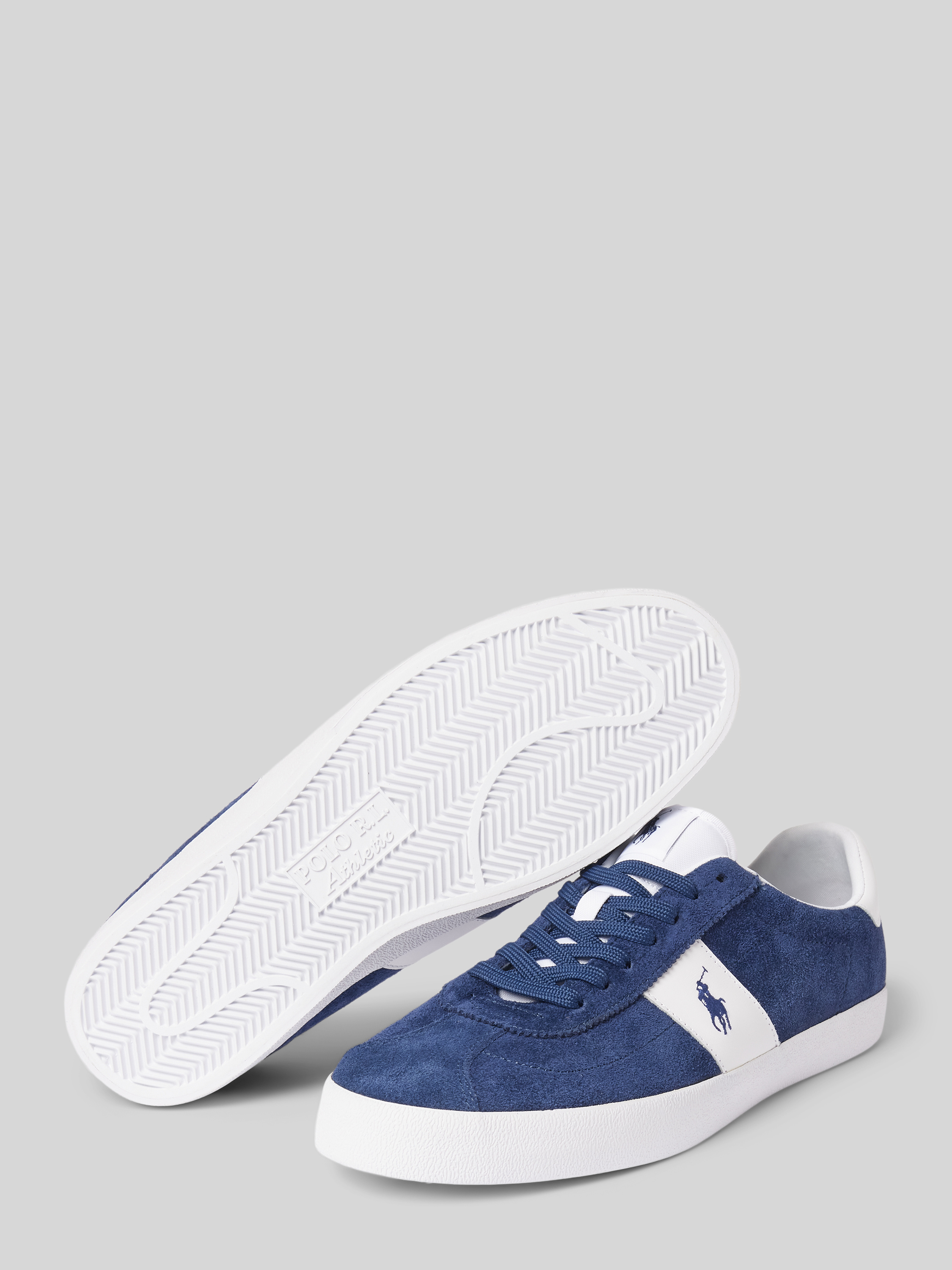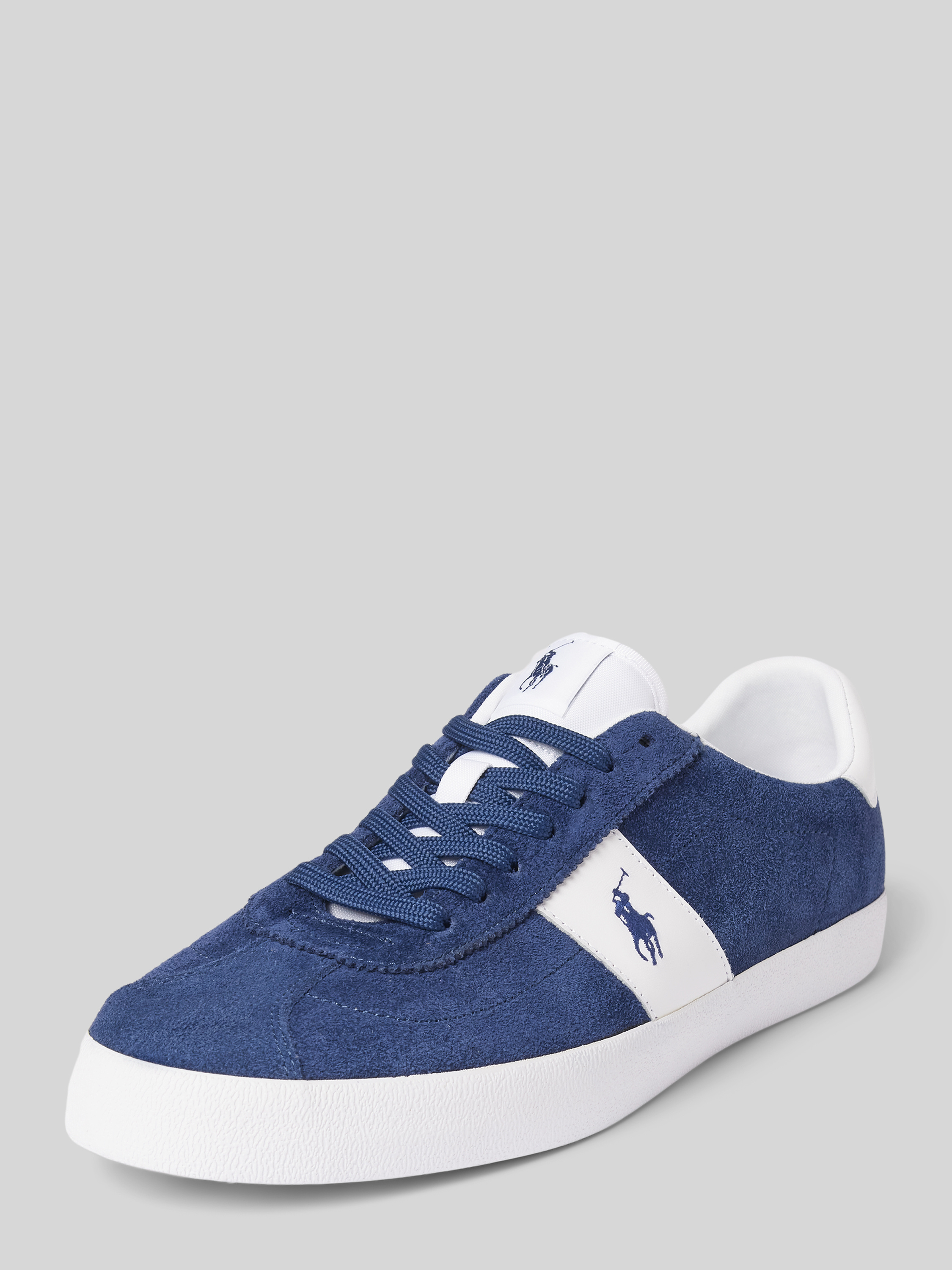 Sneakersy skórzane z wyhaftowanym logo model ‘COURT’ - ciemnoniebieski