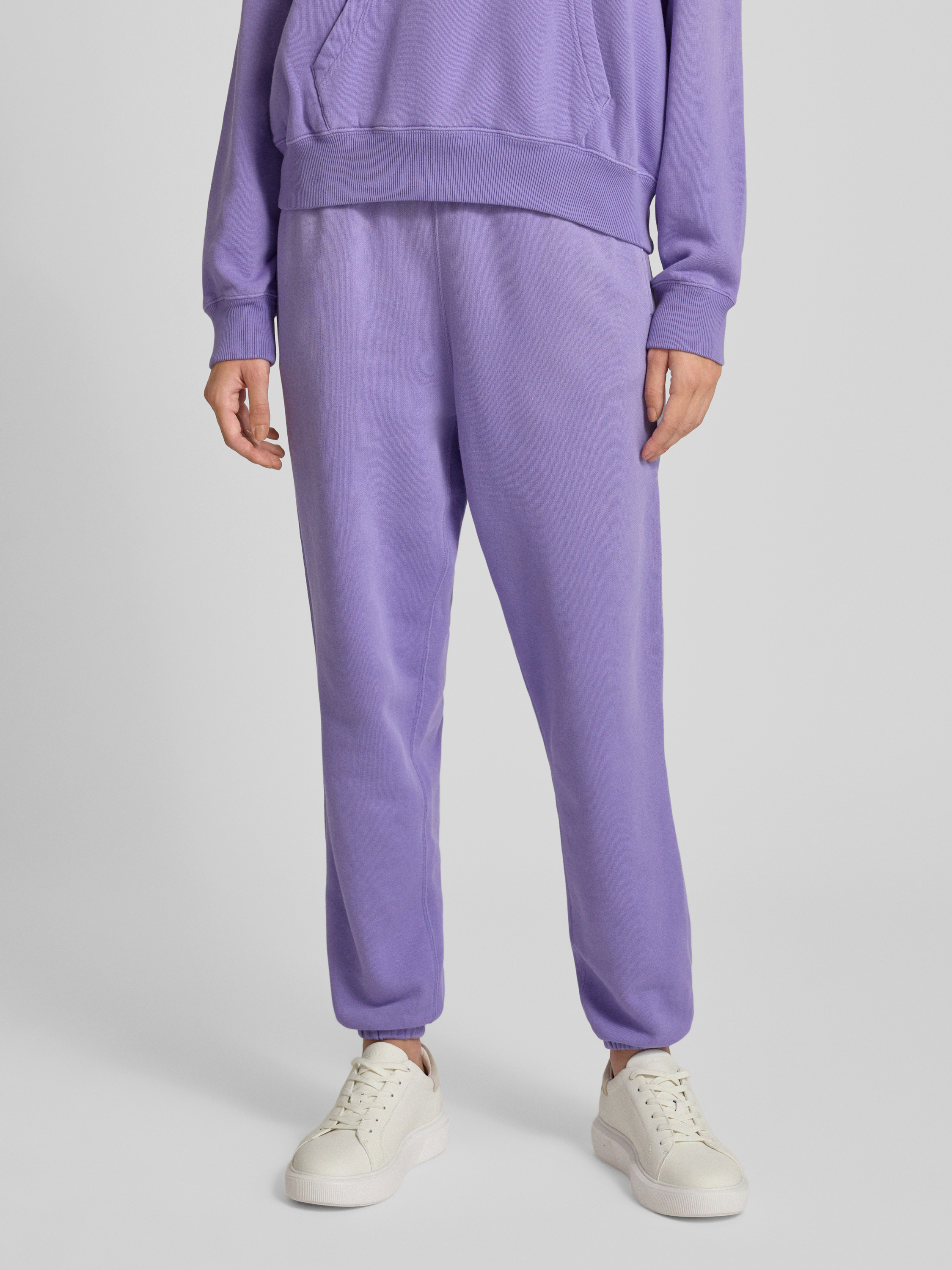 Spodnie dresowe o kroju regular fit z tunelem model ‘Knit’ - fioletowy