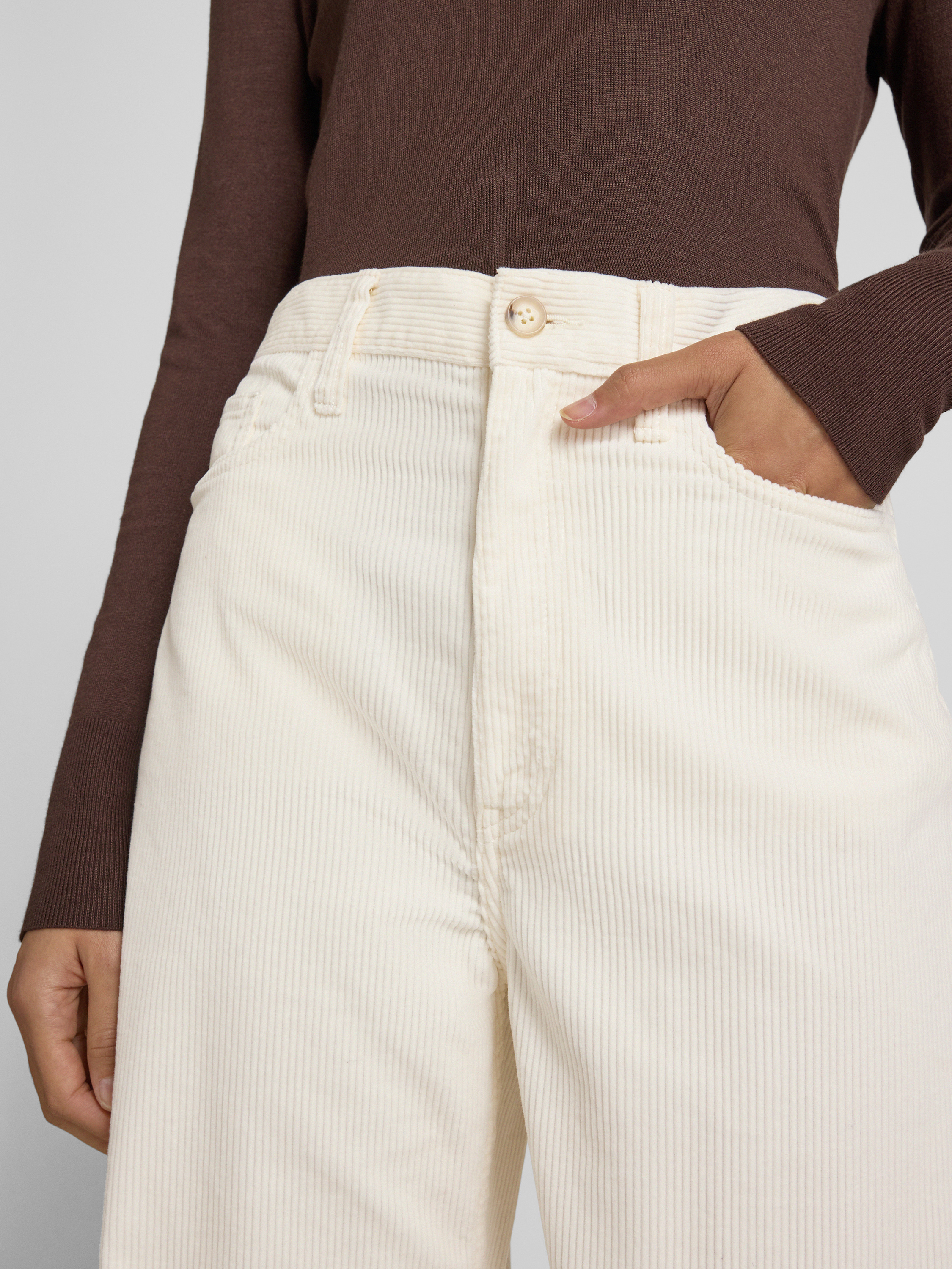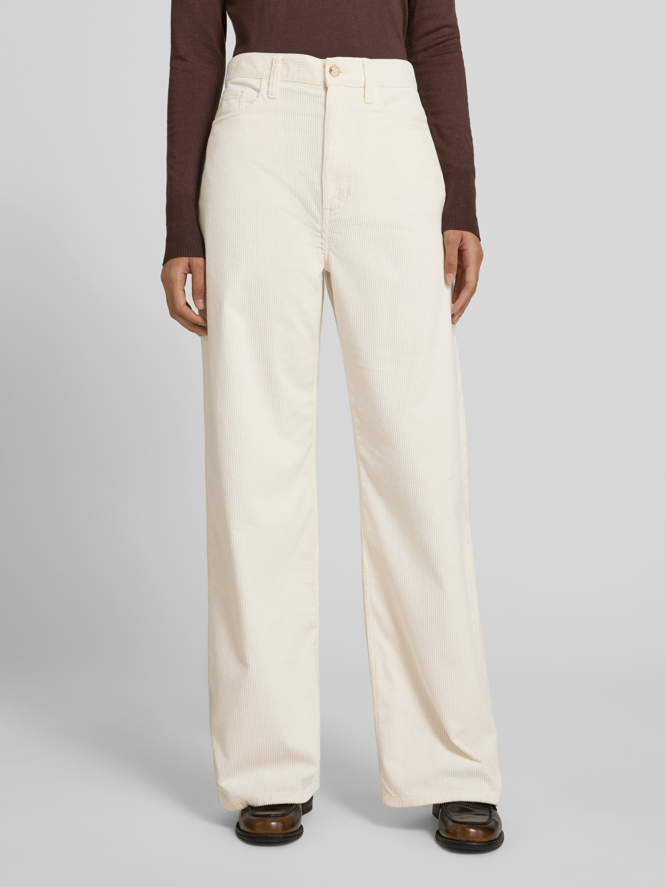 Spodnie sztruksowe z szerokimi nogawkami i 5 kieszeniami - biały