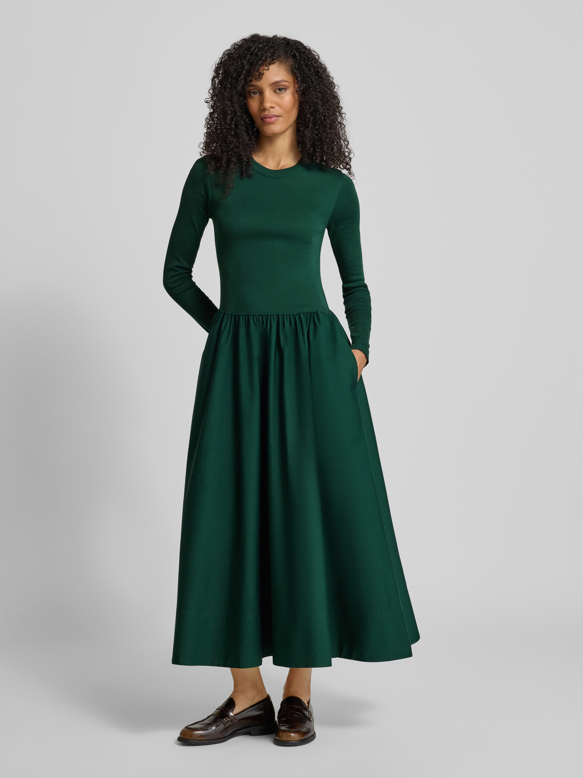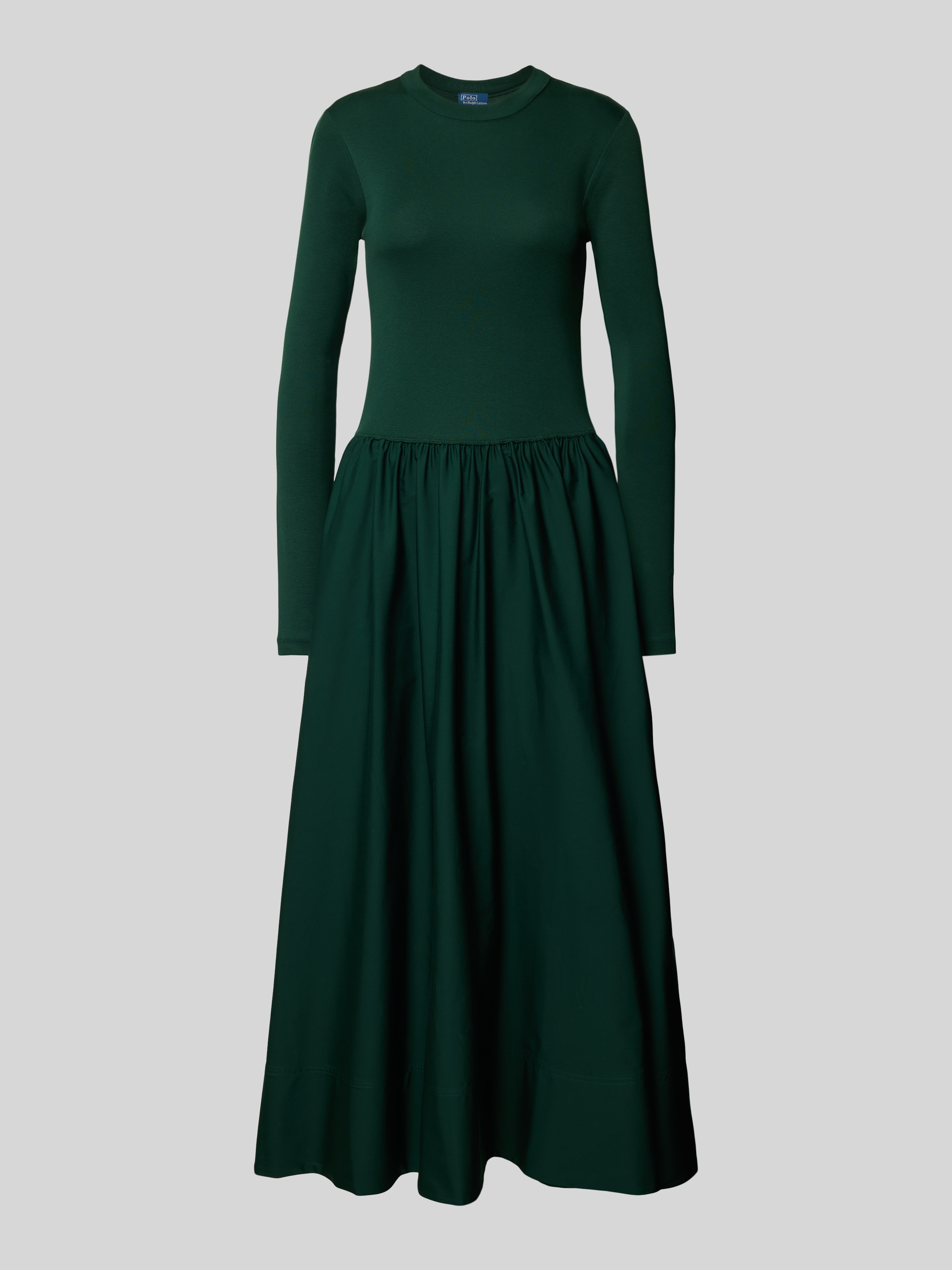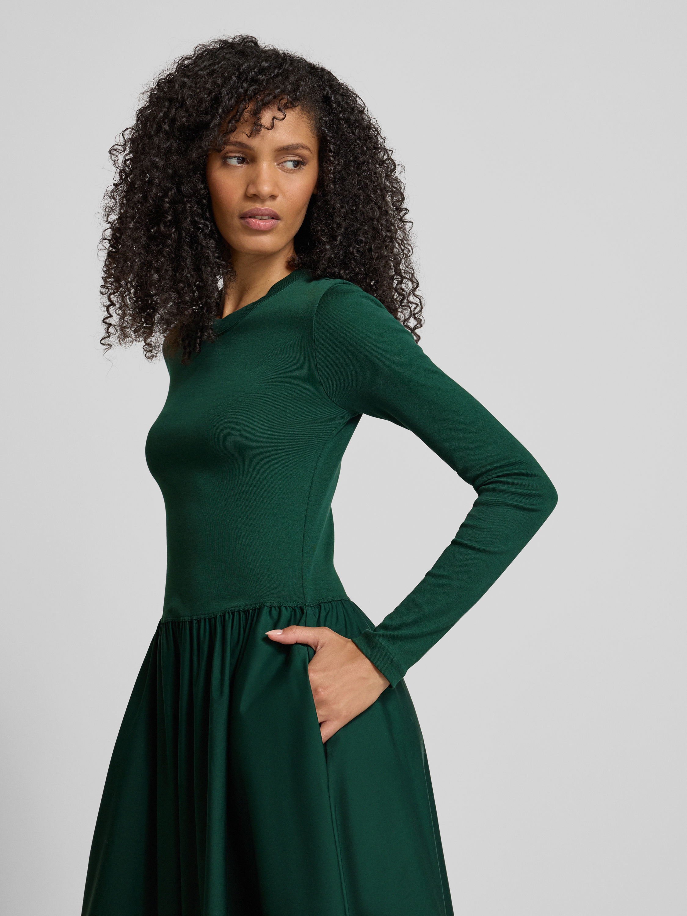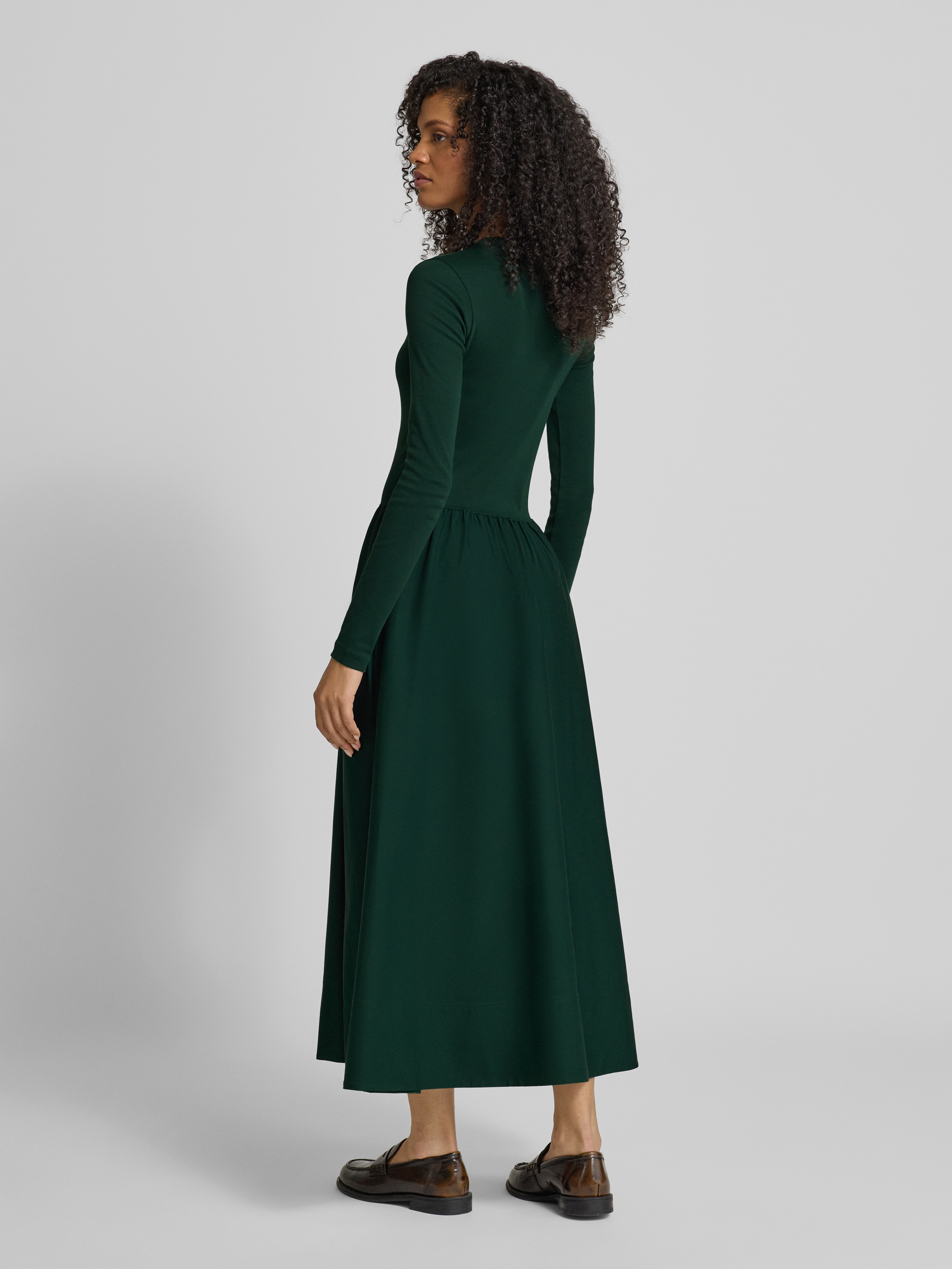 Sukienka midi z okrągłym dekoltem - ciemnozielony