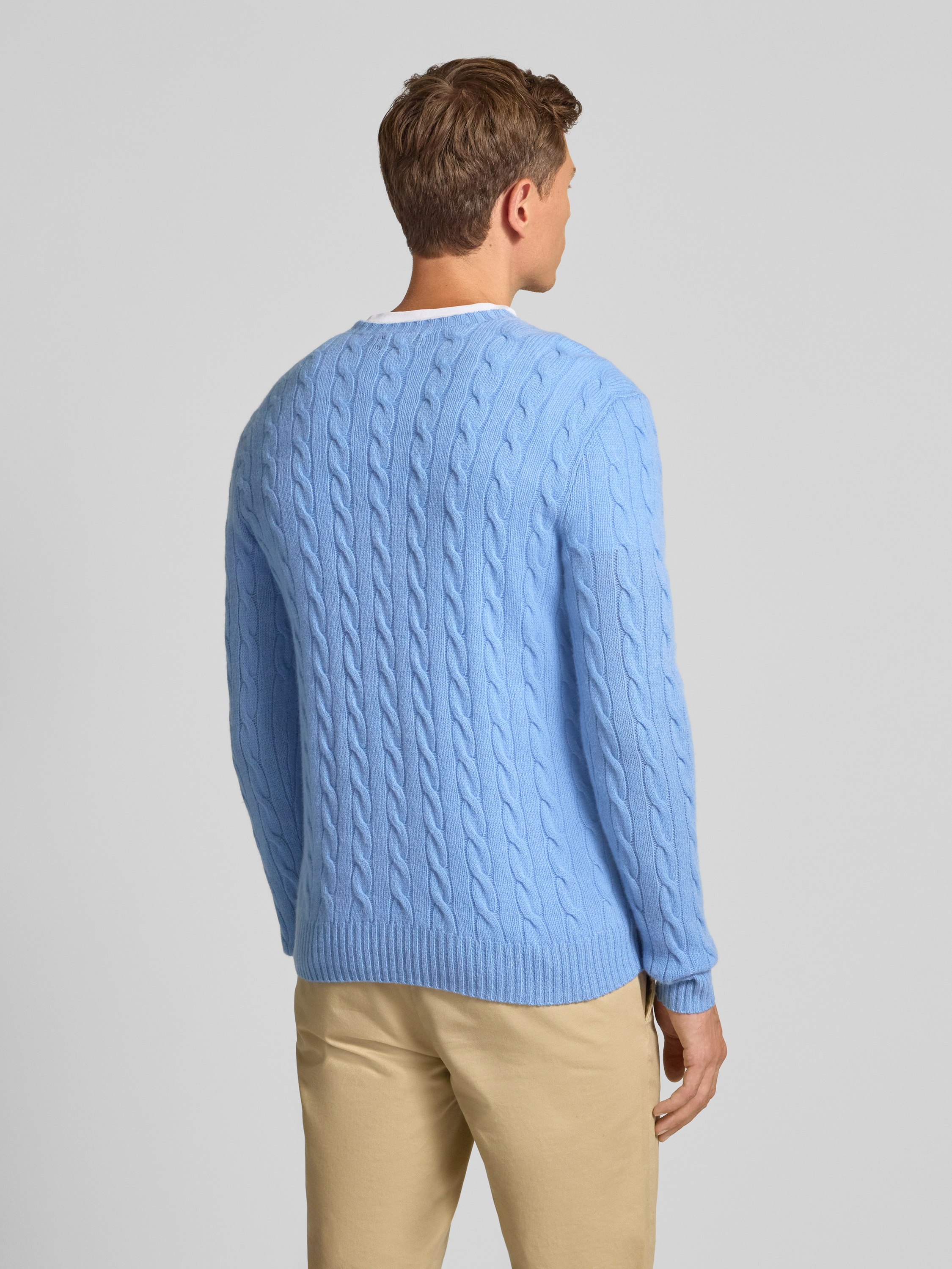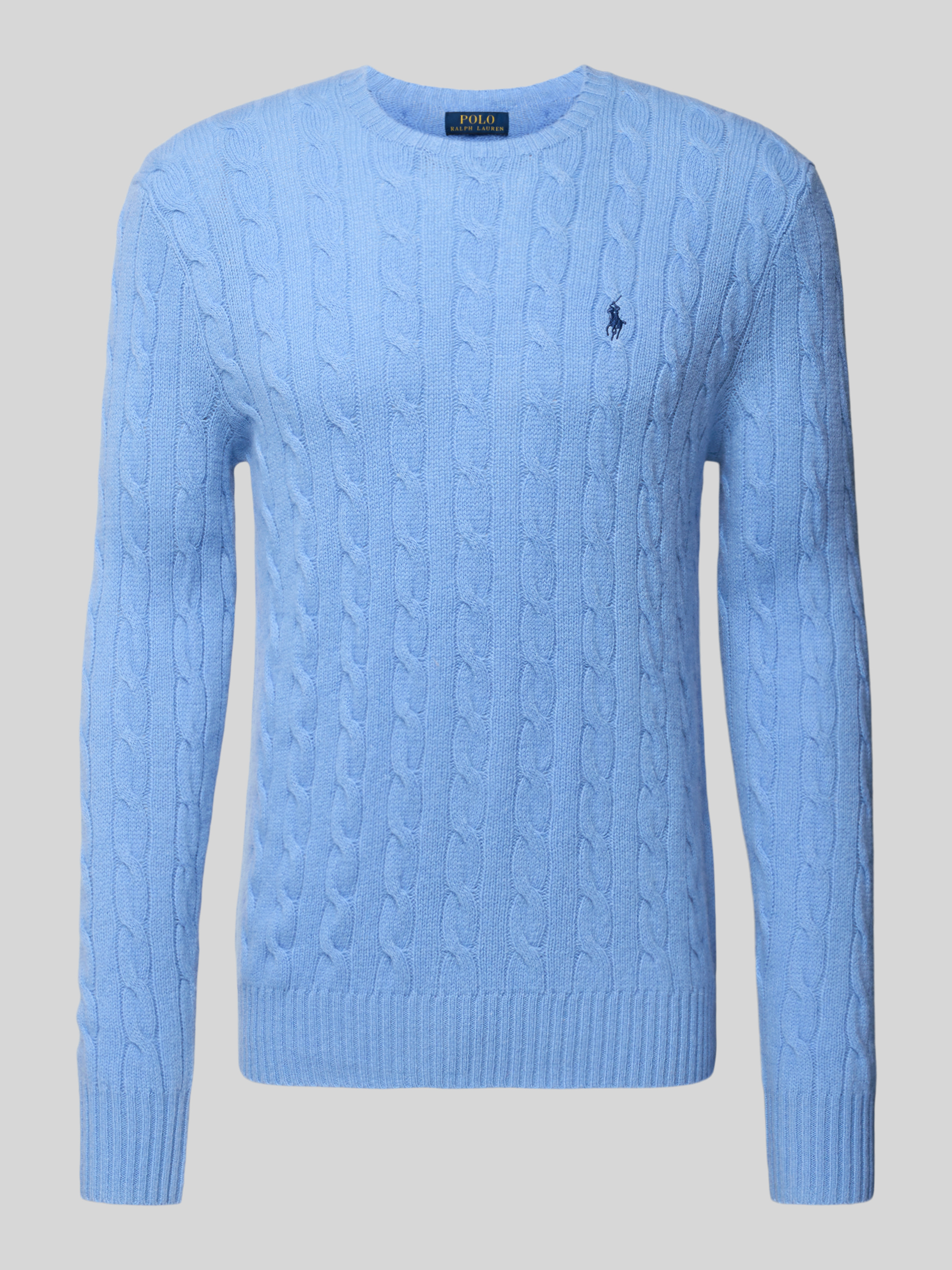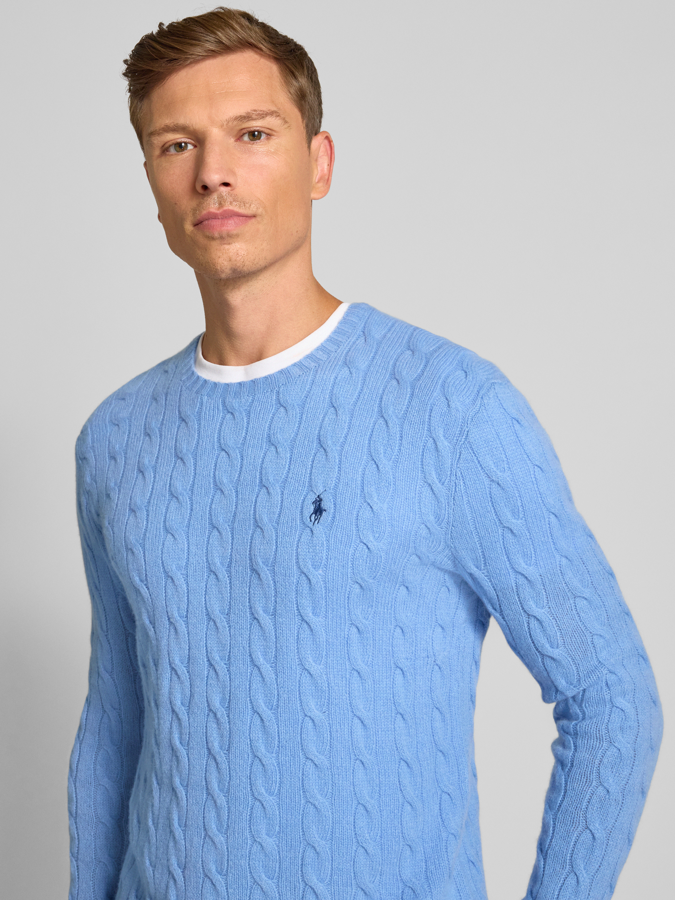 Sweter z dzianiny o kroju regular fit z mieszanki wełny i kaszmiru - jeansowy niebieski