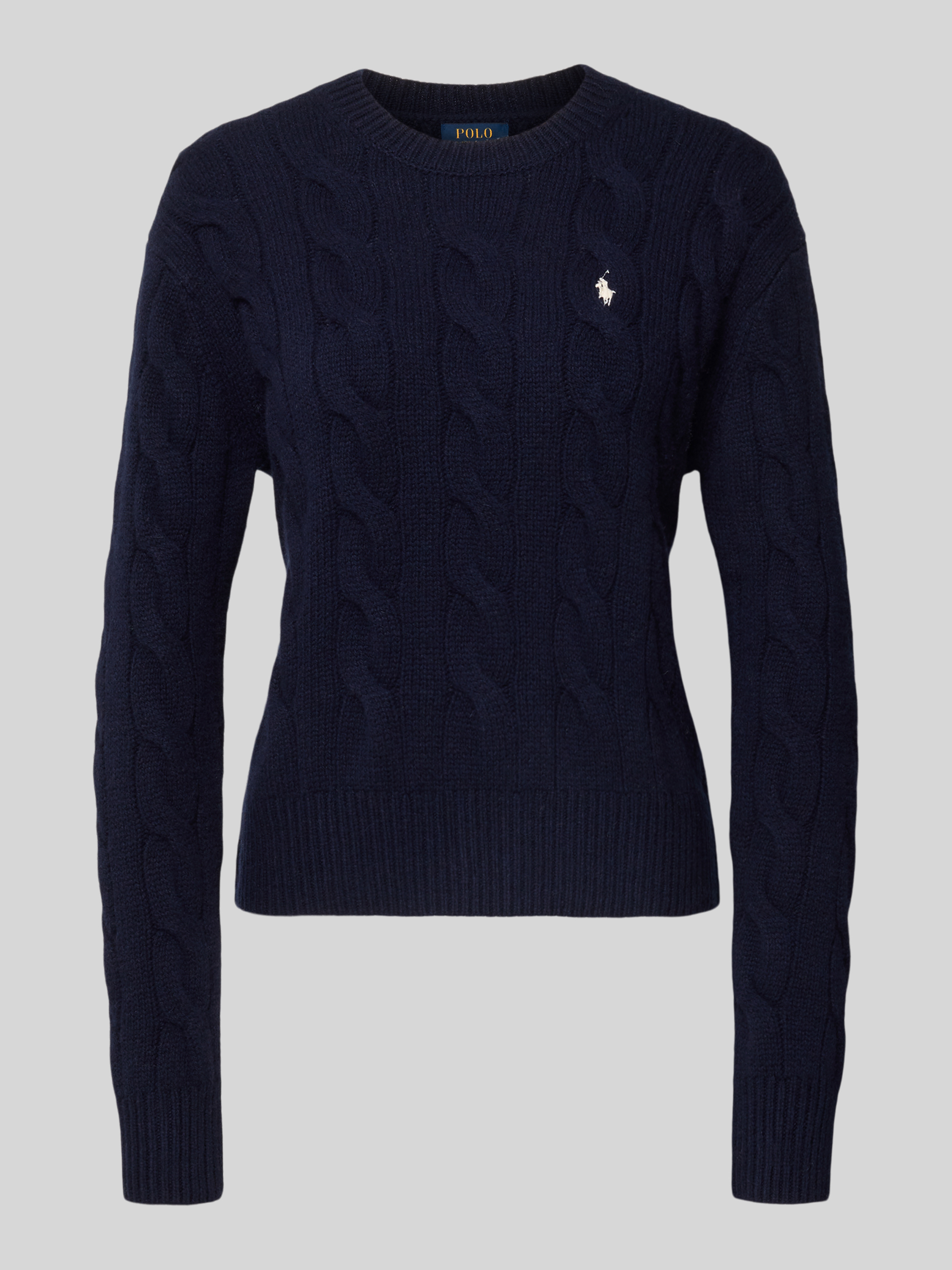 Sweter z dzianiny z mieszanki bawełny i kaszmiru ze ściegiem warkoczowym - granatowy