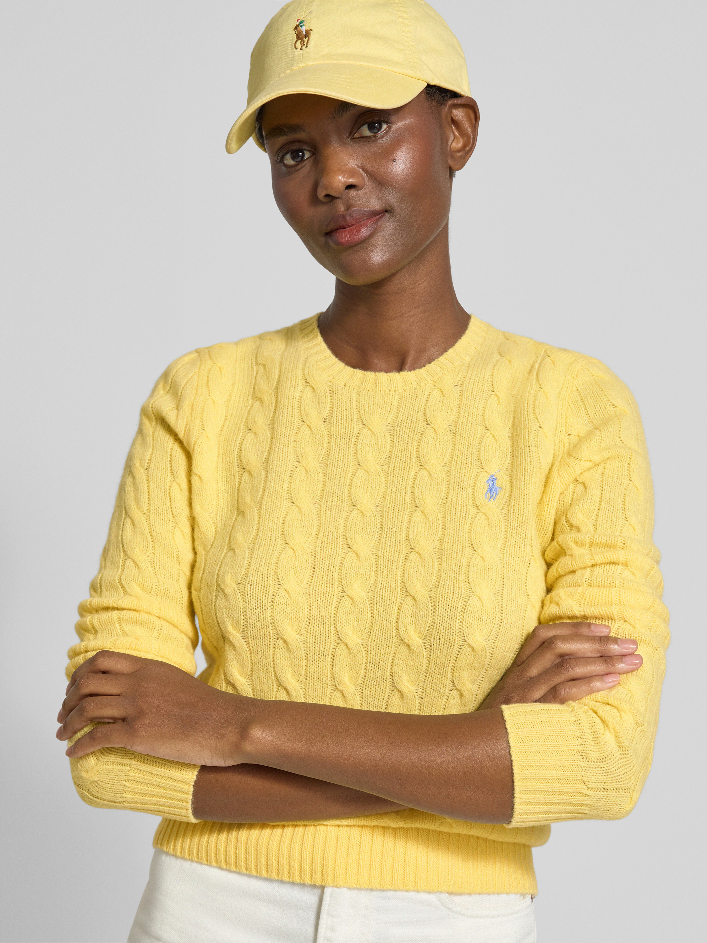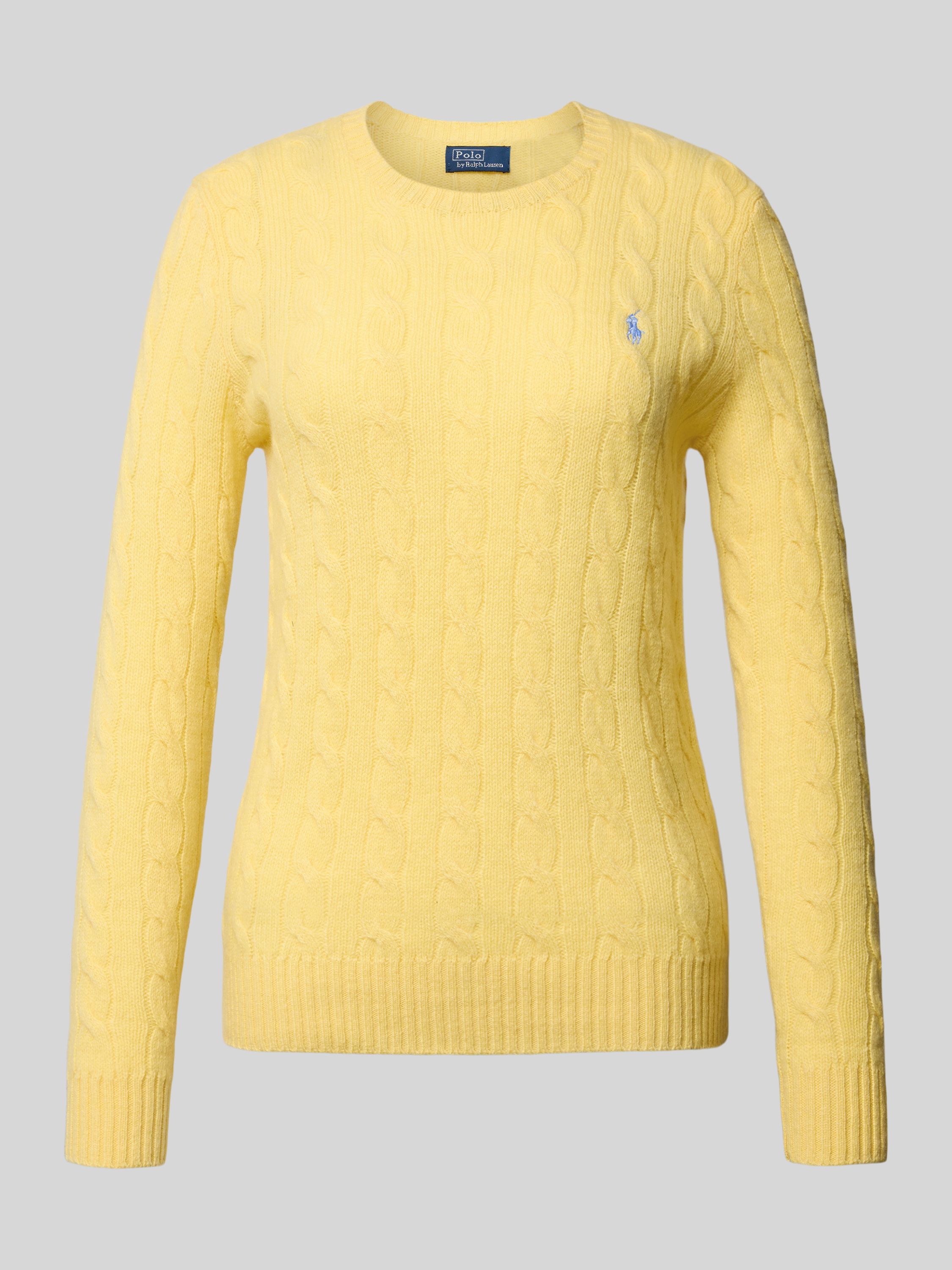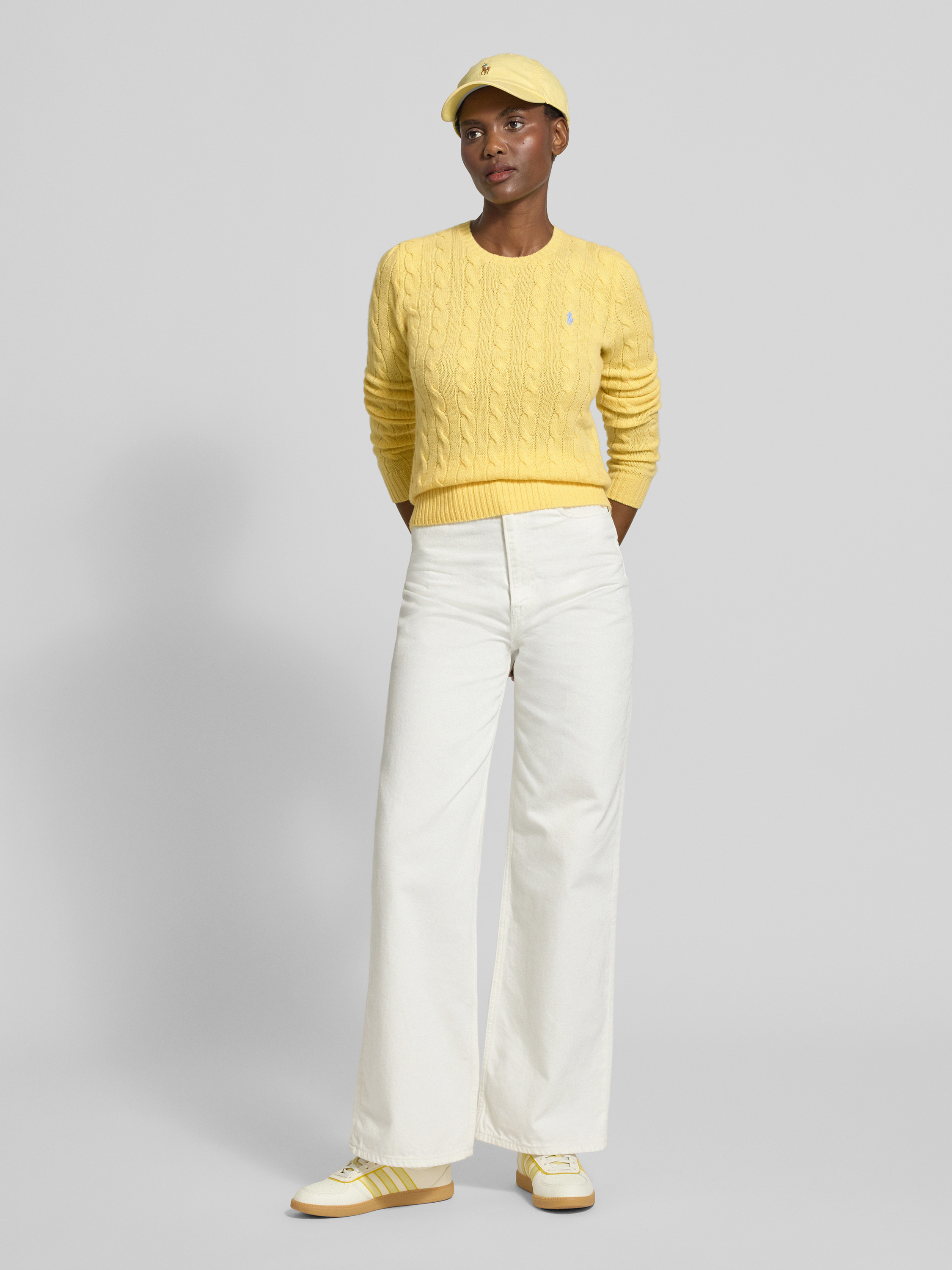 Sweter z dzianiny z mieszanki wełny i kaszmiru model ‘JULIANNA’ - żółty