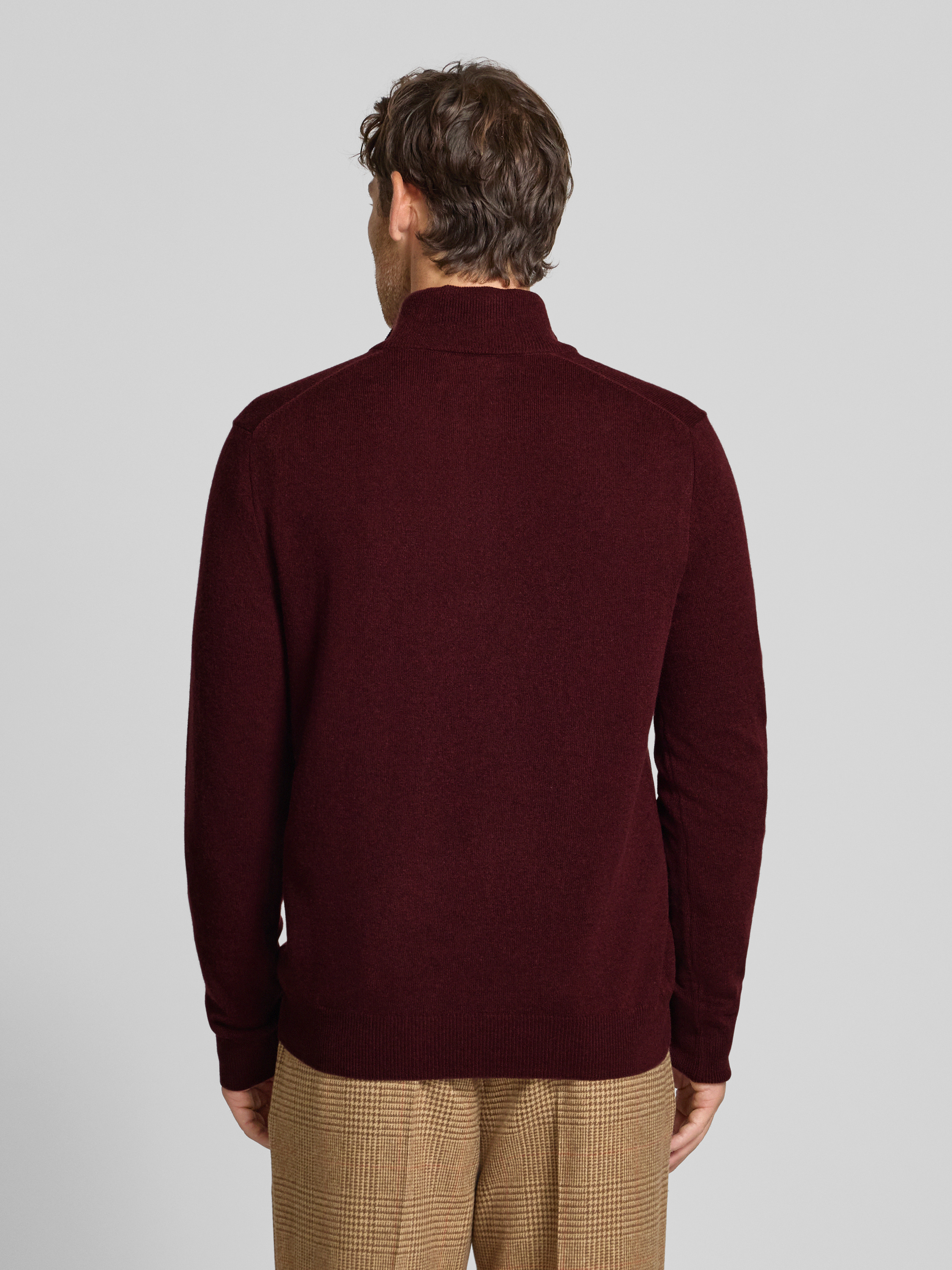 Sweter z dzianiny z prążkowanymi wykończeniami - bordowy