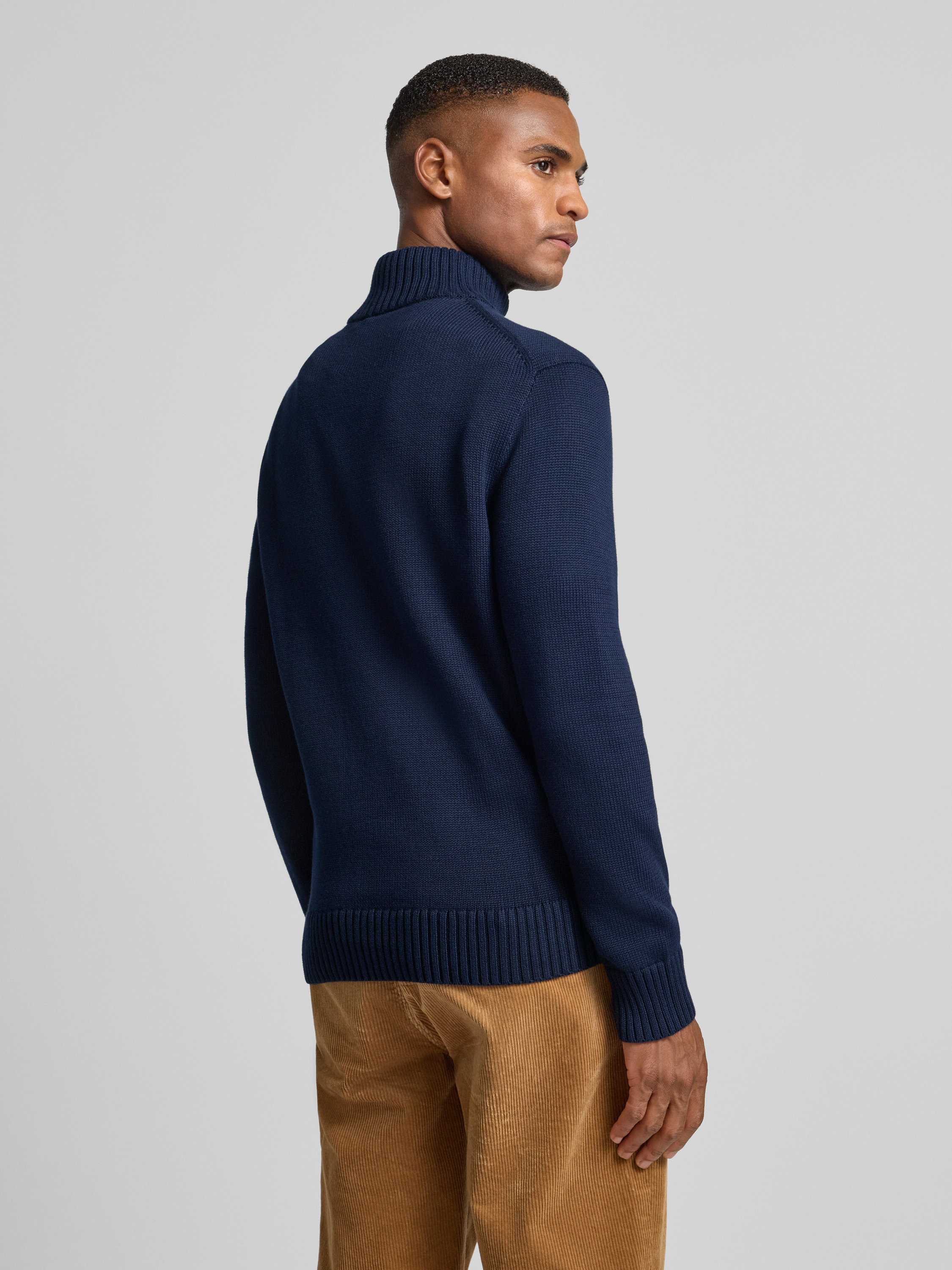 Sweter z dzianiny z prążkowanymi wykończeniami - granatowy