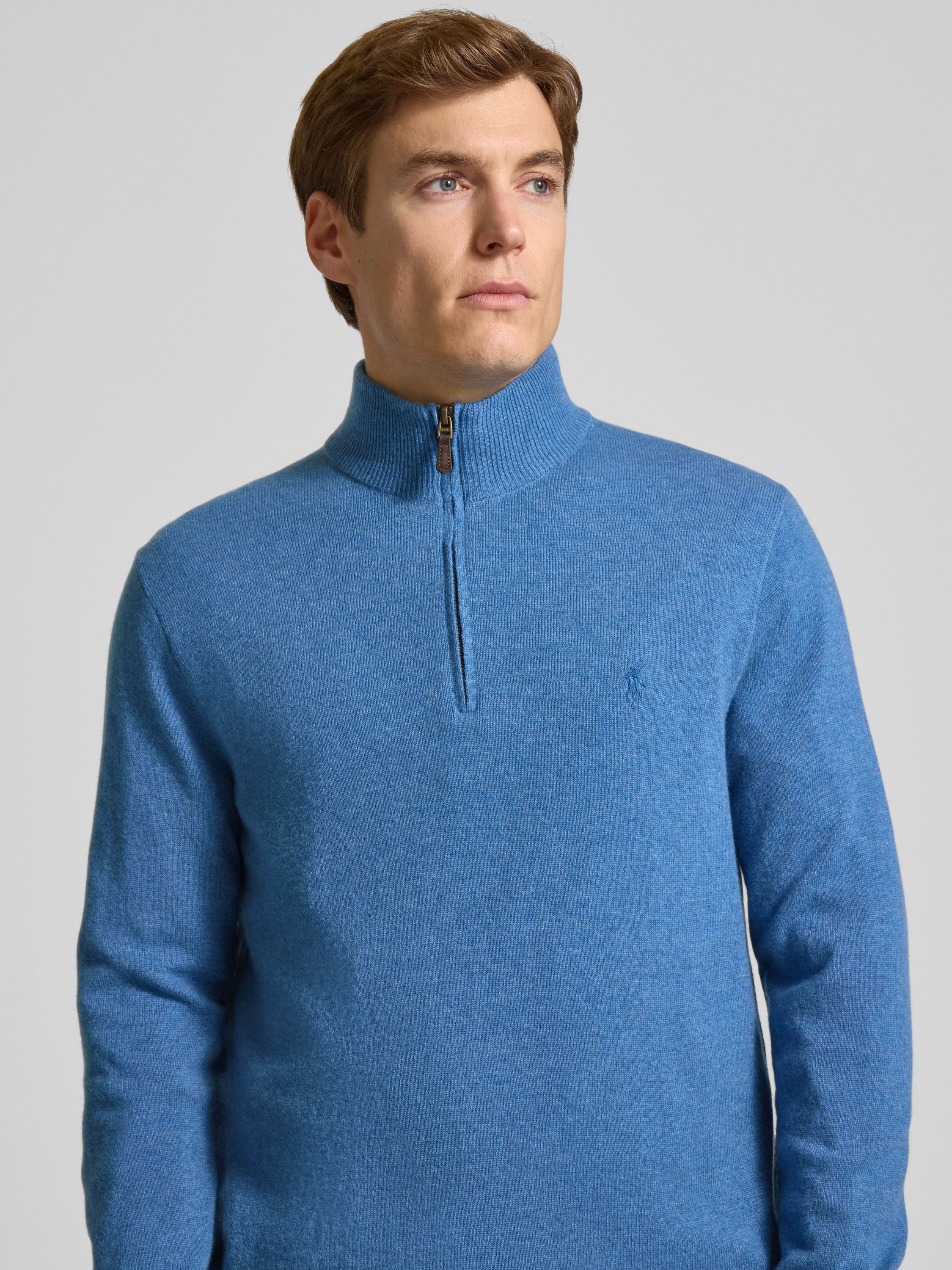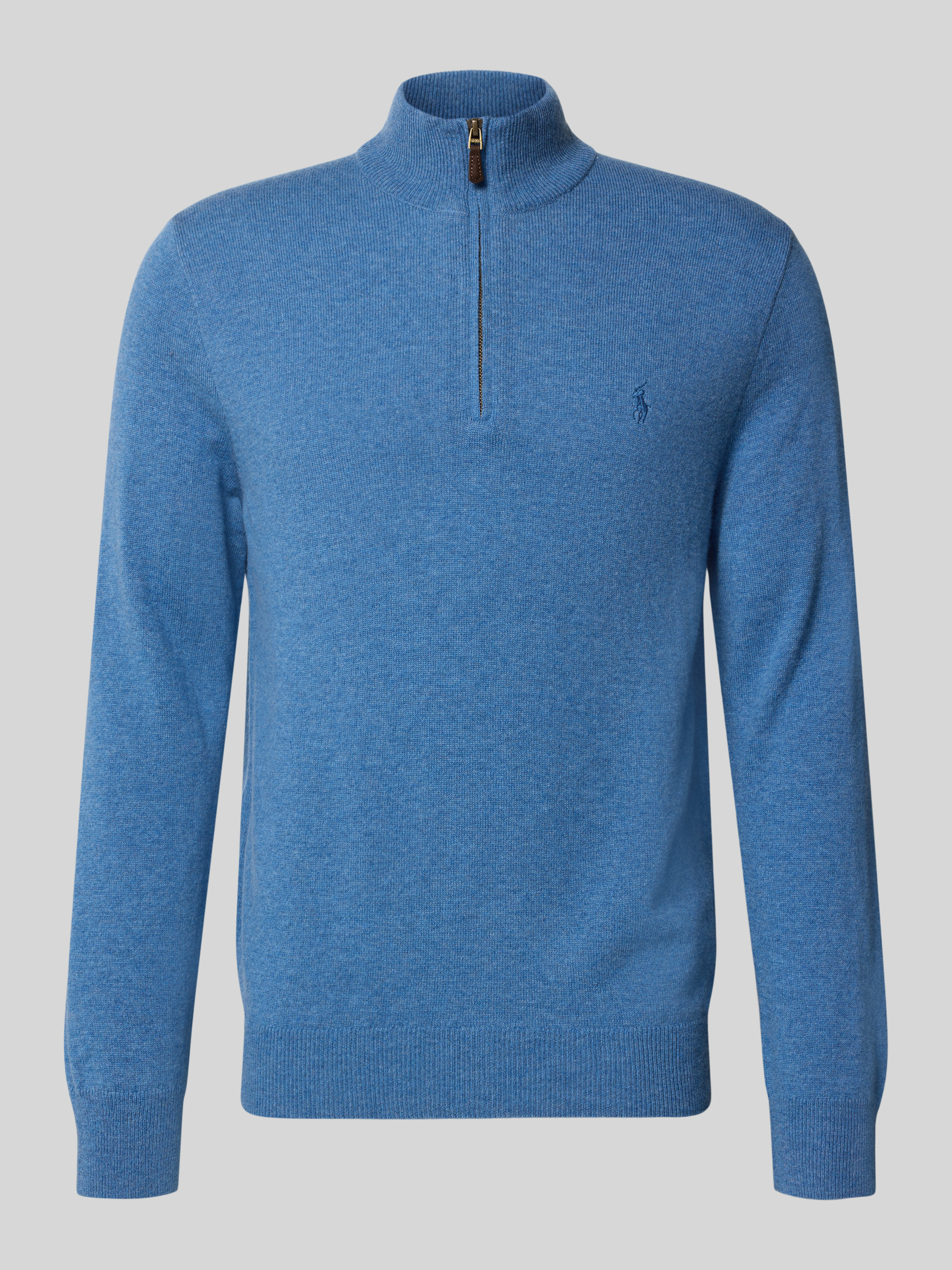 Sweter z dzianiny z wełny ze stójką i zamkiem błyskawicznym - oceaniczny