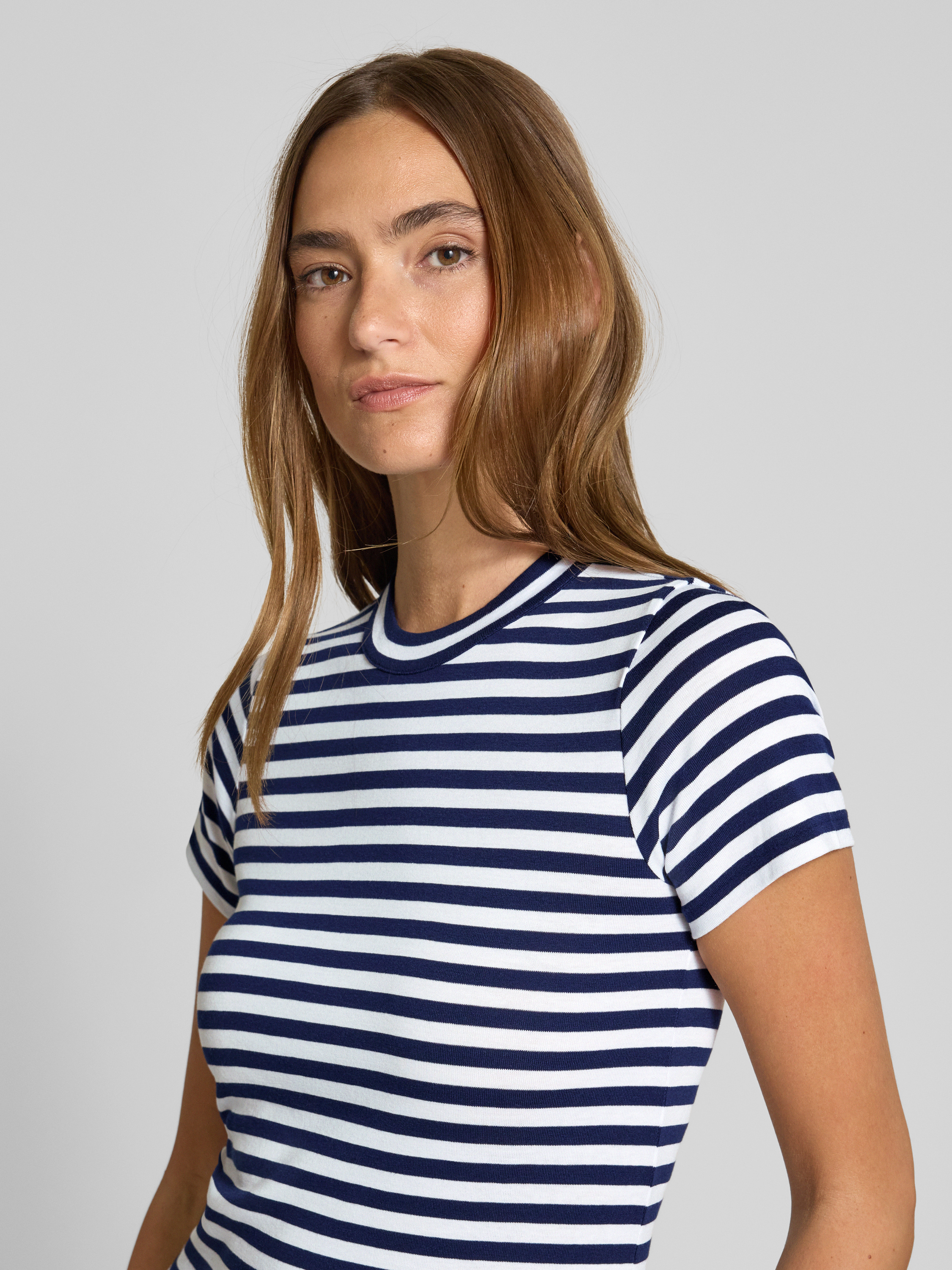 T-shirt o kroju slim fit z czystej bawełny z okrągłym dekoltem - granatowy