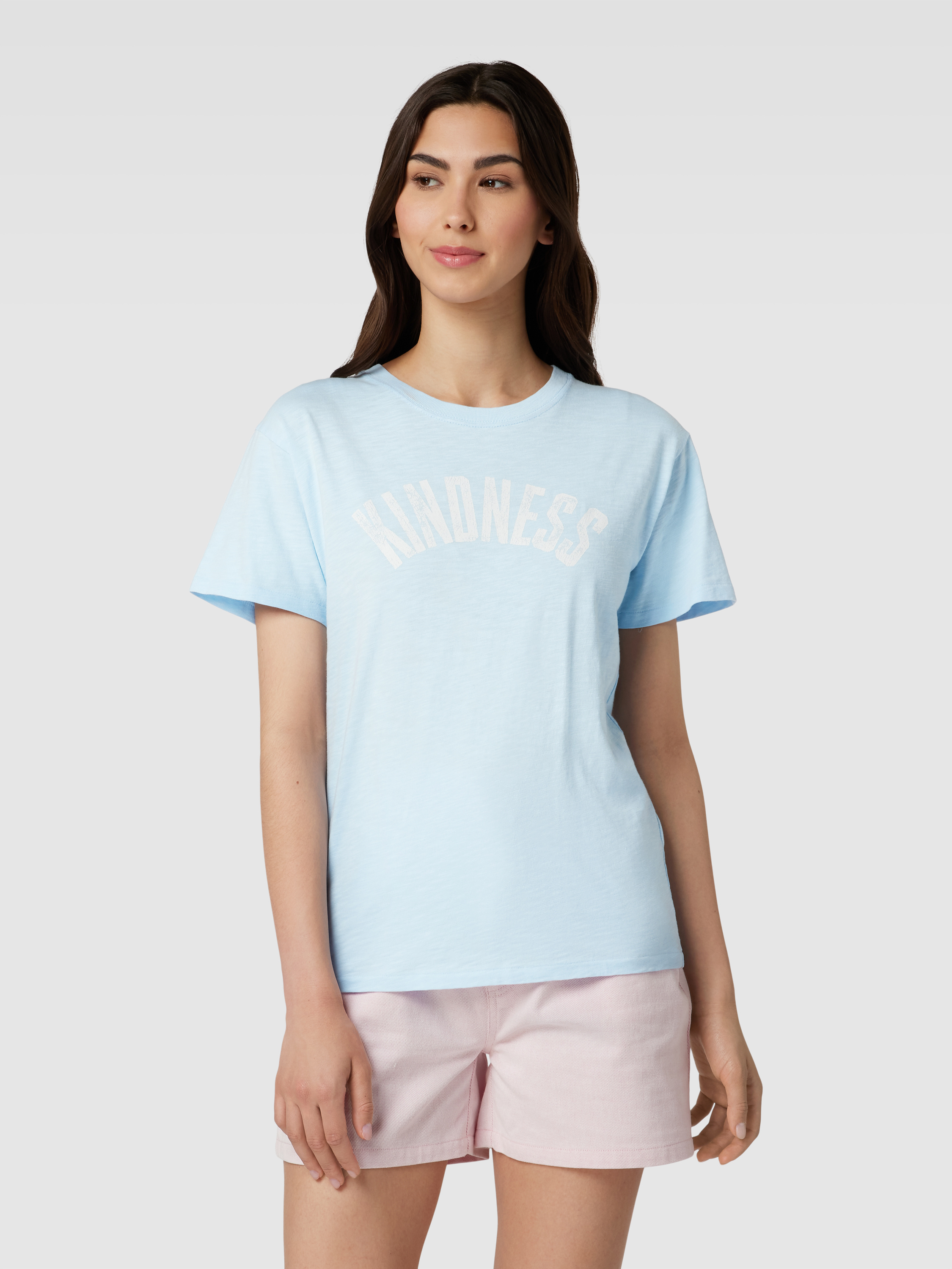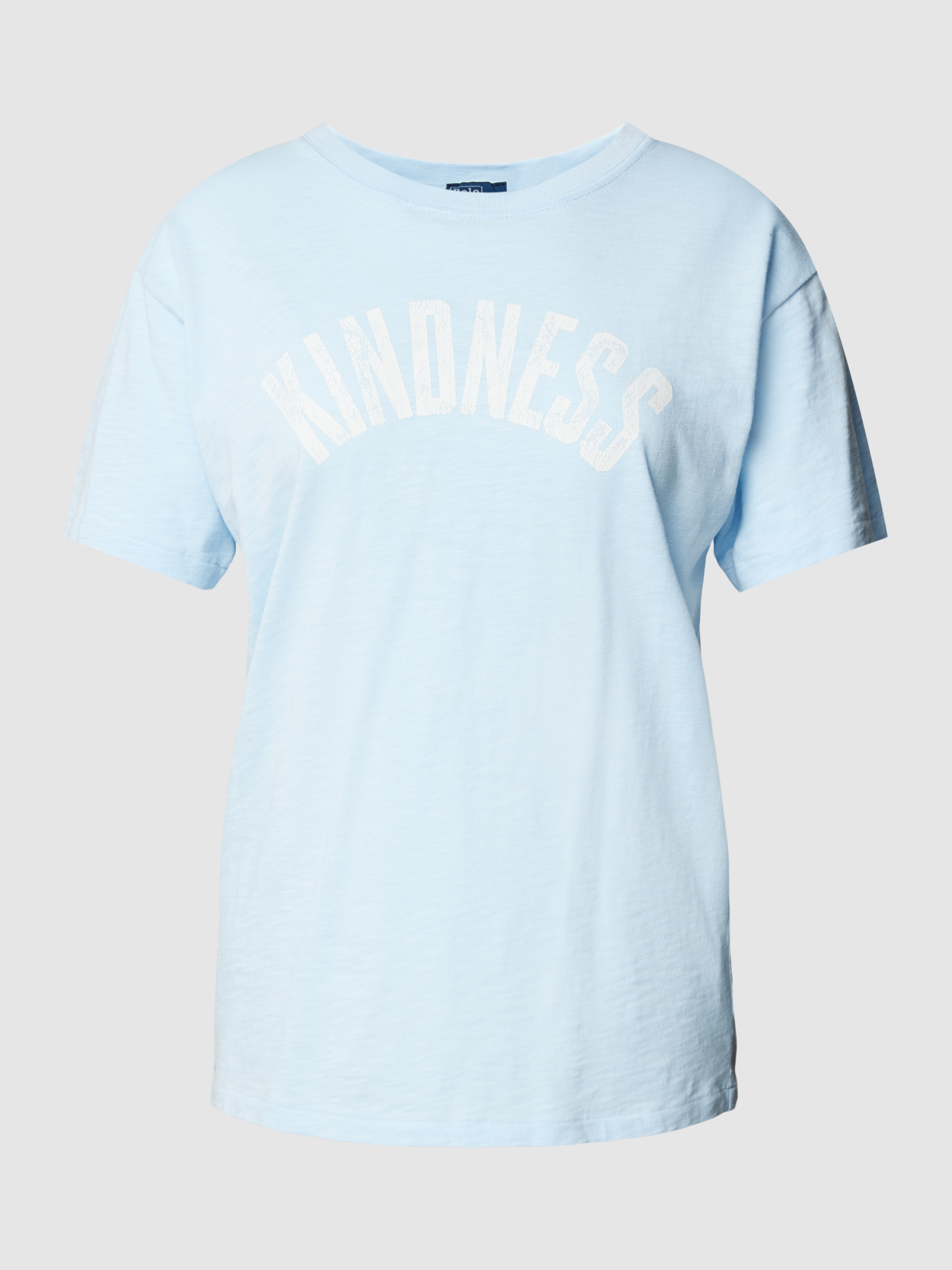 T-shirt z bawełny z nadrukiem z napisem - jasnoniebieski