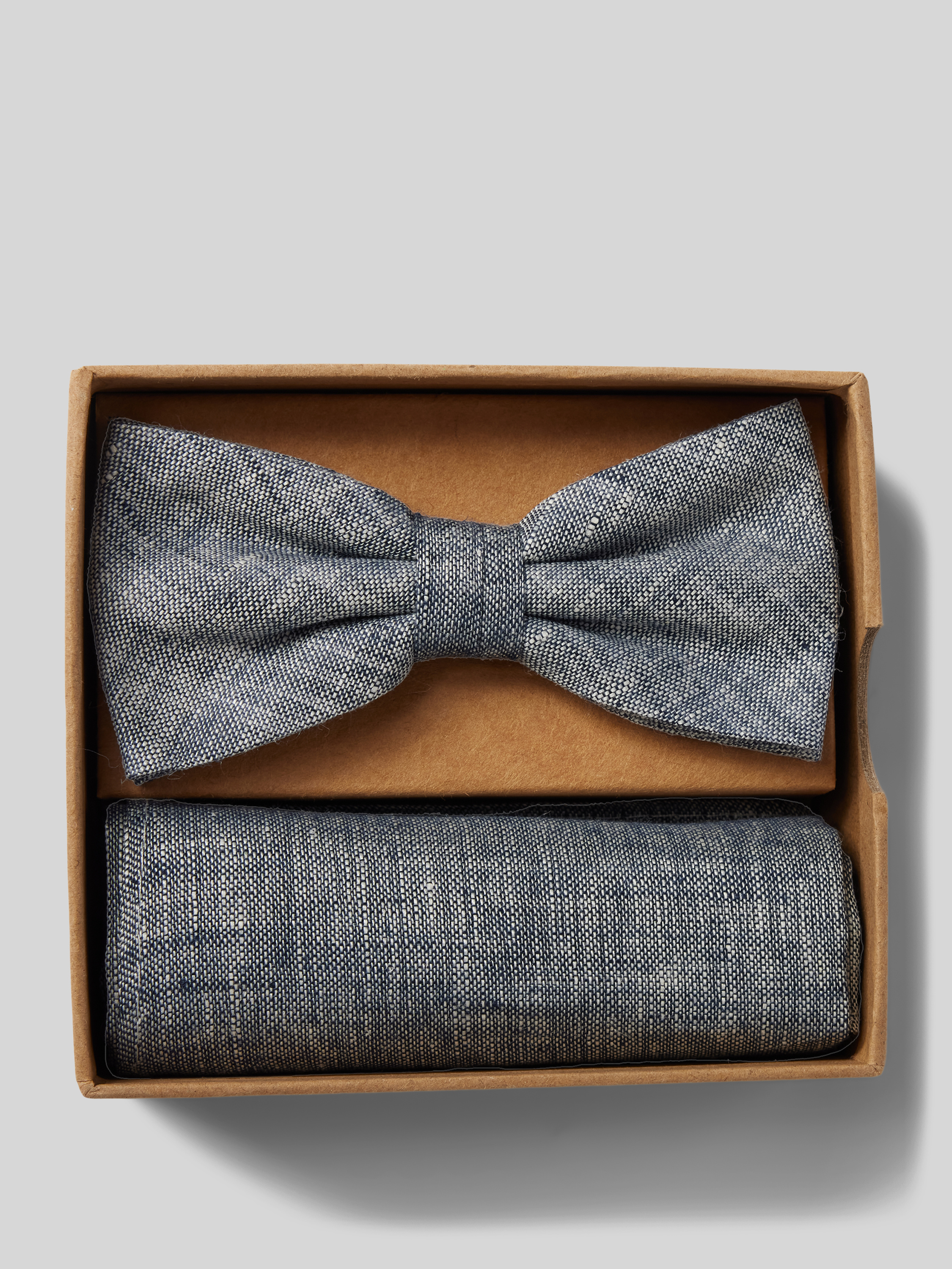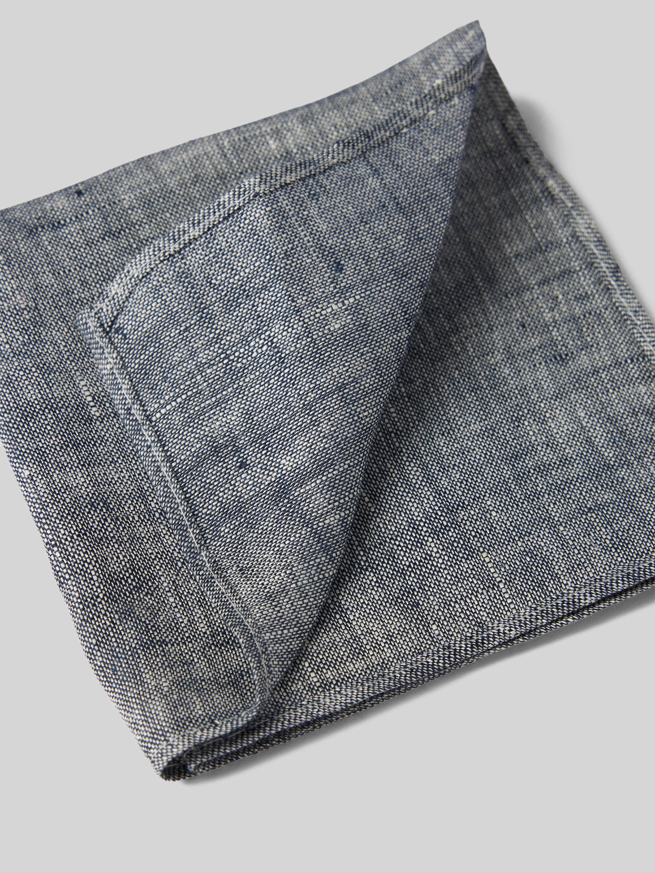 Mucha i poszetka z czystego lnu w zestawie - granatowy