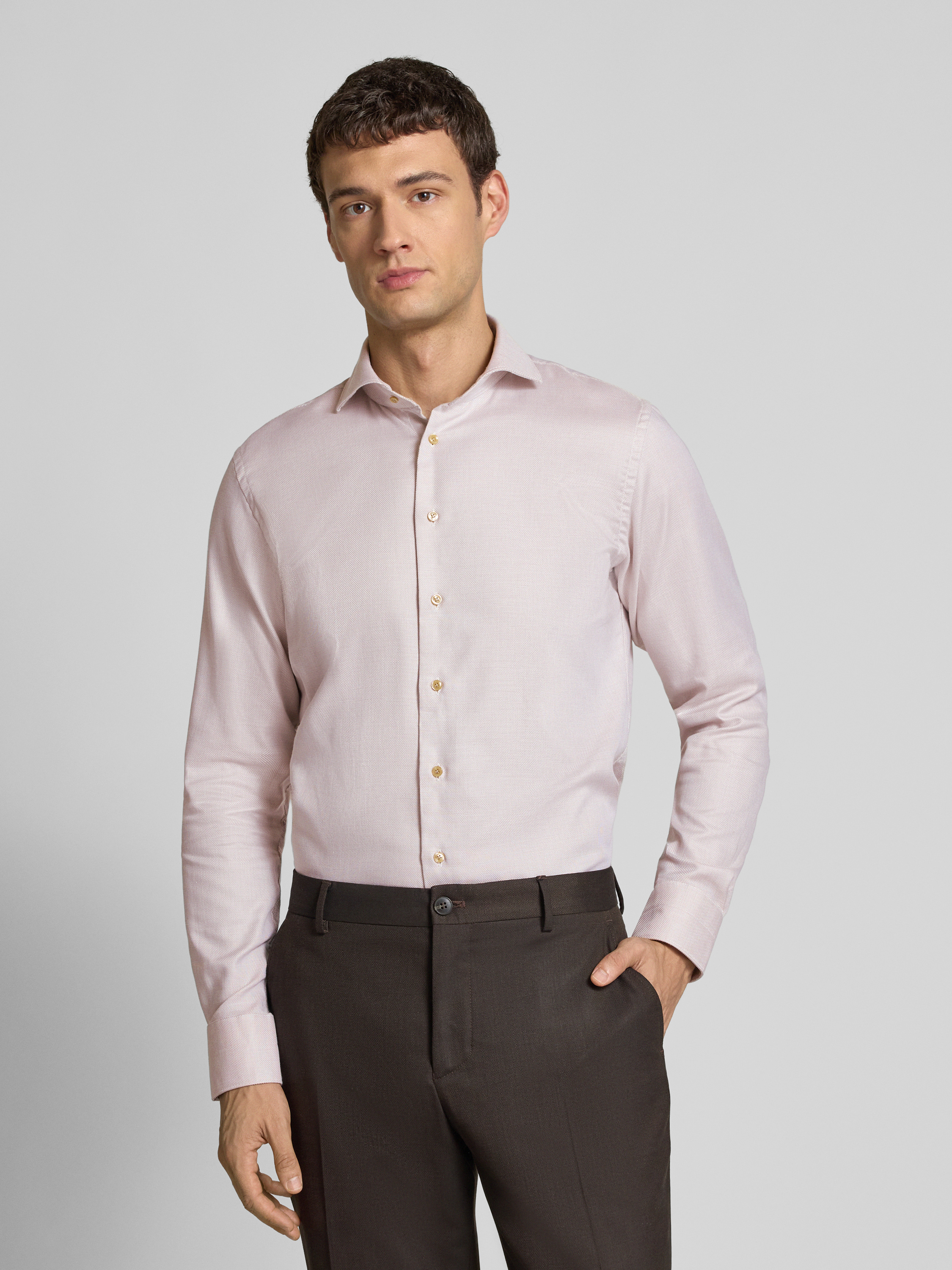 ProfuomoKoszula biznesowa o kroju regular fit z kołnierzykiem typu cutaway model ‘Cutaway’ - piaskowy