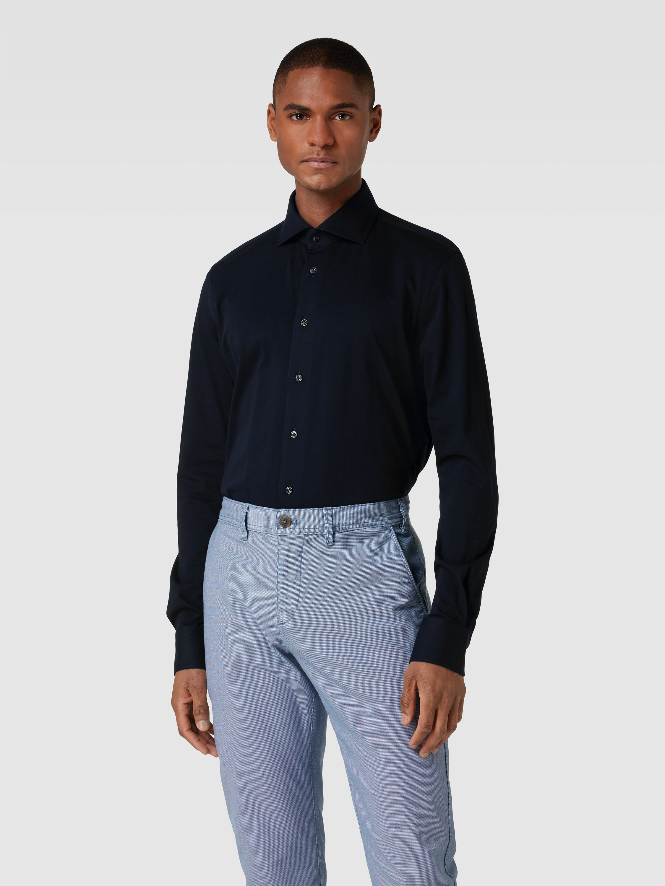 Koszula biznesowa o kroju slim fit z bawełny z dodatkiem streczu - granatowy