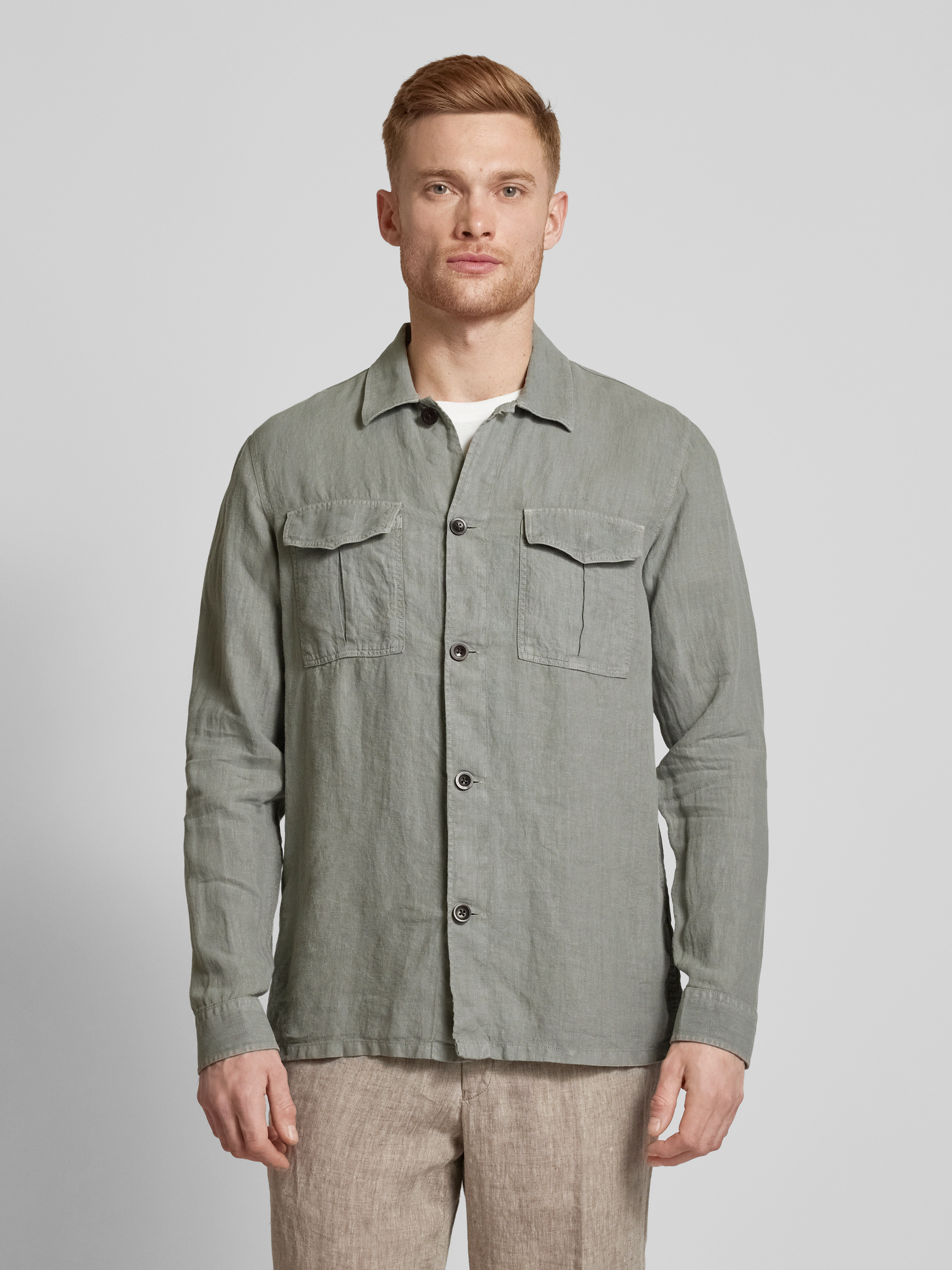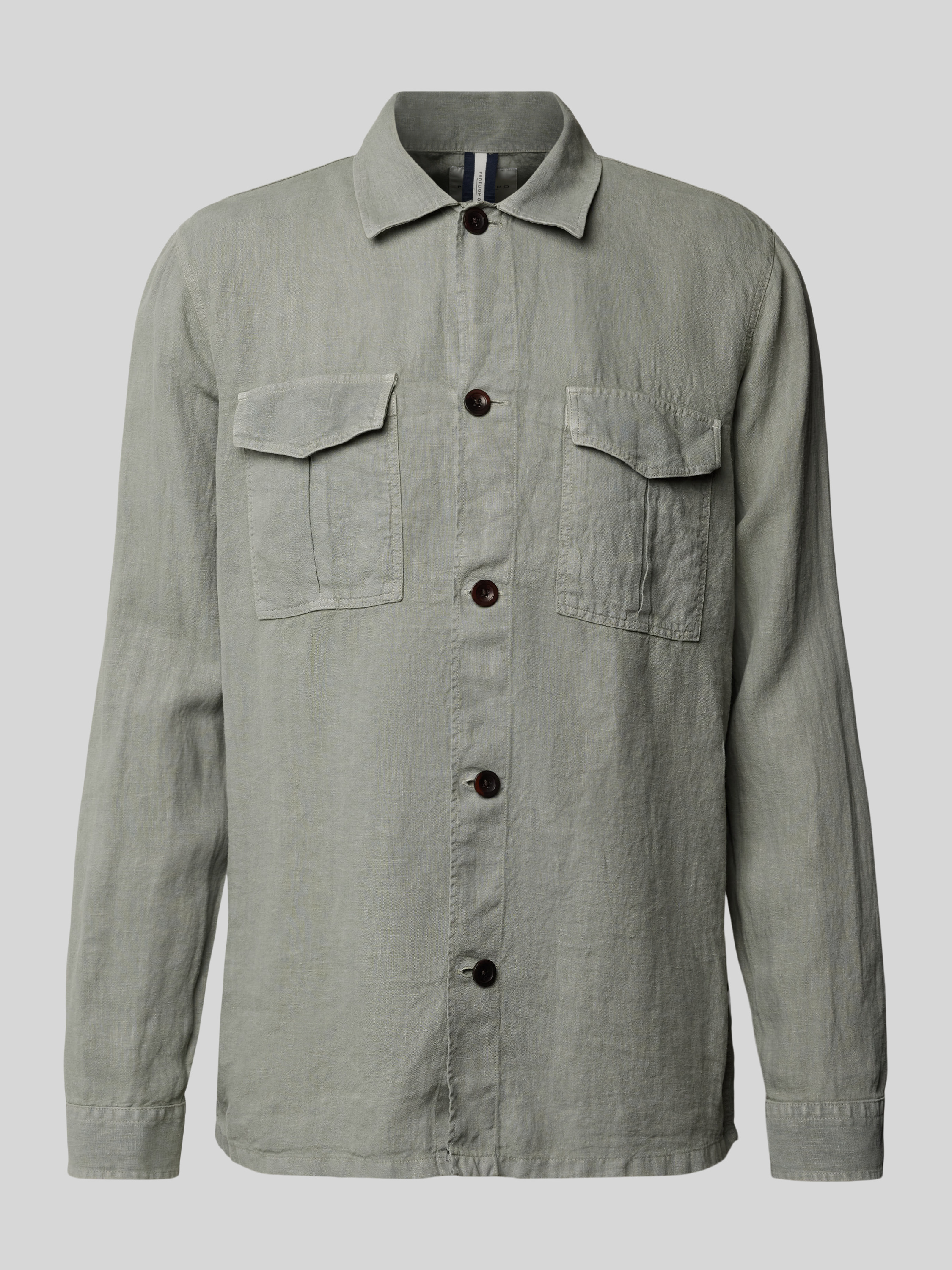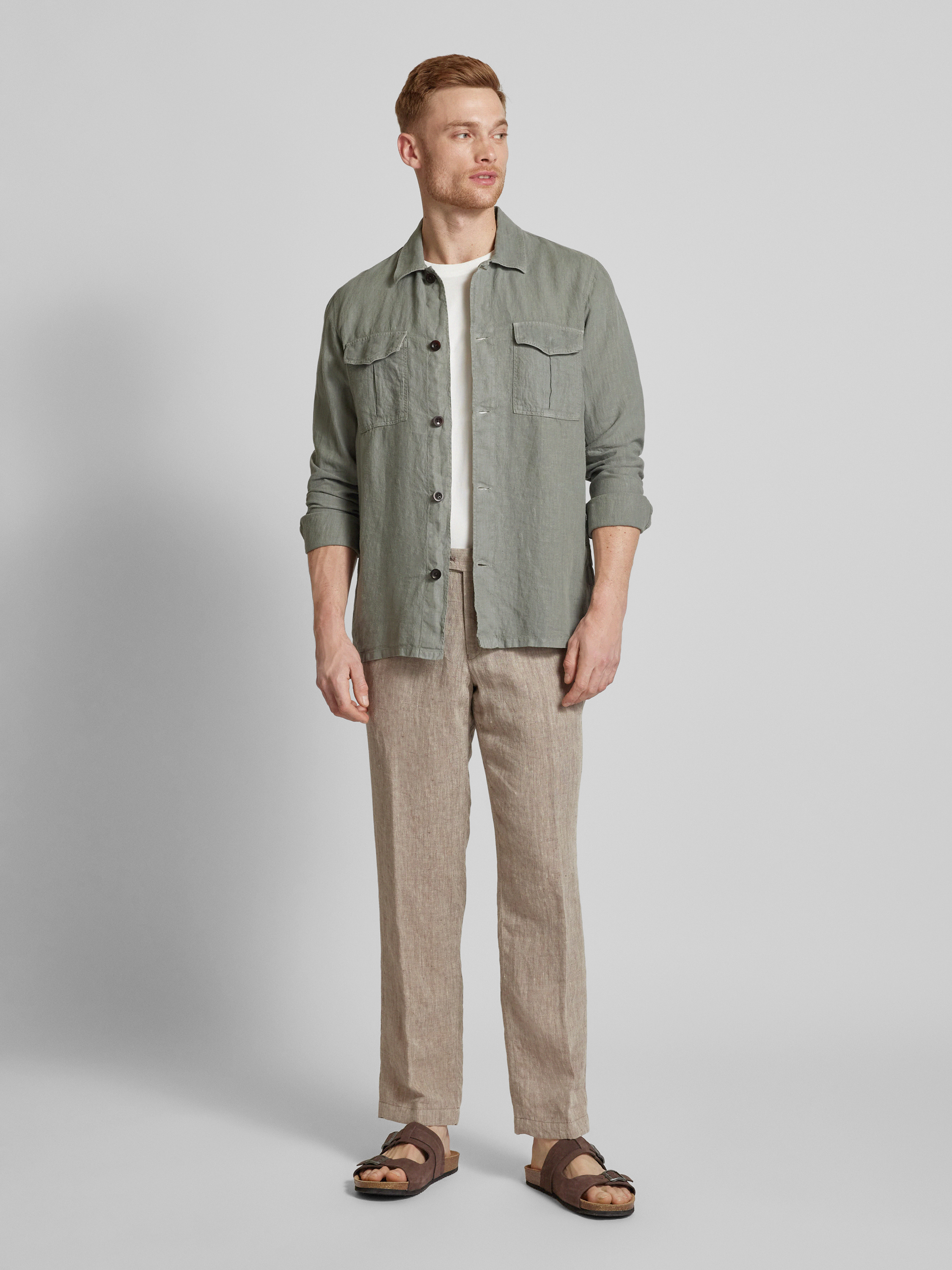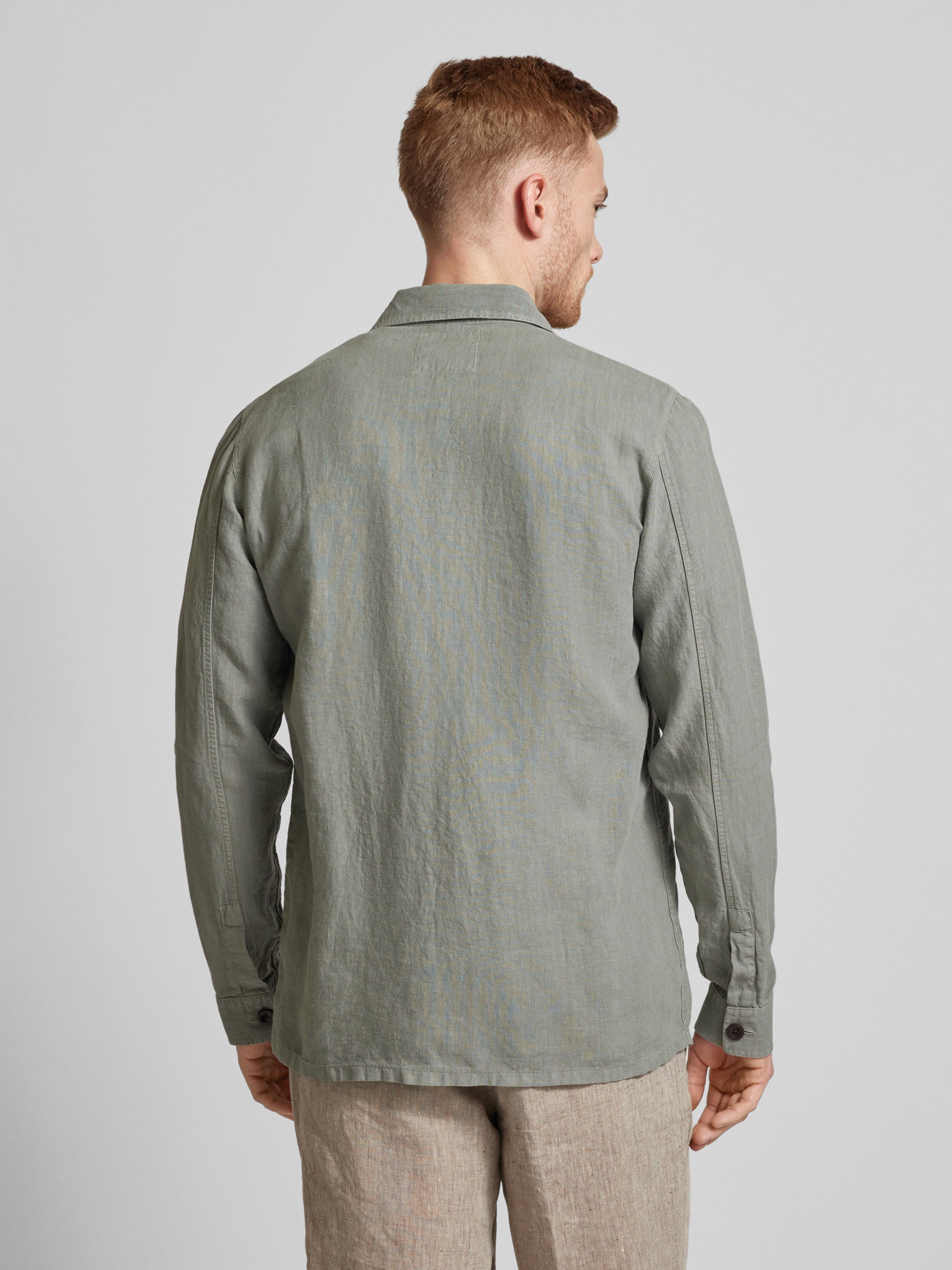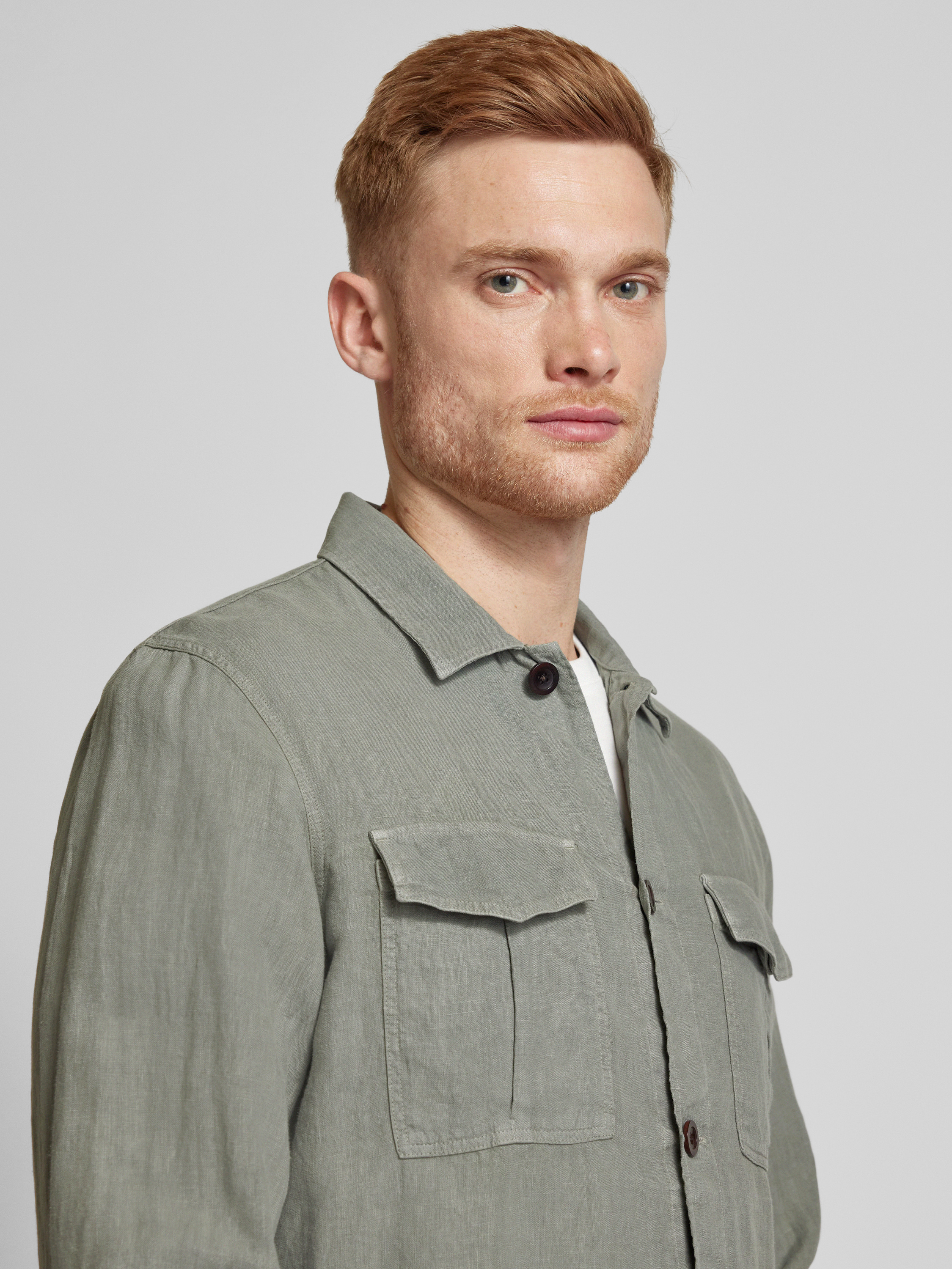 Kurtka koszulowa lniana z nakładanymi kieszeniami z patką na piersi - zielony