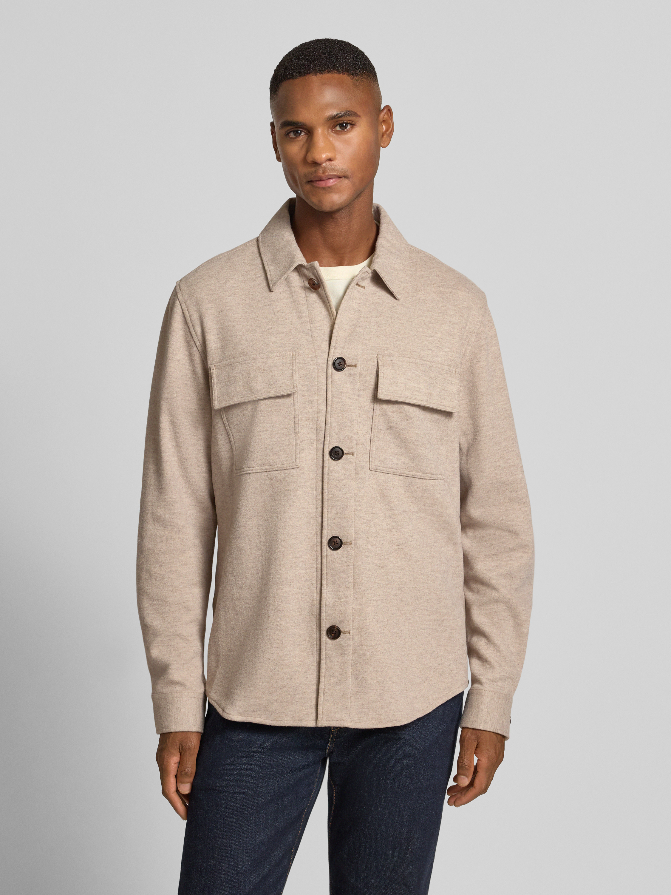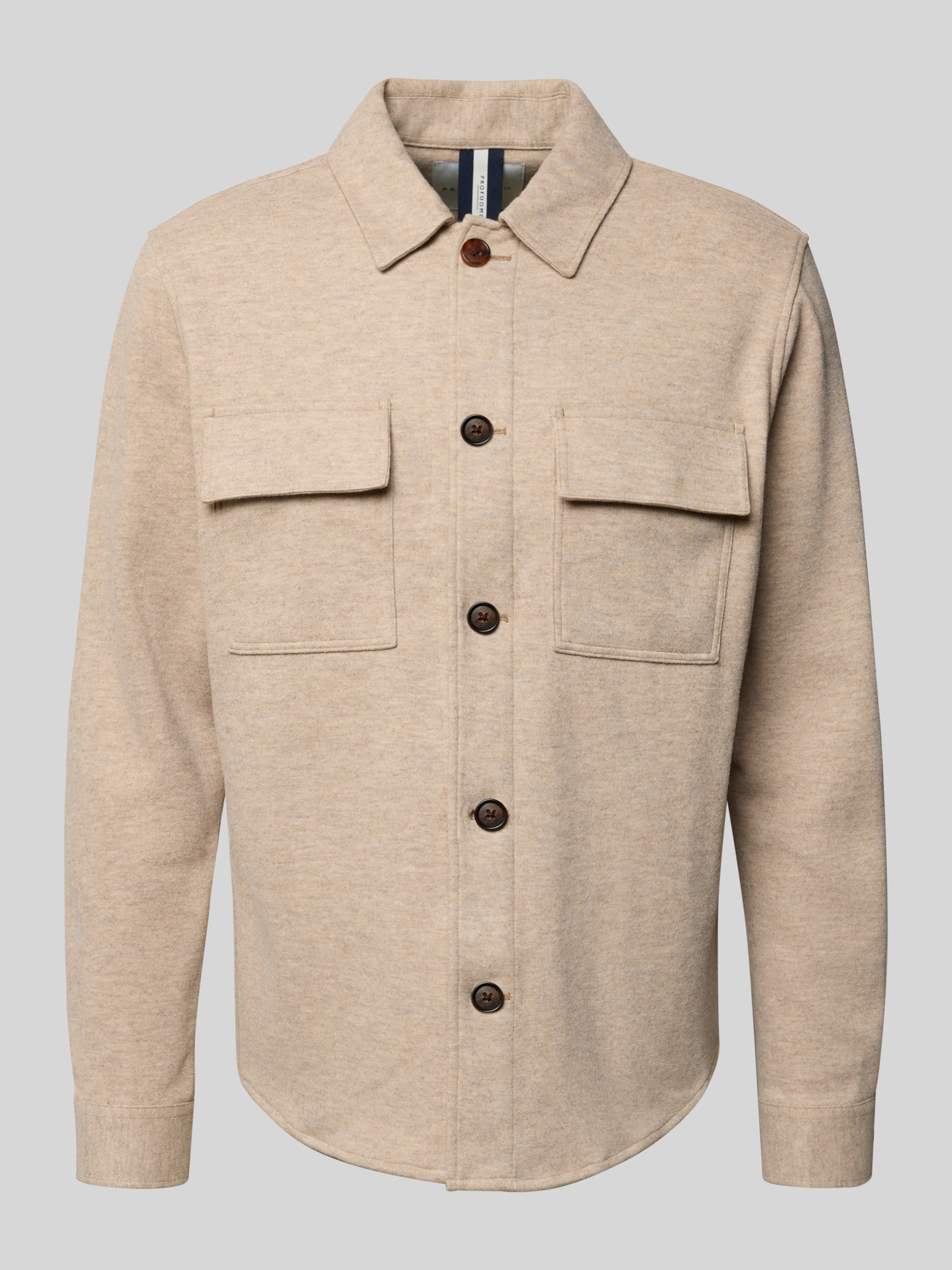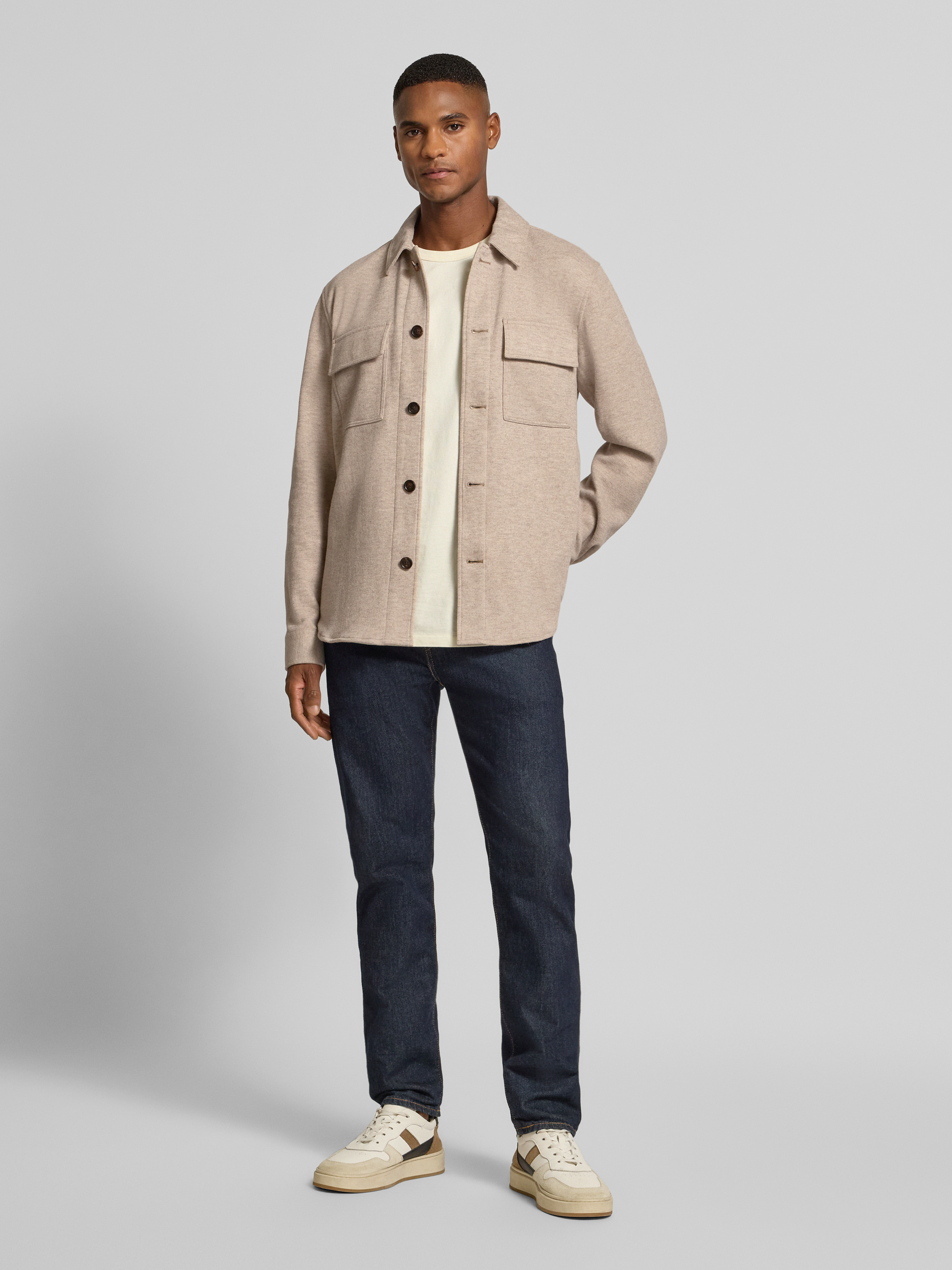 Kurtka koszulowa o kroju relaxed fit z kieszenią na piersi - beżowy