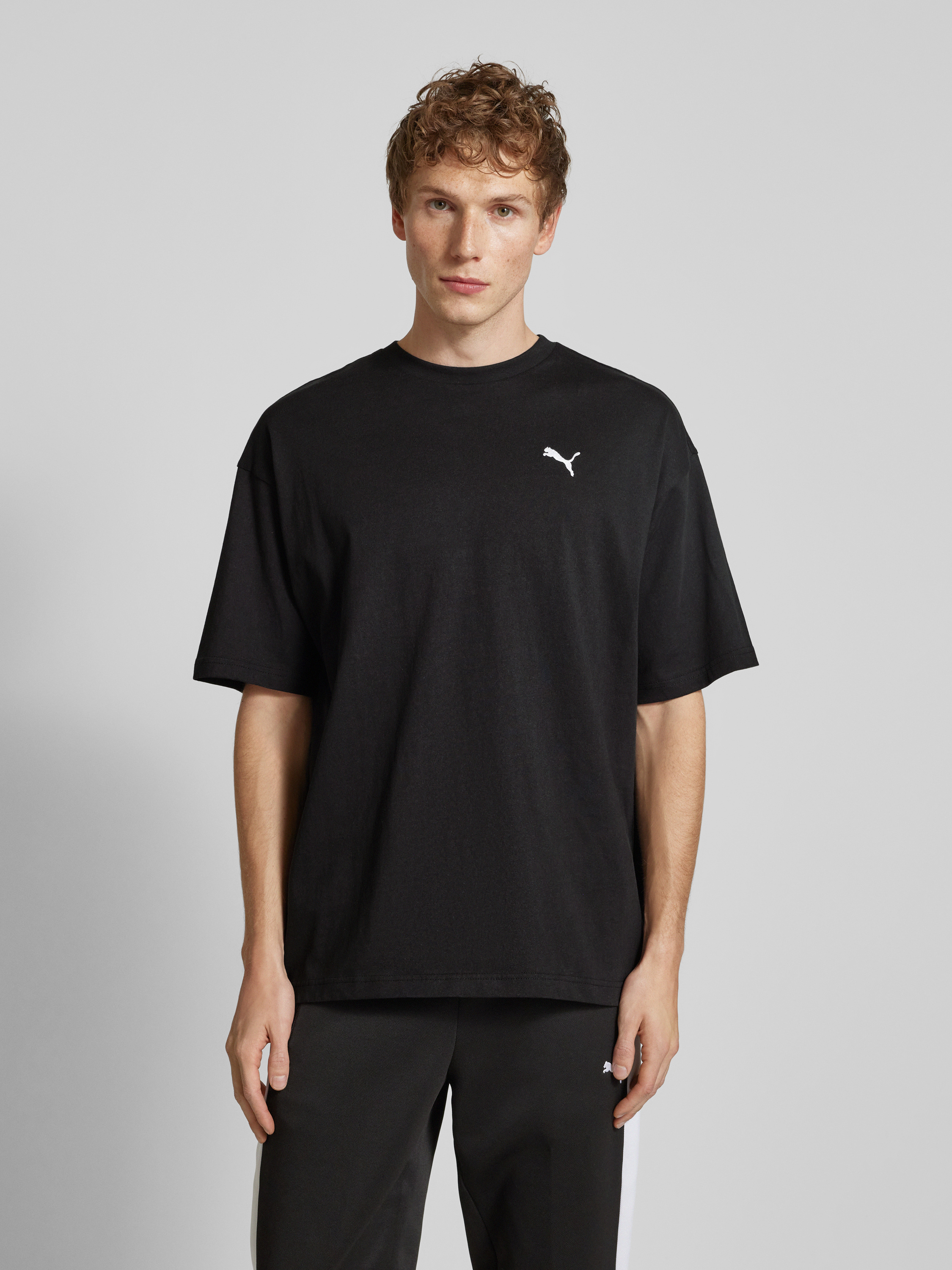 T-shirt o kroju oversized z wyhaftowanym logo - czarny