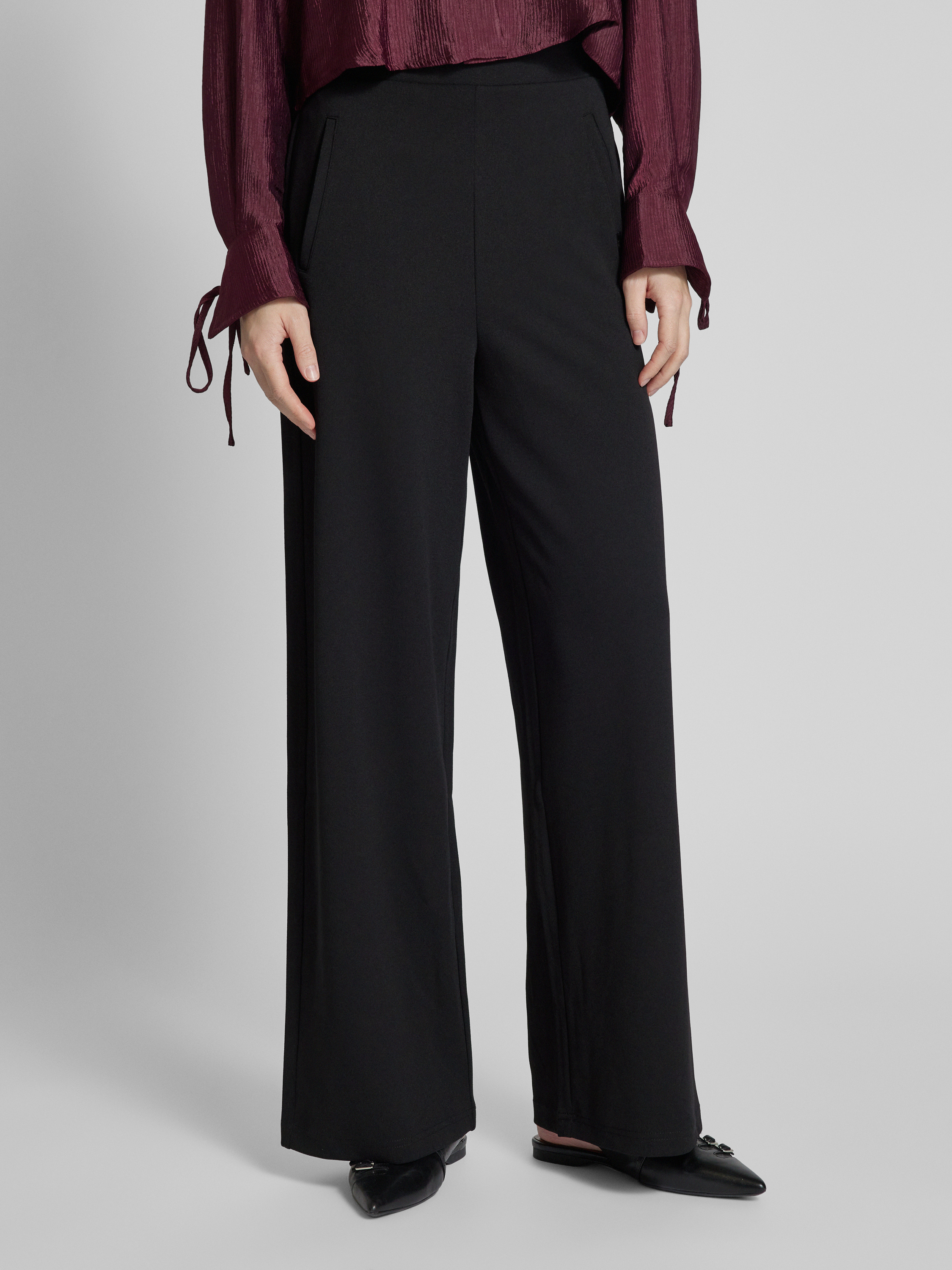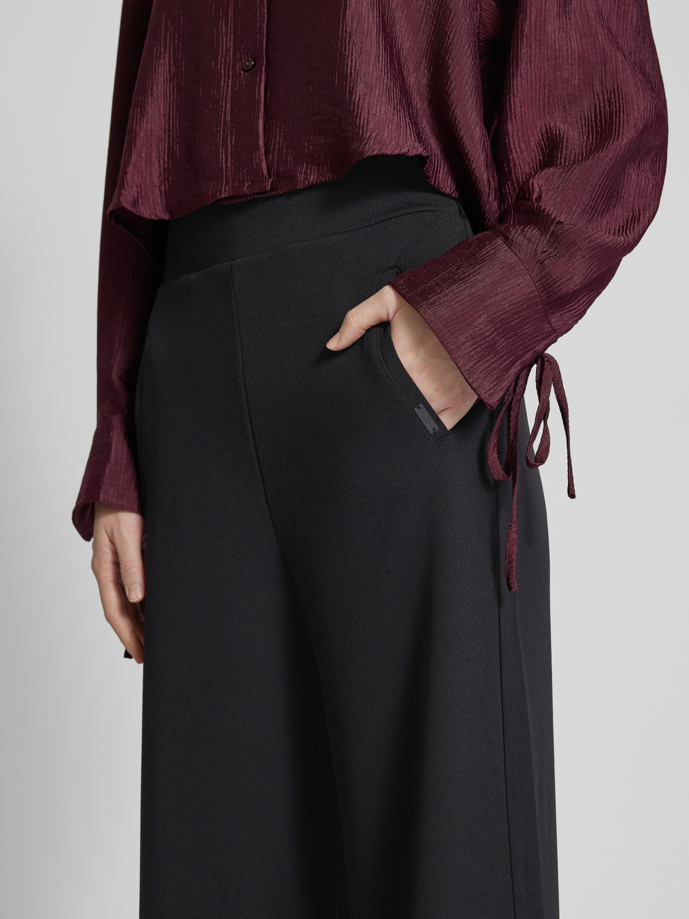 Spodnie materiałowe z szerokimi nogawkami i wpuszczanymi kieszeniami - czarny