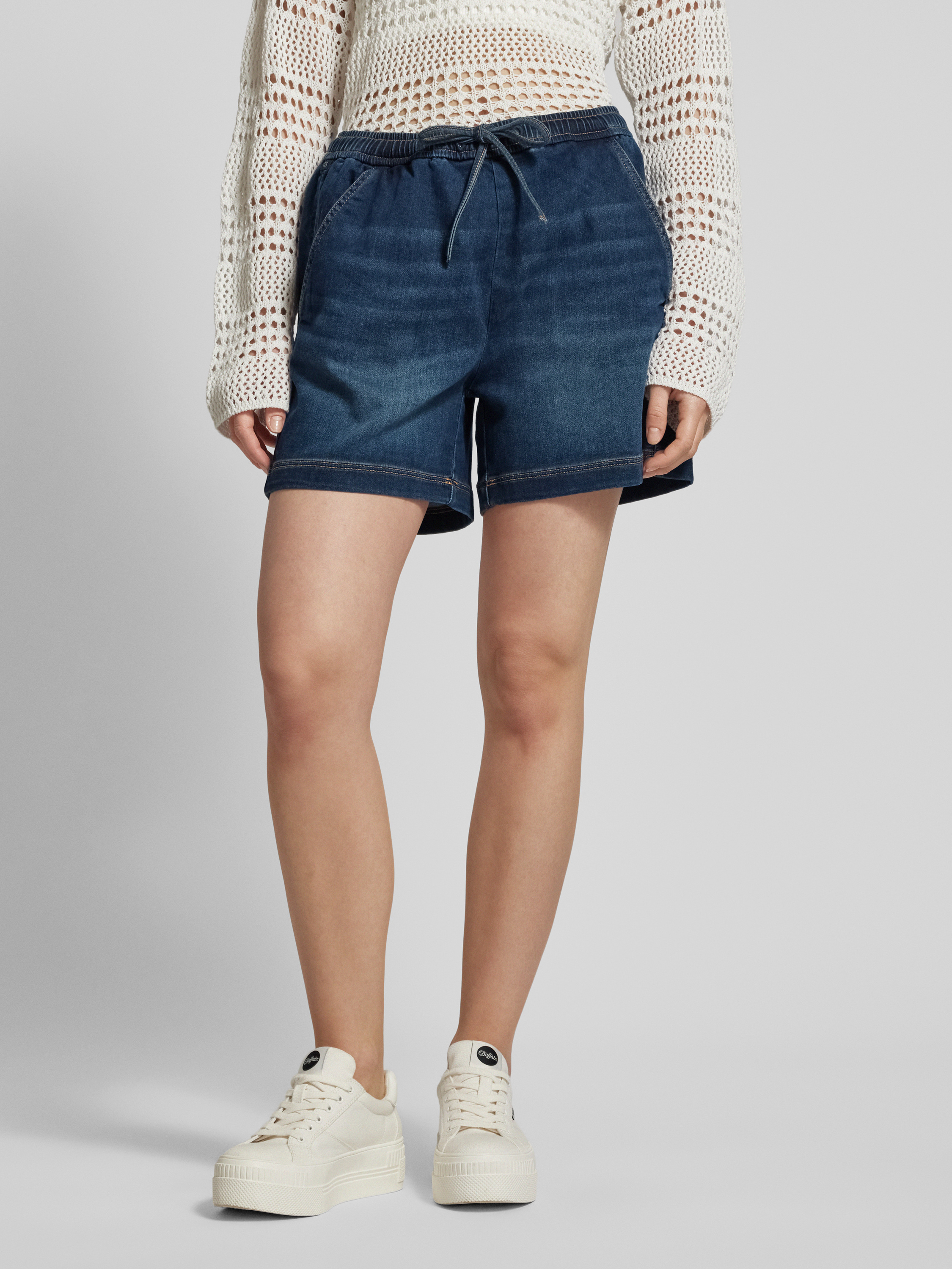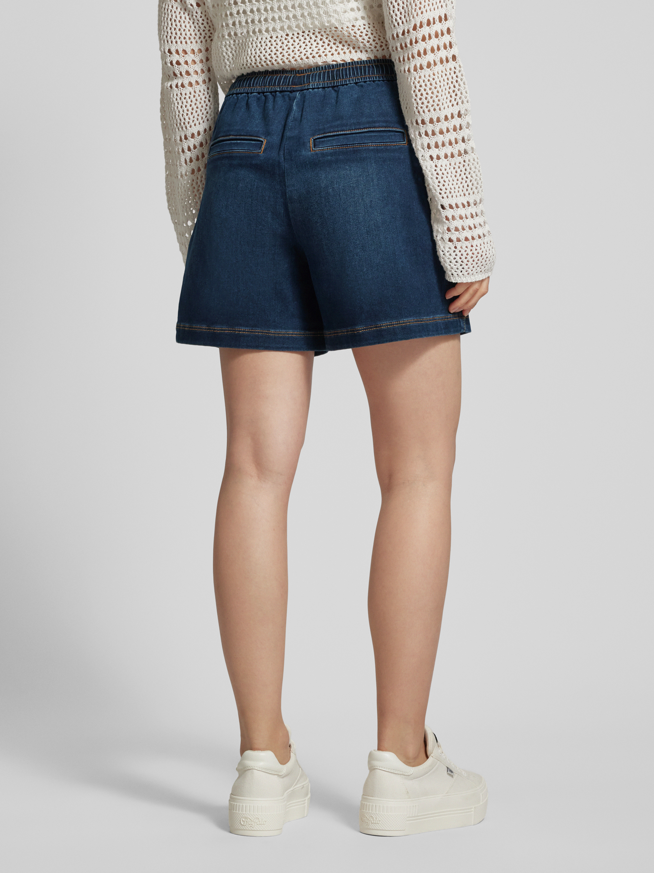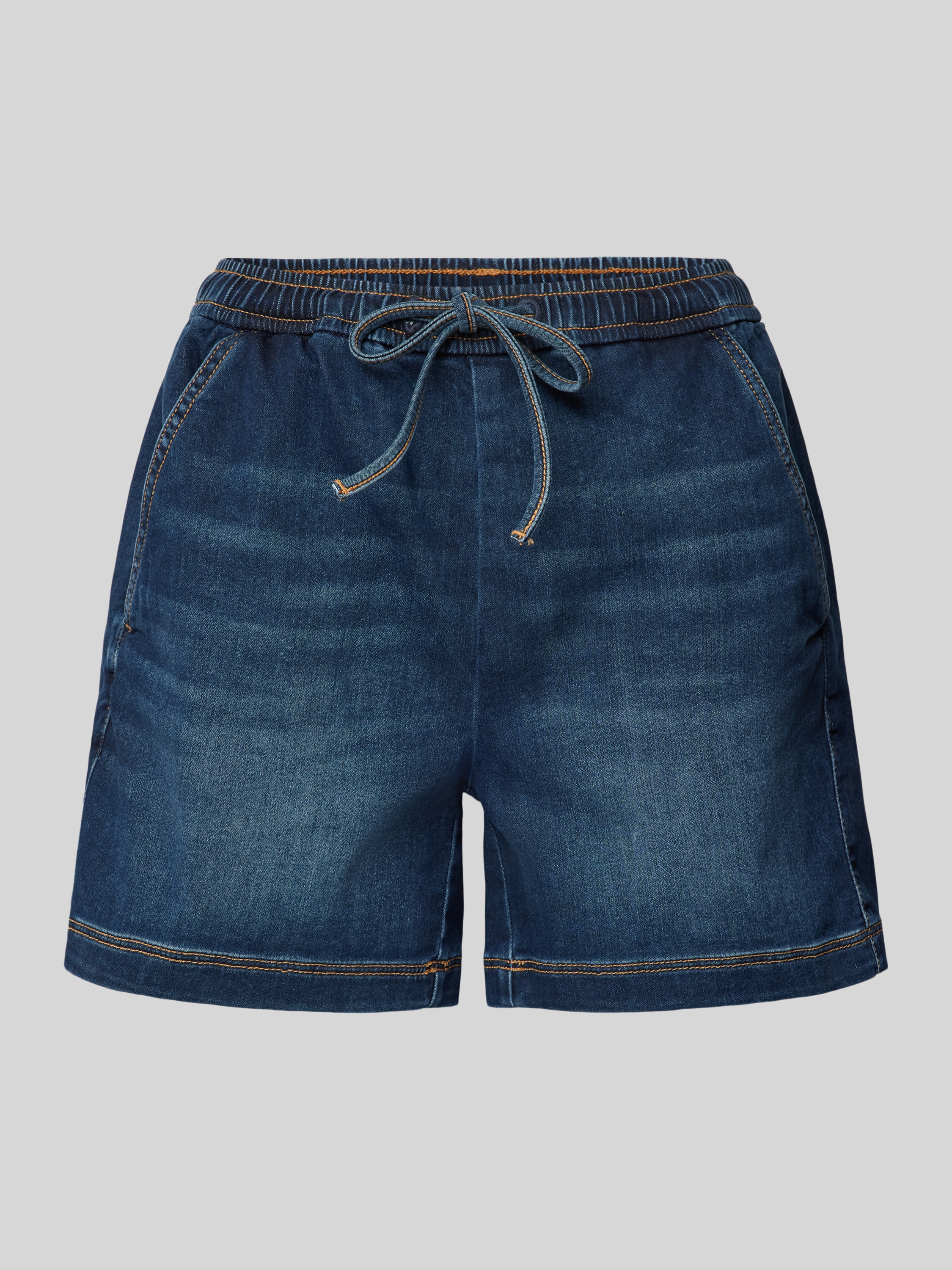 Szorty jeansowe o rozkloszowanym kroju z elastycznym pasem - granatowy